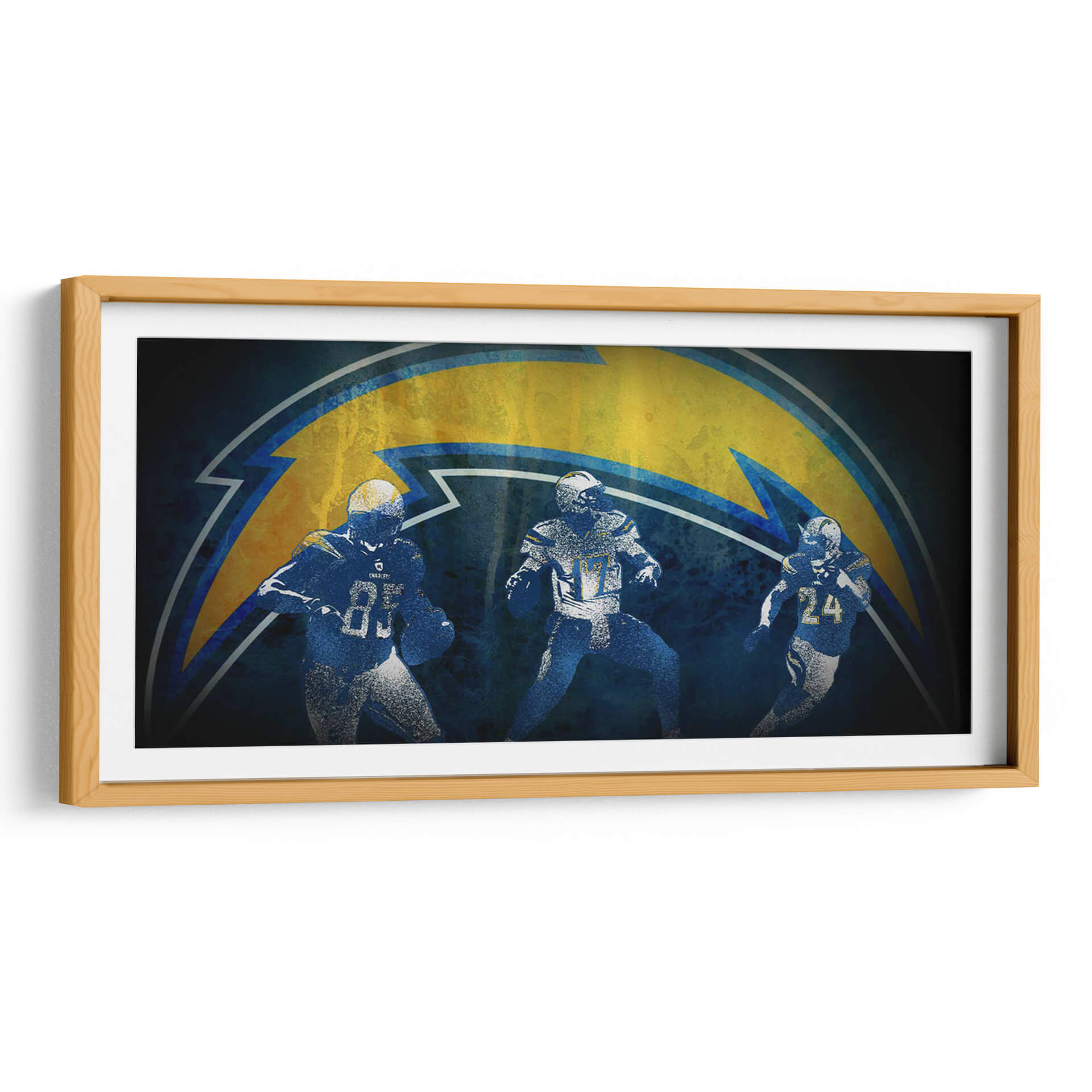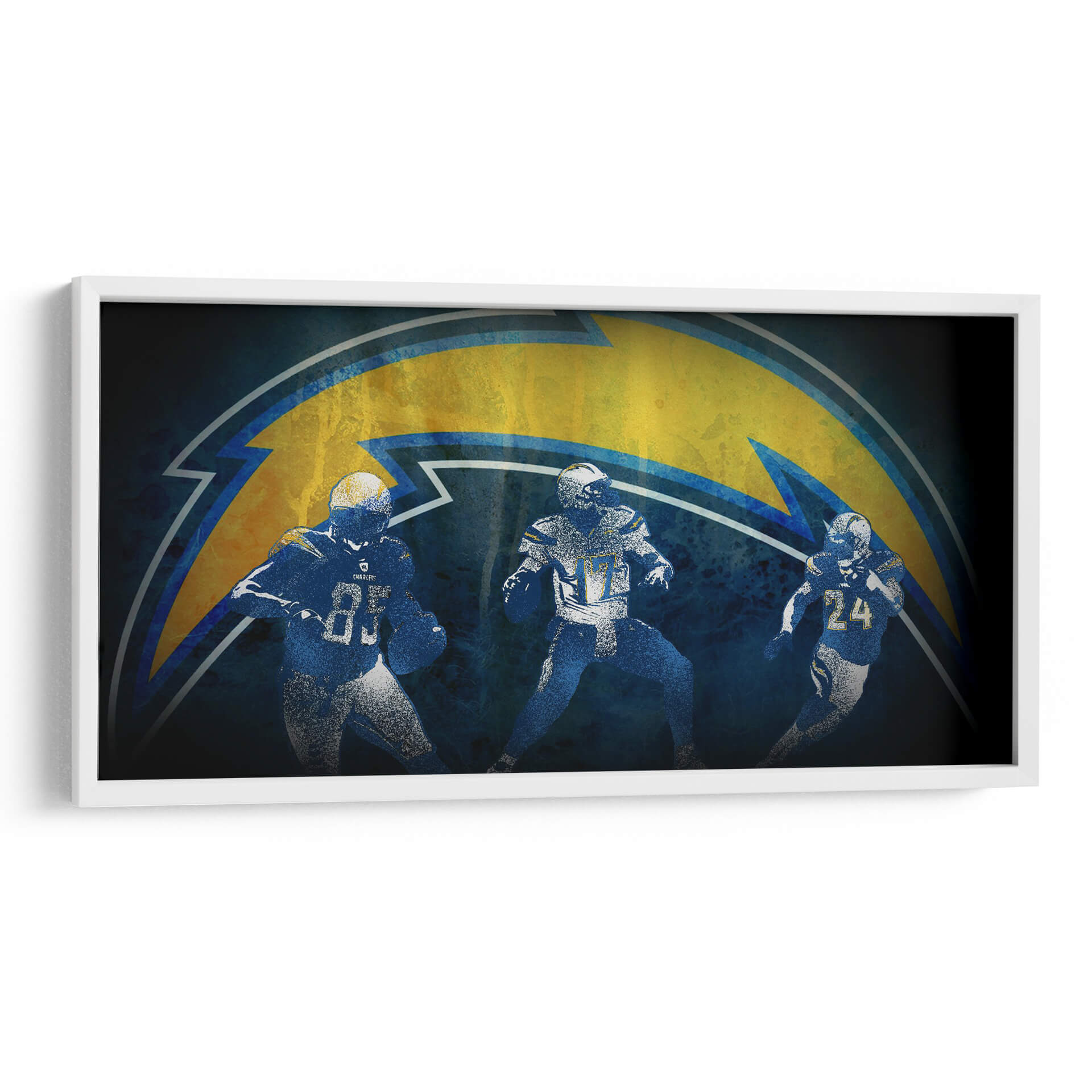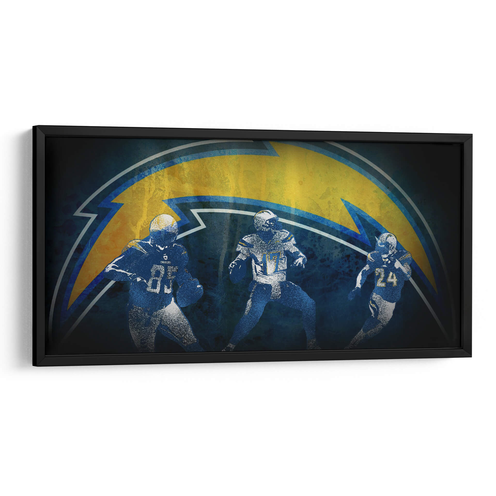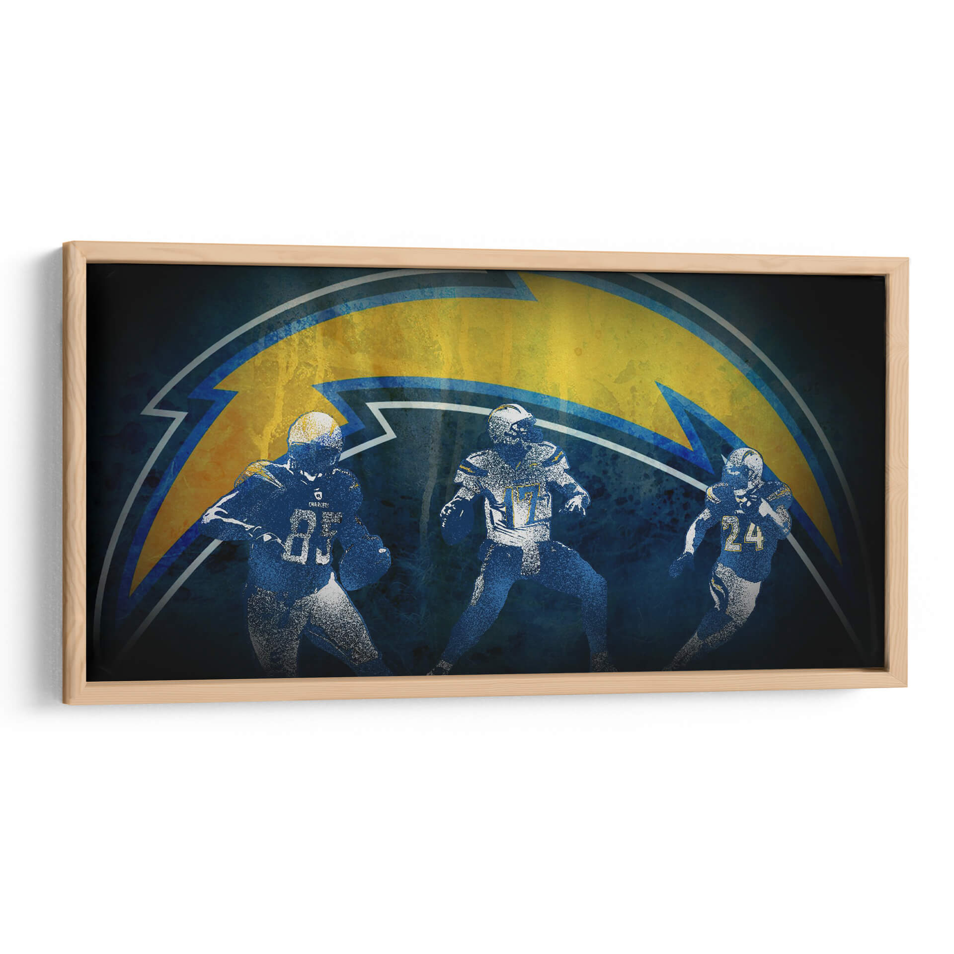 Captura la esencia dinámica del juego con este impactante cuadro decorativo de fútbol americano, inspirado en los Chargers. La obra presenta a tres jugadores en pleno movimiento, siluetas enérgicas que transmiten la intensidad y la pasión del deporte. Predominan los tonos azules profundos y el amarillo eléctrico del icónico rayo del equipo, creando un contraste vibrante que capta la atención. El estilo semi-abstracto y texturizado añade profundidad y carácter, evocando una sensación de energía cruda y determinación. Este cuadro es perfecto para cualquier aficionado al fútbol americano o para quienes buscan añadir un toque deportivo y audaz a su decoración. Ideal para salas de estar, estudios, oficinas o incluso habitaciones temáticas, este cuadro decorativo se convertirá en el punto focal de cualquier espacio, infundiendo una atmósfera de competencia y triunfo. Dale a tu hogar o lugar de trabajo la energía ganadora que se merece con esta pieza única de arte de pared.