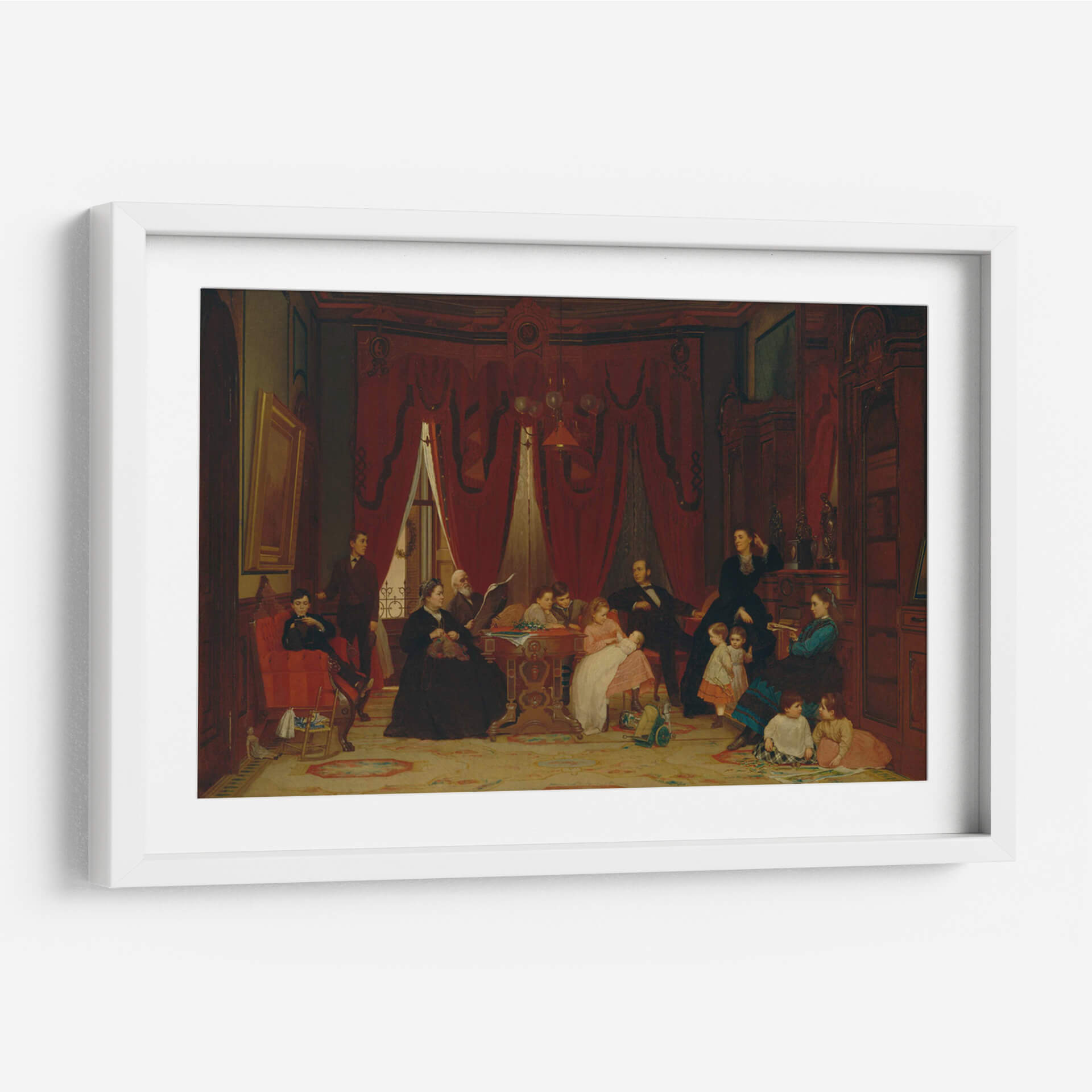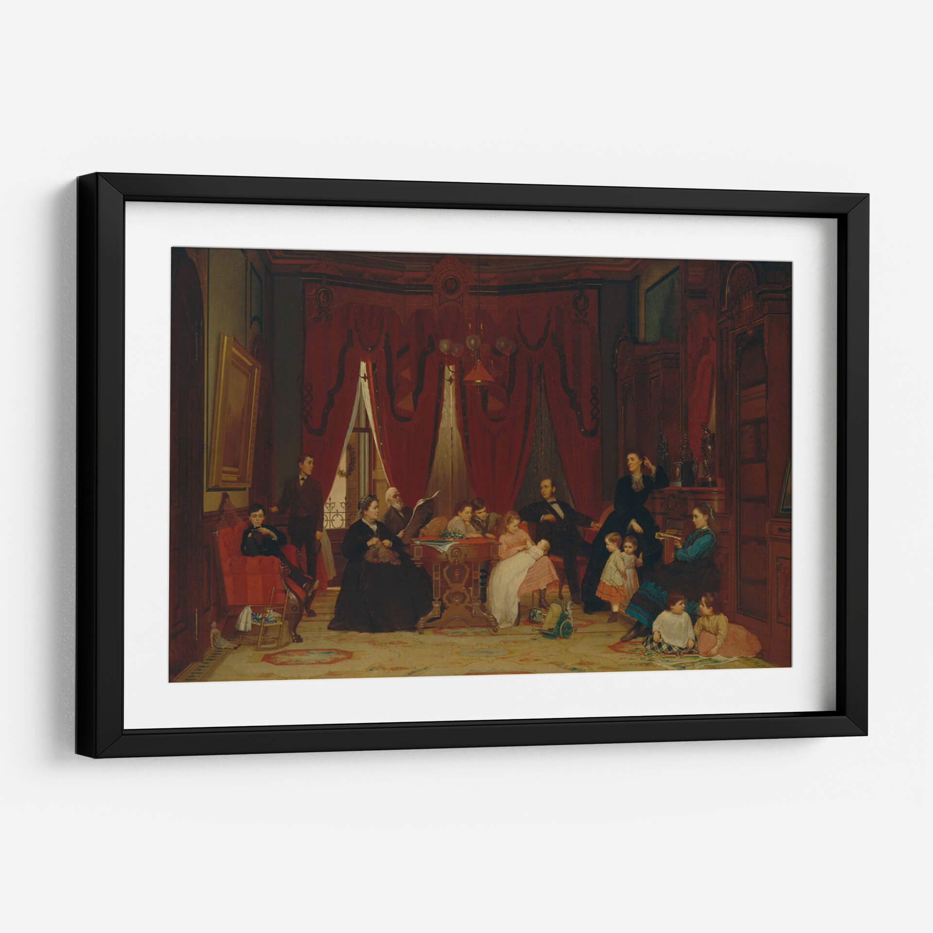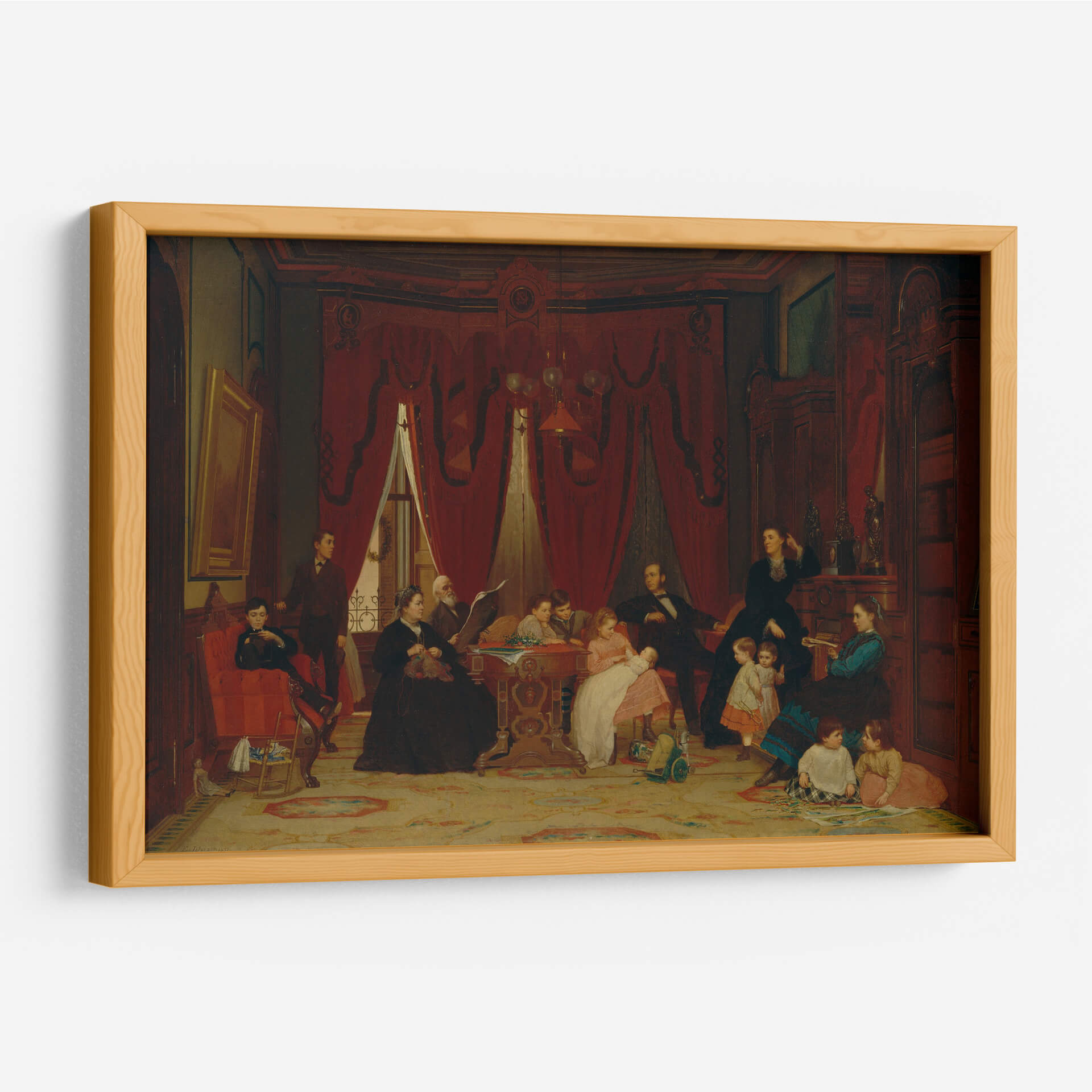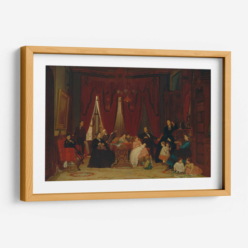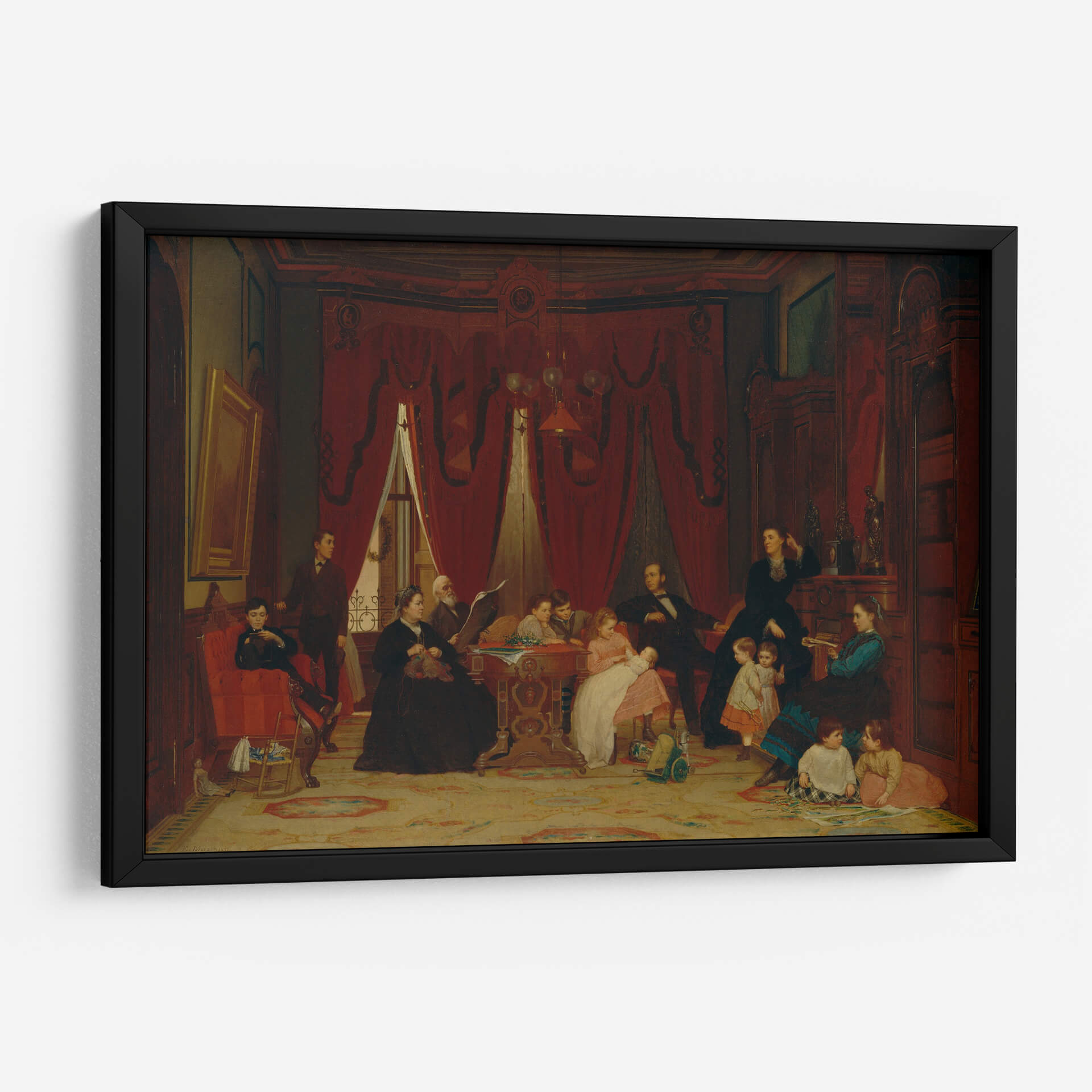 Sumérgete en la calidez y la intimidad de "The Hatch Family", una obra maestra del arte del siglo XIX que captura la esencia de la vida familiar y la conexión humana. Eastman Johnson, un renombrado artista, nos transporta a una sala de estar ricamente decorada, donde varias generaciones interactúan en un momento de aparente tranquilidad y cotidianidad. La rica paleta de colores, dominada por profundos tonos rojos de las cortinas y muebles, contrasta sutilmente con los vestidos y ropajes de los miembros de la familia, creando una atmósfera envolvente y acogedora. Observa la delicada composición, con figuras distribuidas de manera natural, invitando al espectador a ser parte de la escena. Este cuadro decorativo es más que una simple imagen; es una ventana a un pasado que evoca sentimientos de nostalgia, unidad y la belleza de los momentos compartidos. Ideal para añadir un toque de elegancia clásica y profundidad emocional a tu hogar u oficina, este lienzo transformará cualquier espacio en un lugar de reflexión y conversación. Una pieza que trasciende el tiempo, perfecta para quienes aprecian el arte narrativo y la habilidad magistral de Eastman Johnson.