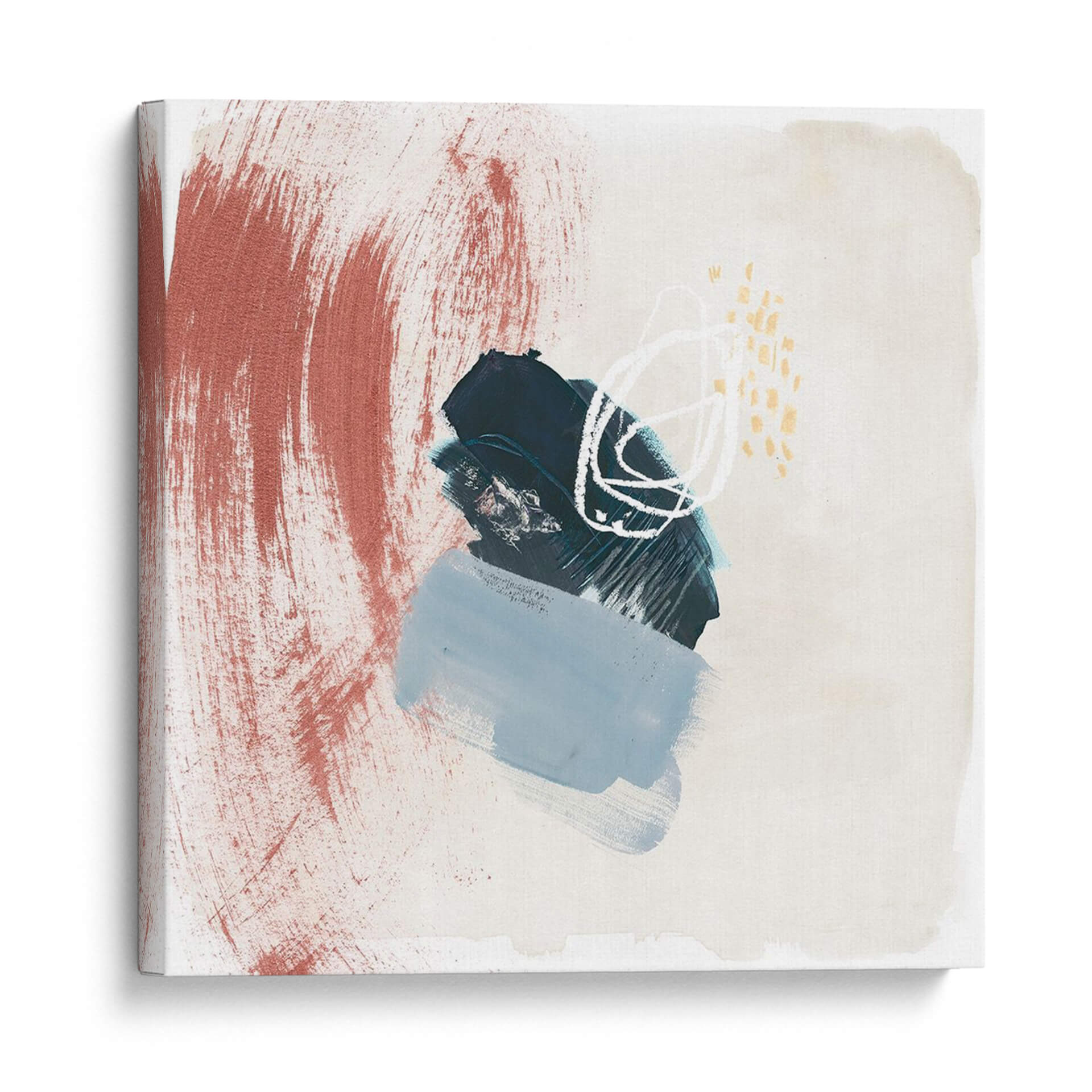 Sumérgete en la profundidad y la emoción de "Tierra Pigmentada Iv", una obra de arte abstracta contemporánea de Jennifer Paxton Parker. Este cuadro decorativo es una explosión de texturas y colores, dominado por pinceladas audaces en tonos terracota que contrastan con un bloque central de azul profundo y sereno. Las sutiles pinceladas en blanco y los toques de dorado añaden un dinamismo y una elegancia inesperada, creando un equilibrio visual fascinante. La composición, aunque abstracta, evoca una sensación de movimiento y profundidad, invitando al espectador a explorar sus capas. Ideal para espacios que buscan un toque de sofisticación terrenal y un punto focal intrigante, este cuadro aportará carácter y personalidad a tu hogar u oficina. Su paleta de colores, inspirada en la tierra, lo convierte en una pieza versátil que complementa una amplia gama de estilos decorativos, desde el moderno hasta el bohemio. "Tierra Pigmentada Iv" no es solo una decoración, es una invitación a sentir y a conectar con el arte abstracto.