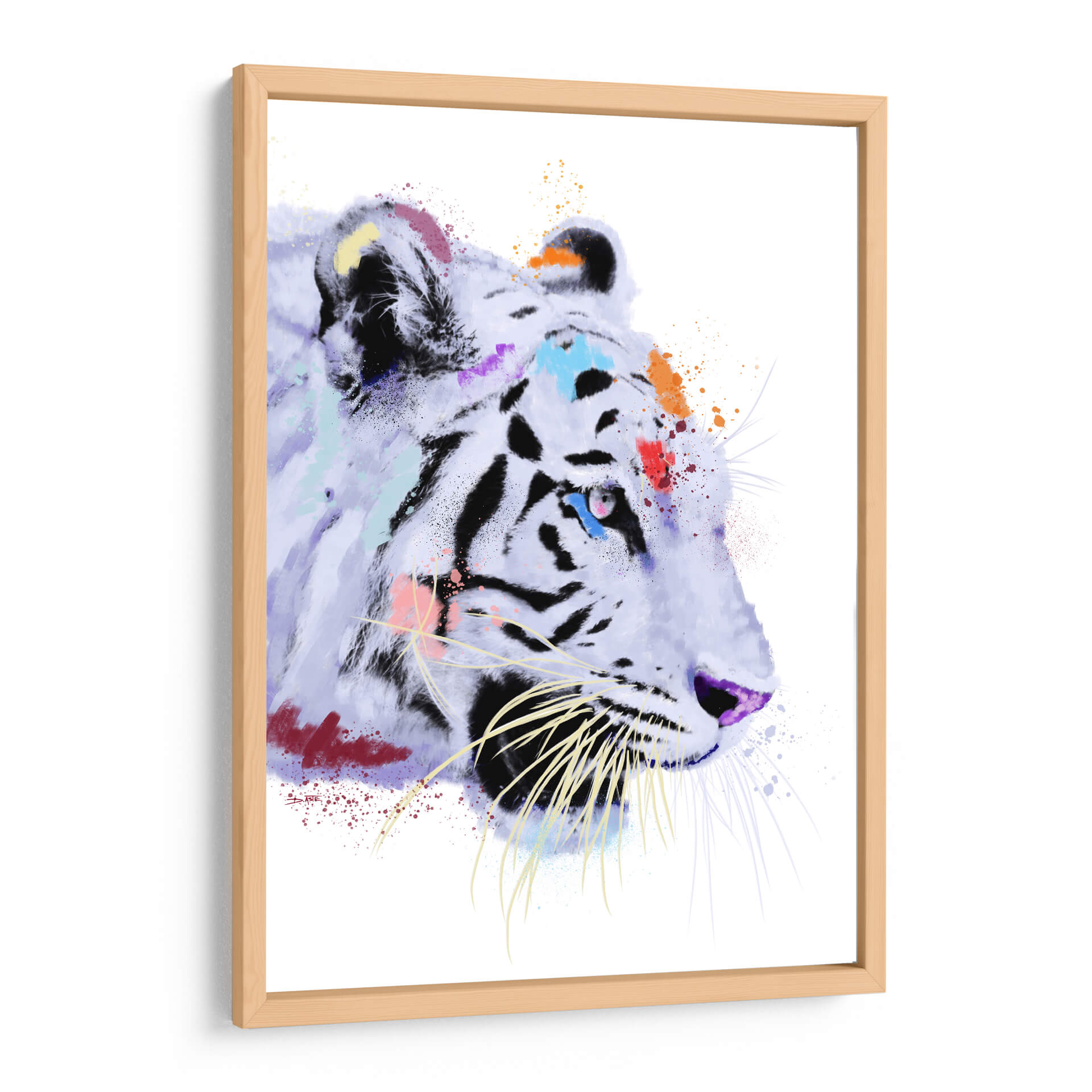 Transforma tu espacio con la majestuosidad del 'Tigre Blanco', una obra de arte contemporáneo que captura la esencia salvaje y elegante de este felino icónico. El artista Hue Art presenta una visión audaz y colorida, donde el blanco puro del tigre se ve realzado por salpicaduras vibrantes de acuarela en tonos morados, azules, naranjas y rojos, creando un contraste impactante y una atmósfera de energía contenida. La técnica pictórica evoca la fluidez y la delicadeza, casi como si la pintura cobrara vida sobre el lienzo. Este cuadro decorativo no es solo una pieza de arte, sino una declaración de estilo. Su composición en primer plano, centrada en el rostro del tigre, invita a la contemplación y atrae todas las miradas, convirtiéndose en un punto focal ideal para salas de estar modernas, estudios creativos u oficinas que buscan un toque de sofisticación y fuerza. Ideal para quienes aprecian el arte moderno y la belleza de la naturaleza reimaginada, este tigre blanco es perfecto para añadir carácter y un toque de color a cualquier decoración, evocando admiración y respeto por la majestuosidad animal. Una elección perfecta para coleccionistas de arte o para quienes buscan una pieza única que hable de poder y elegancia.