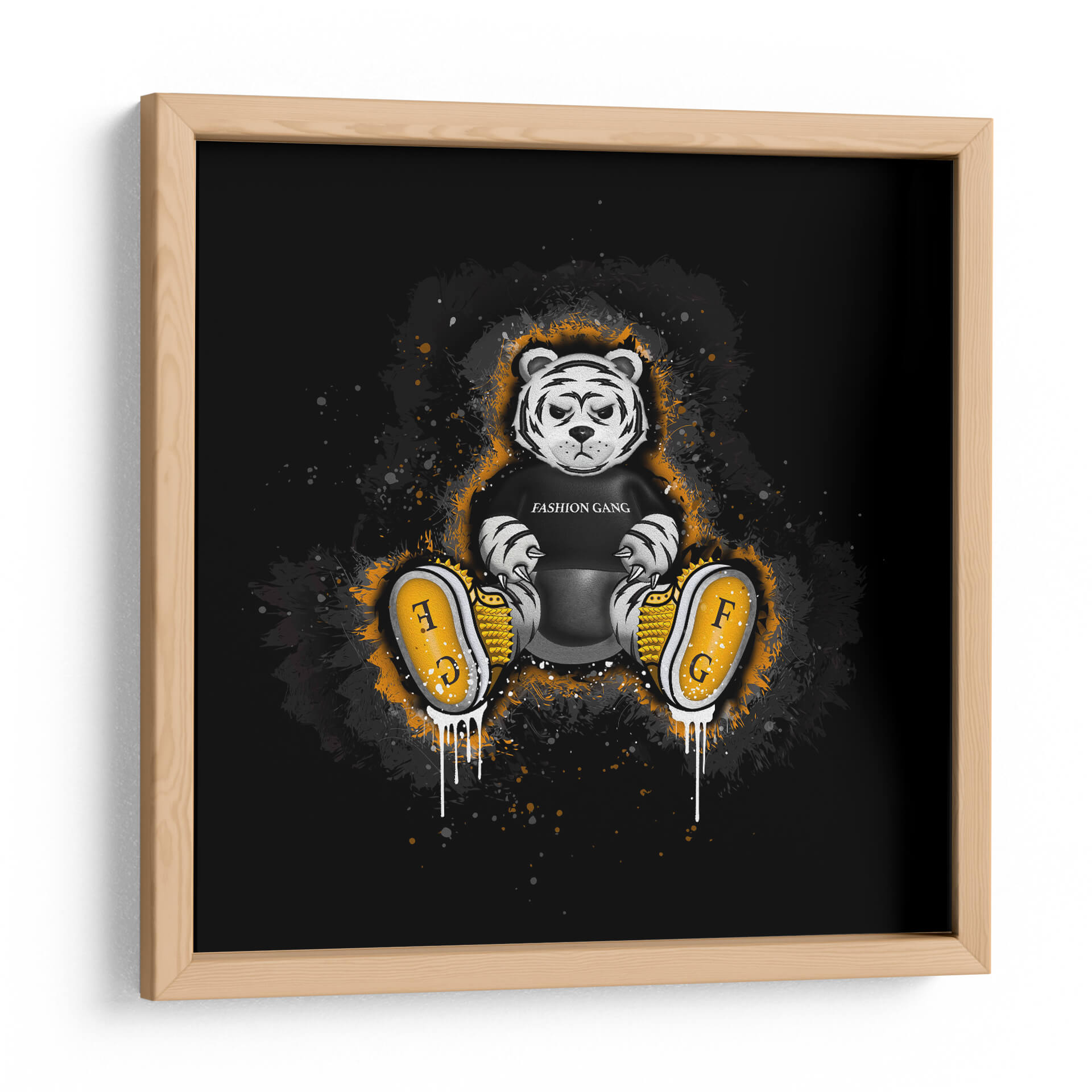 Captura la majestuosidad y el poder indomable con este cautivador cuadro decorativo del Tigre de Bengala. La obra, titulada "Tigre de Bengala" por el artista GasG, presenta un primer plano del icónico felino, con un enfoque expresionista que combina líneas audaces y trazos de color vibrante para dar vida a su mirada penetrante. La paleta de colores, dominada por naranjas intensos, tonos tierra y toques de negro y gris, evoca la fuerza y la calidez de este majestuoso animal, creando una atmósfera de energía contenida y elegancia salvaje. El estilo artístico fusiona elementos del dibujo a mano alzada con una abstracción geométrica sutil, resultando en una pieza moderna y dinámica que atraerá todas las miradas. Este cuadro decorativo es perfecto para añadir un toque de carácter y sofisticación a cualquier espacio, ya sea una sala de estar moderna, un estudio contemporáneo o incluso una oficina que busque inspirar audacia. Su diseño impactante lo convierte en un punto focal ideal, transmitiendo una sensación de poder tranquilo y belleza natural. Una adición excepcional para amantes de la fauna y del arte contemporáneo que buscan piezas con personalidad.