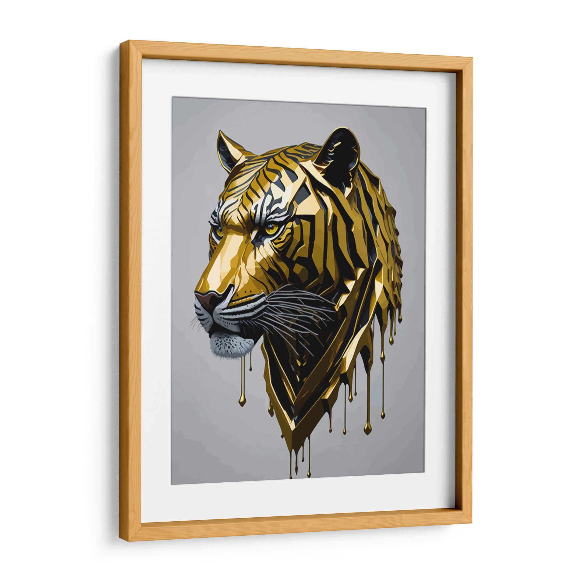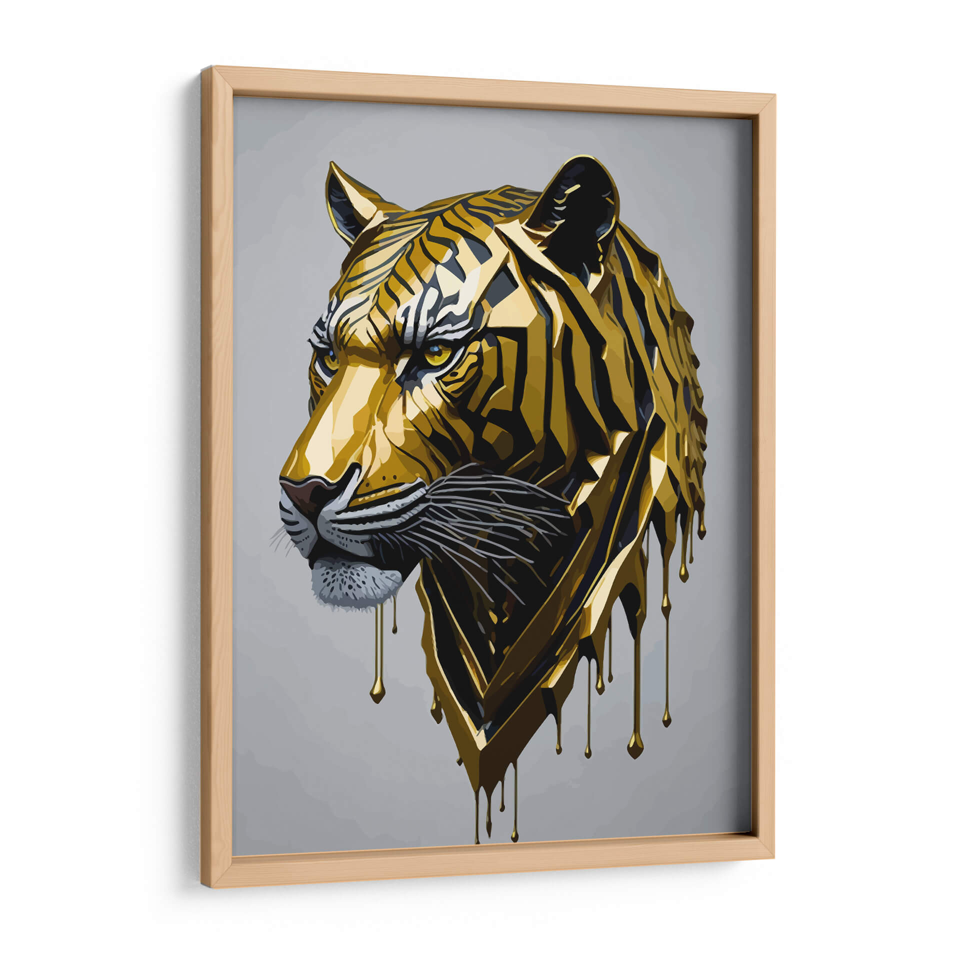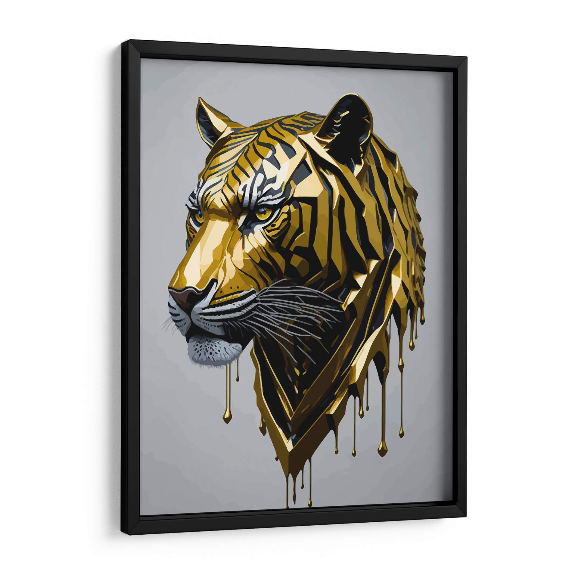 Captura la majestuosidad y el poder con nuestro cuadro decorativo 'Tigre Dorado', una obra de arte contemporáneo que infunde lujo y fuerza en cualquier espacio. La pieza presenta un retrato estilizado y geométrico de un tigre, donde el dorado líquido parece derretirse, creando un contraste fascinante entre la solidez del felino y la fluidez del metal precioso. Los detalles en negro y los vibrantes ojos amarillos añaden intensidad y enfoque a la mirada penetrante del tigre, evocando una sensación de sabiduría ancestral y energía salvaje. La paleta de colores, dominada por el oro brillante y los acentos oscuros sobre un fondo neutro de gris perla, permite que esta obra destaque como un punto focal sofisticado y moderno. Ideal para salones, estudios u oficinas que buscan una declaración audaz y elegante, este cuadro es una representación única de la dualidad entre la naturaleza indómita y la refinada estética. Transforma tu hogar u oficina con la presencia imponente de este tigre dorado, una pieza que simboliza la ambición, la protección y la riqueza visual, invitando a la admiración y la contemplación en cada mirada. Añade un toque de opulencia y carácter distintivo a tu decoración.