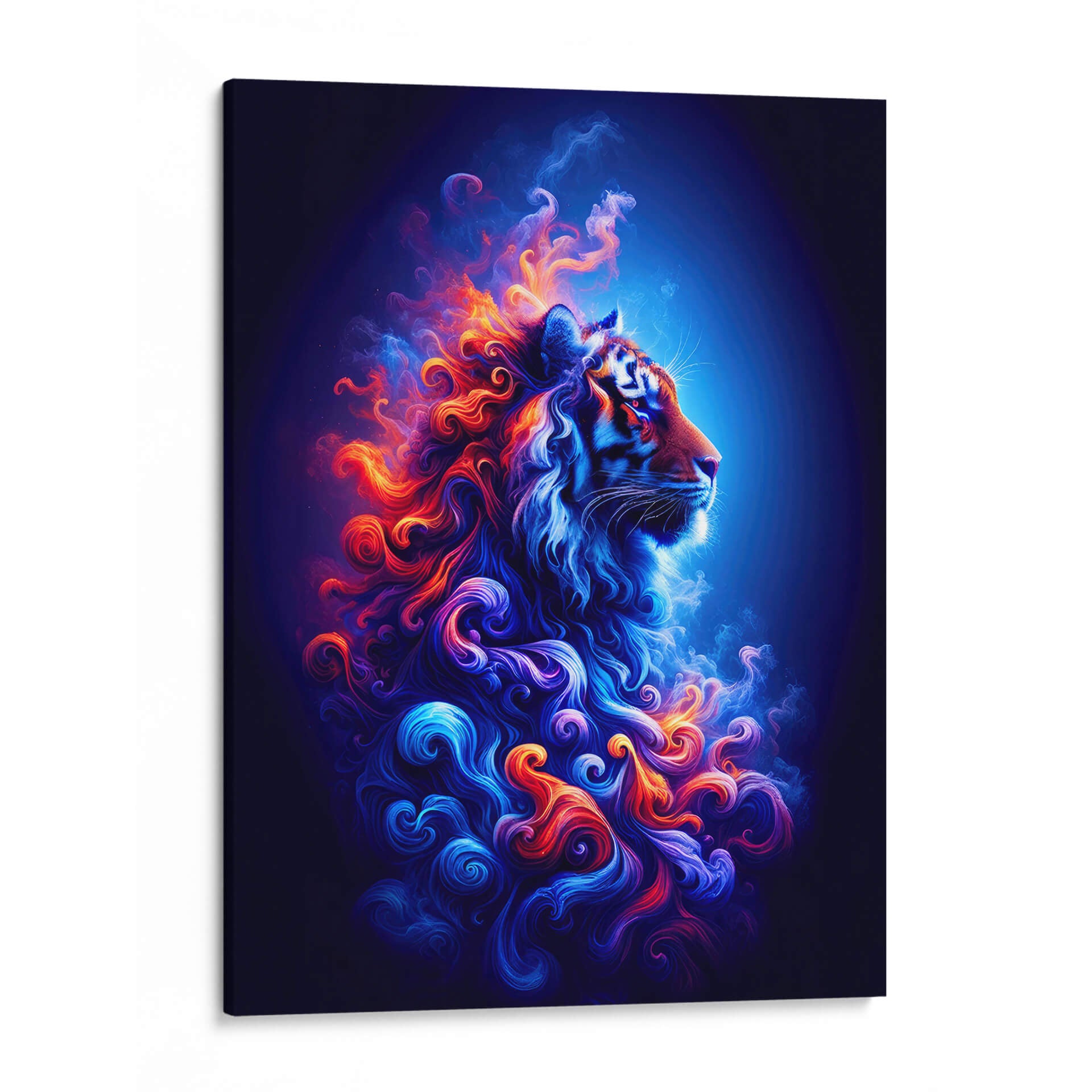 Sumérgete en la vibrante energía de "Tigre Neon", una obra de arte digital que redefine la majestuosidad felina a través de una explosión de color y forma. Este cuadro decorativo captura la esencia de un tigre en un torbellino etéreo de luces neón, donde las líneas fluidas y las volutas de humo digital se entrelazan para crear una melena ardiente y un aura mística. Predominan los azules profundos y eléctricos que contrastan dramáticamente con los naranjas incandescentes y púrpuras intensos, generando un efecto visual hipnótico que atrae todas las miradas. El estilo contemporáneo y abstracto de Paltik Arte Digital transforma a este depredador icónico en un símbolo de poder y modernidad, ideal para espacios que buscan un toque de audacia y sofisticación. La composición, con el tigre emergiendo de la oscuridad, sugiere misterio y fuerza latente. Este cuadro decorativo es perfecto para añadir un punto focal dinámico a tu sala de estar, un toque de personalidad a tu oficina o una dosis de inspiración en tu dormitorio. "Tigre Neon" no es solo una pieza de decoración, es una declaración de estilo que evoca pasión, creatividad y una conexión con la naturaleza salvaje representada con una estética futurista. Transforma tu hogar u oficina en una galería de arte moderno con esta impactante obra.