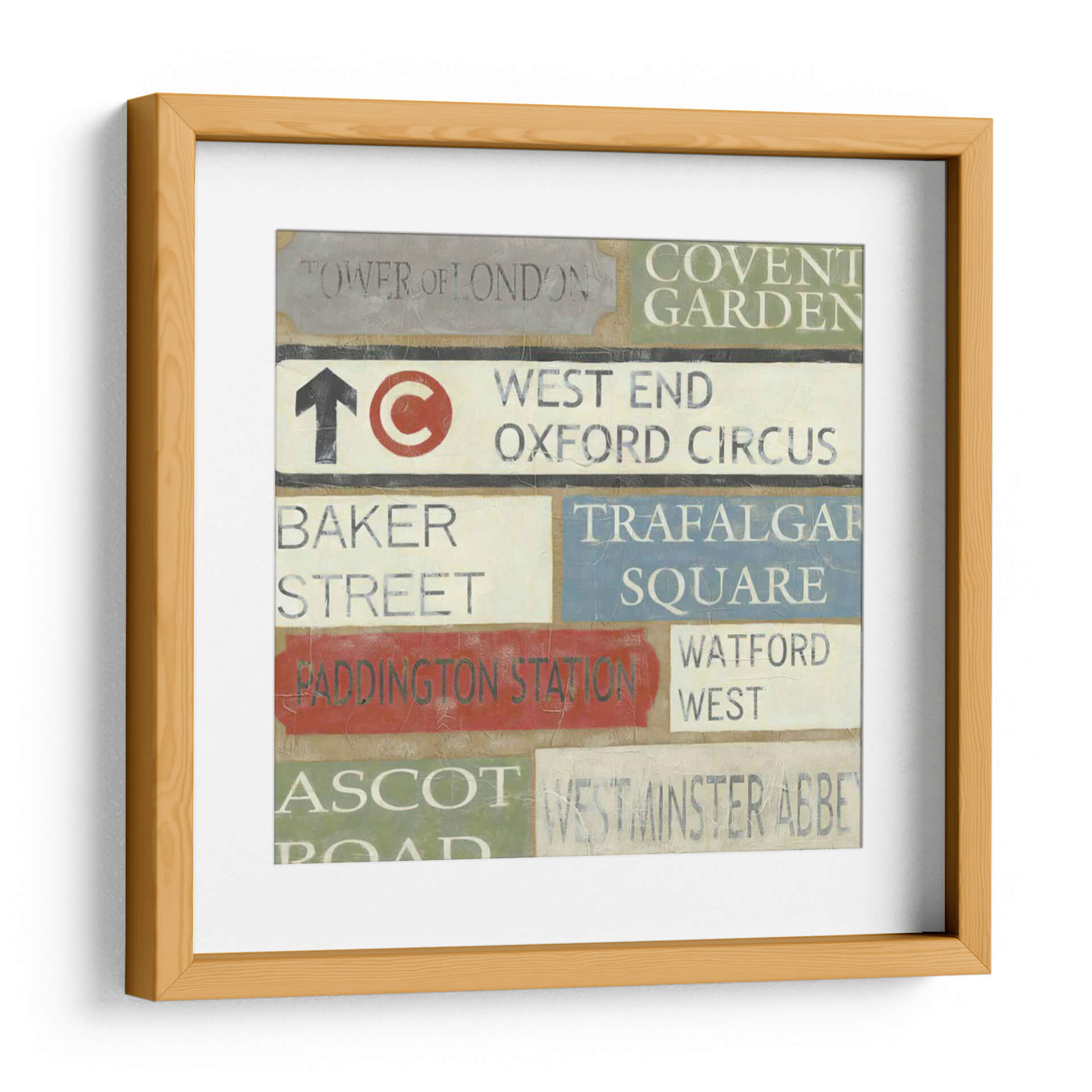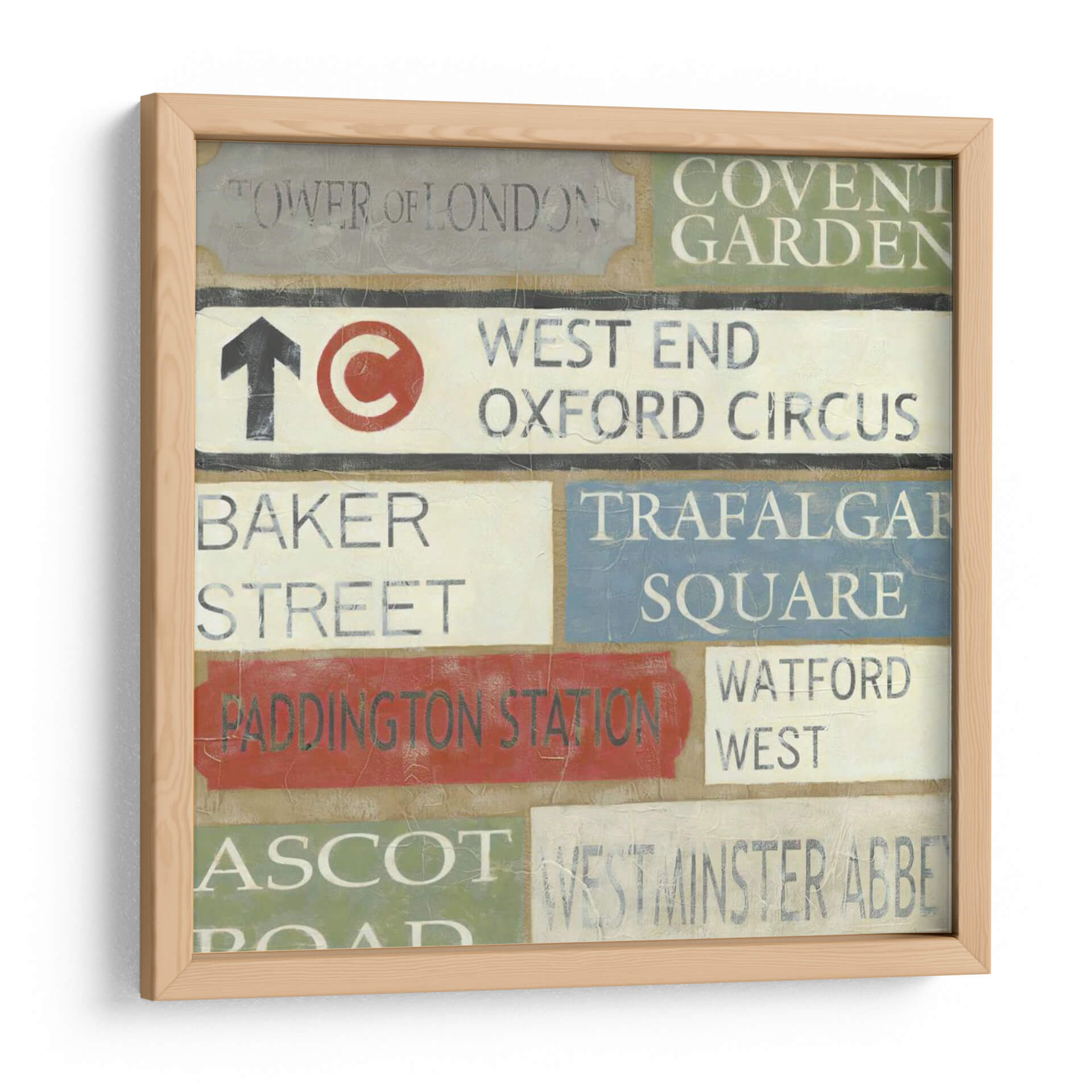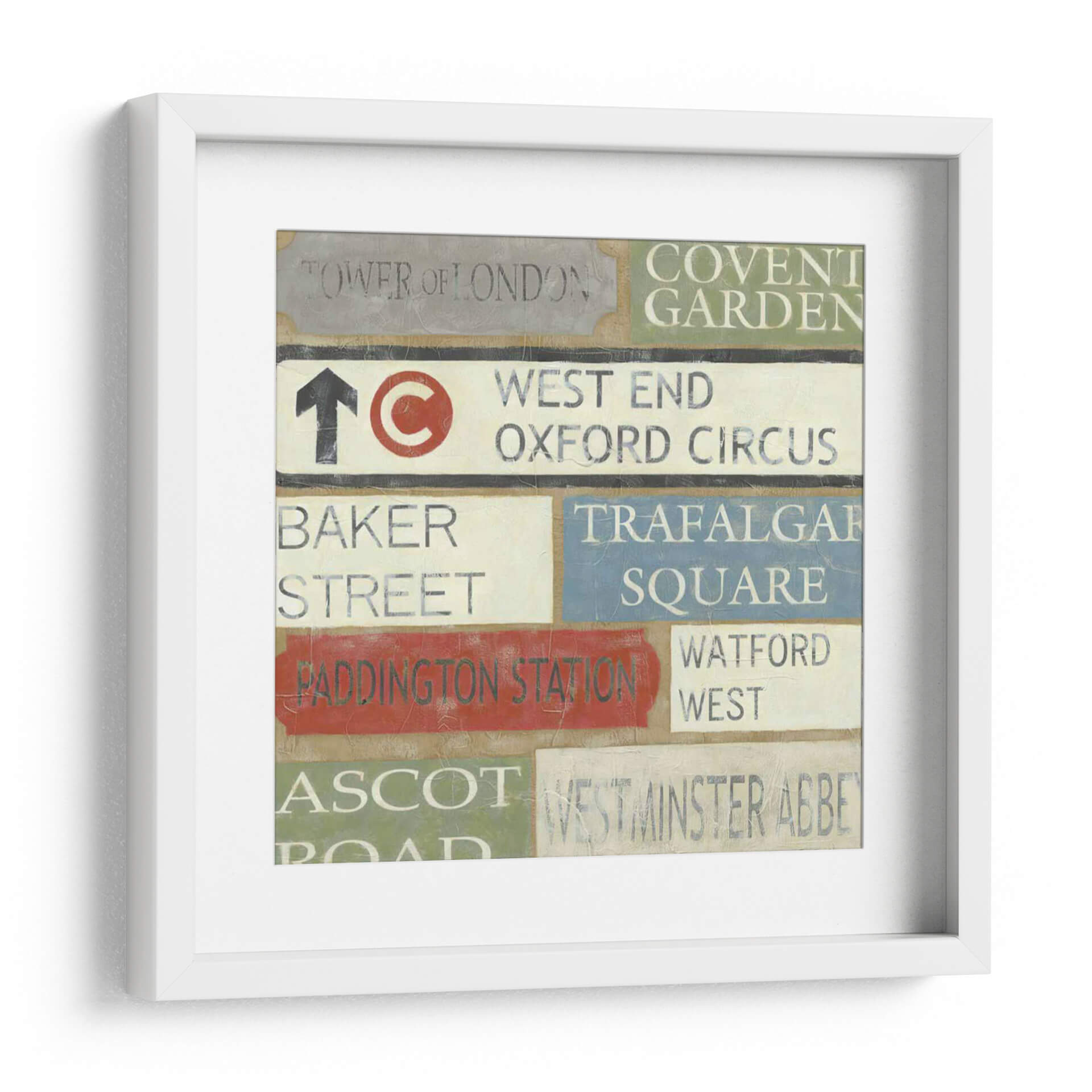 Embárcate en un viaje visual a través del corazón de Londres con este cautivador cuadro decorativo titulado 'Tour De Londres' del artista Chariklia Zarris. Esta obra evoca la esencia de la emblemática ciudad, presentando una composición dinámica de señales de tráfico y nombres de lugares icónicos como 'Tower of London', 'Covent Garden', 'West End', 'Oxford Circus', 'Baker Street', 'Trafalgar Square', 'Paddington Station', 'Watford West', 'Ascot' y 'Westminster Abbey'. La paleta de colores, que combina tonos tierra, grises, blancos, rojos vibrantes y azules serenos, crea una atmósfera nostálgica y urbana a la vez. El estilo, que recuerda a la pintura vintage y al arte conceptual, hace de este cuadro una pieza versátil, perfecta para añadir un toque de carácter y sofisticación a cualquier espacio, ya sea una sala de estar moderna, un estudio o una oficina con temática de viajes. Imagina cómo las texturas y la tipografía desgastada de estas señales de Londres aportarán una narrativa única a tus paredes, invitando a la conversación y al recuerdo de experiencias urbanas. Este cuadro decorativo es más que una simple imagen; es una invitación a explorar y a sentir la energía de una de las ciudades más fascinantes del mundo, convirtiendo tu hogar en un reflejo de tus aspiraciones y recuerdos.