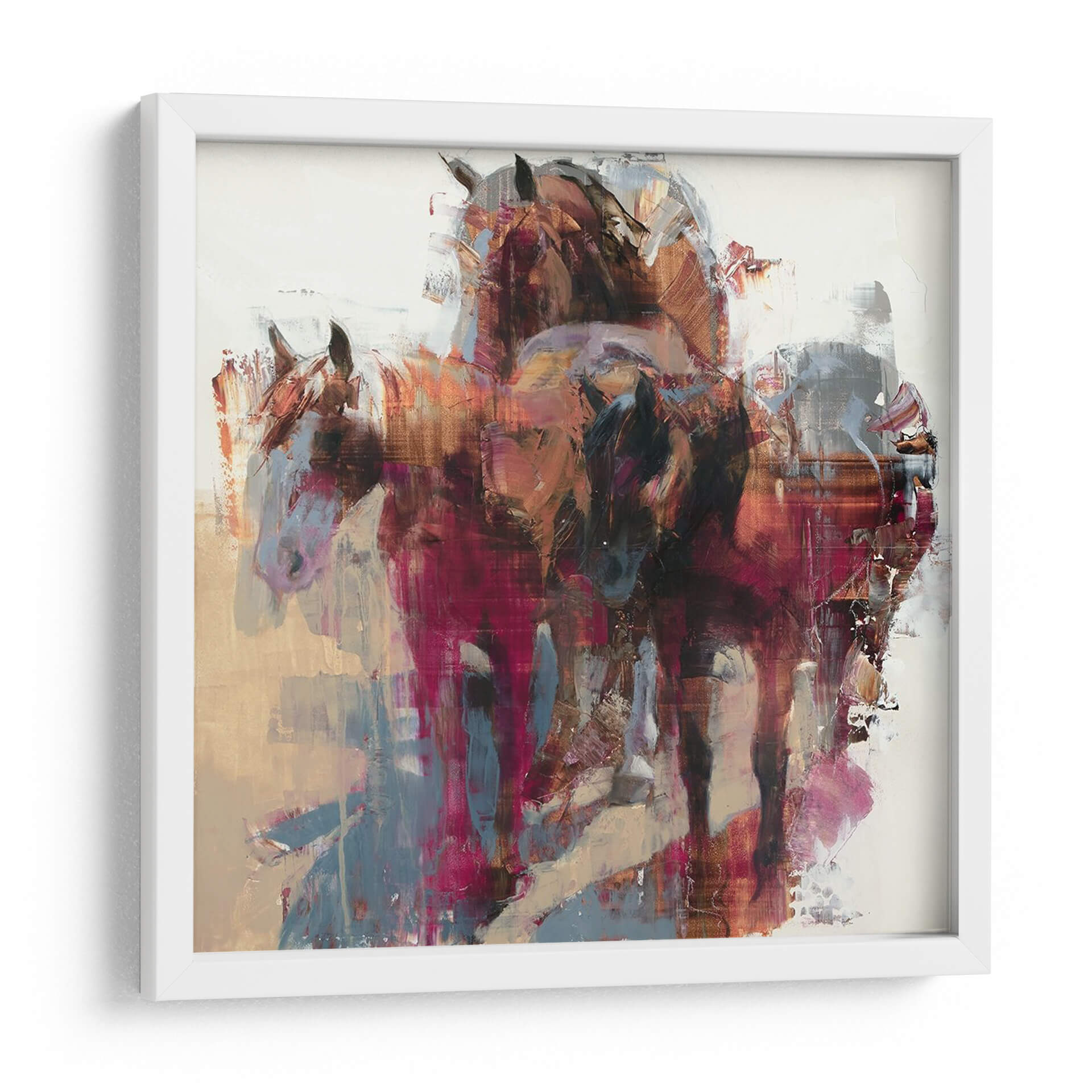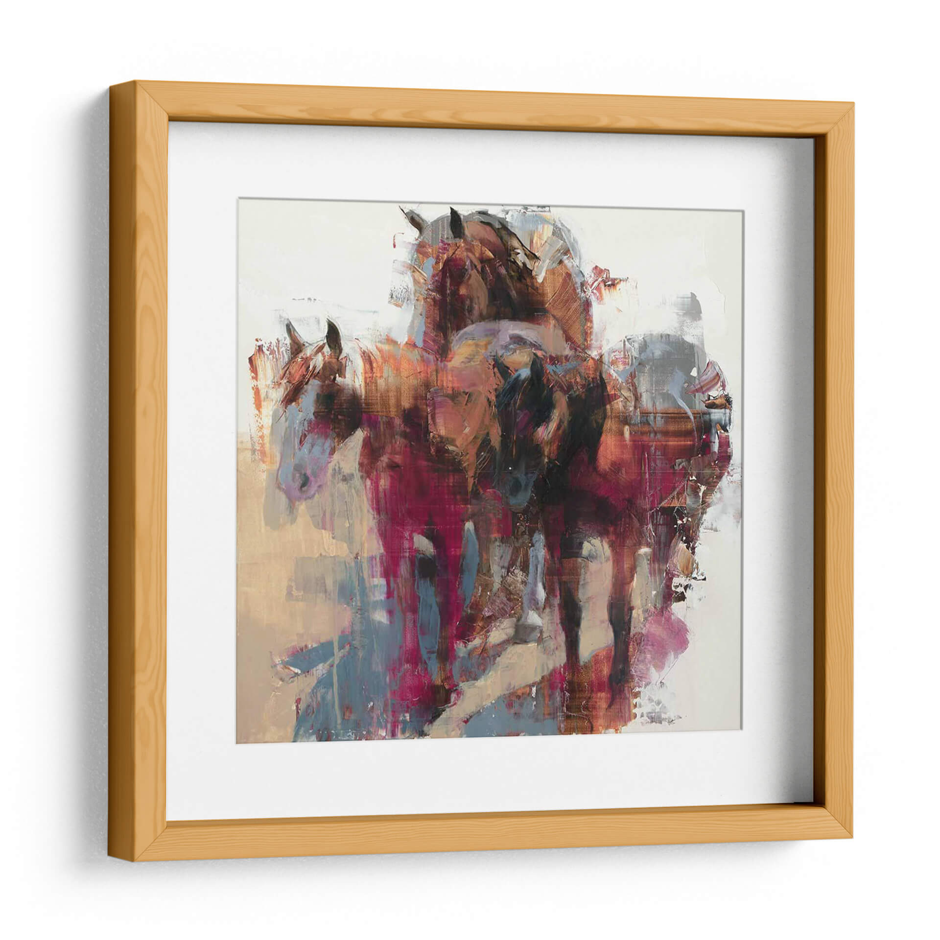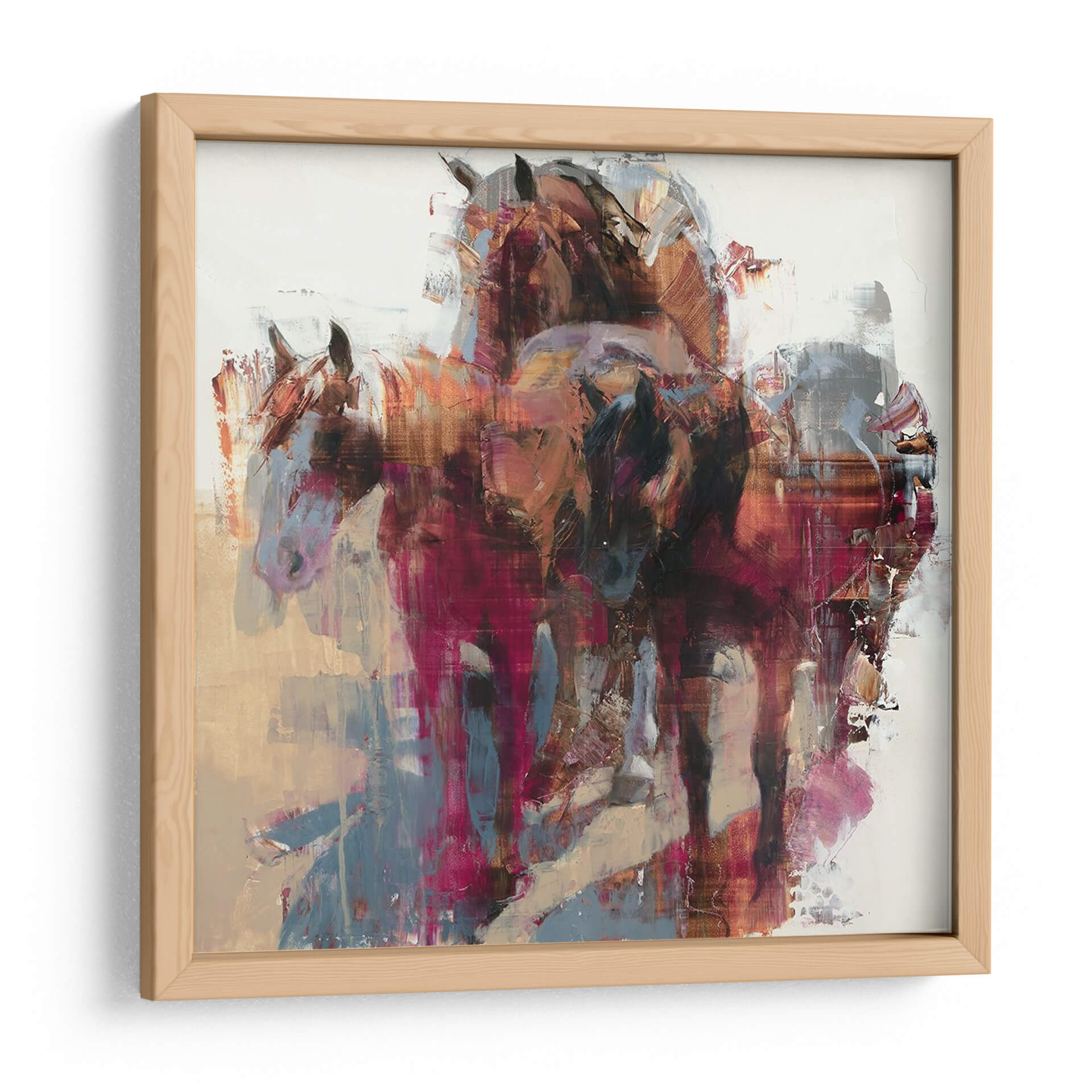 Sumérgete en la fuerza y la elegancia de 'Tres Chiflados', una cautivadora obra de arte que captura la esencia dinámica de los caballos con una técnica expresionista. La artista Julie T. Chapman utiliza pinceladas audaces y una paleta de colores rica en tonos tierra, burdeos intensos y toques de azul grisáceo para dar vida a estas majestuosas criaturas. La composición, con los caballos entrelazados en una pose de movimiento contenido, evoca una sensación de poder latente y conexión. Este cuadro decorativo es perfecto para añadir un toque de sofisticación y vitalidad a cualquier espacio, ya sea una sala de estar moderna, un estudio o una oficina. Su estilo artístico contemporáneo lo convierte en una pieza de conversación, ideal para quienes aprecian el arte que combina la representación figurativa con la abstracción emocional. Deja que la intensidad y la belleza de 'Tres Chiflados' inspiren tu entorno y reflejen tu aprecio por la naturaleza y la fuerza animal. Una adición excepcional para coleccionistas y amantes del arte que buscan piezas únicas con carácter y profundidad.