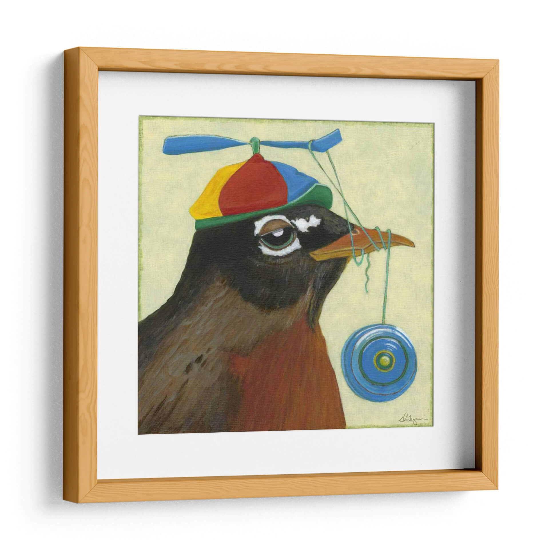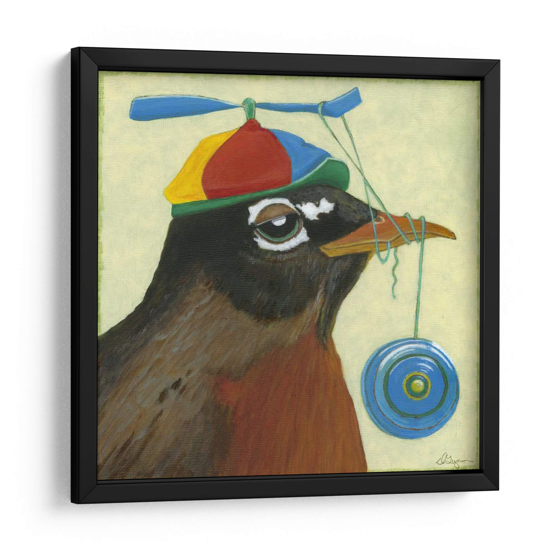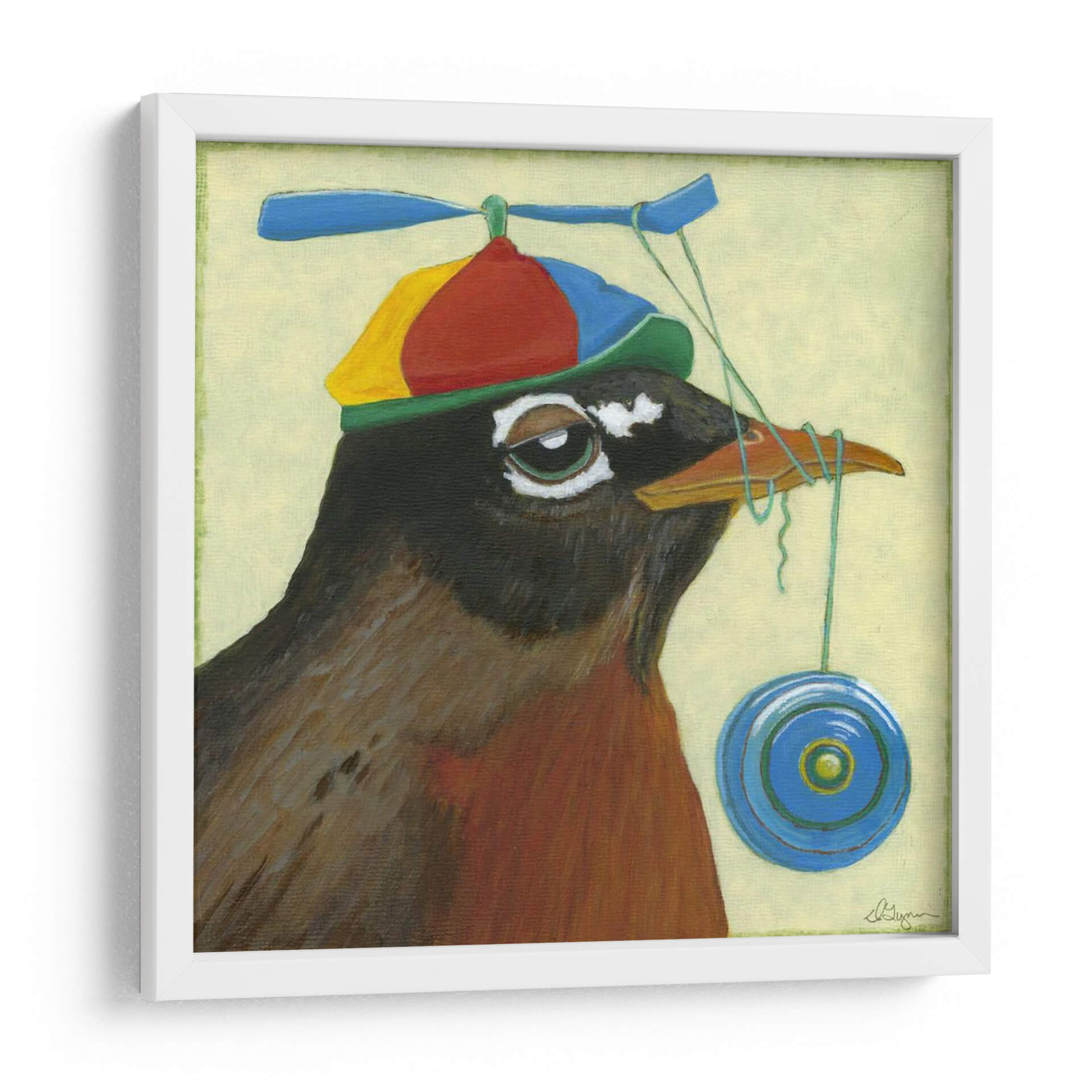 Dale vida a tus espacios con el encantador cuadro decorativo "Tu Pájaro Tonto" del artista Dlynn Roll. Esta obra de arte capta la imaginación con su representación juguetona de un petirrojo ataviado con un gorro de hélice multicolor y un yoyó colgando cómicamente de su pico. La paleta de colores, dominada por tonos tierra cálidos en el ave y un suave fondo de color crema, crea una atmósfera acogedora y amigable. El estilo pictórico, con pinceladas visibles y un toque de realismo encantador, añade profundidad y carácter a la pieza. Ideal para añadir un toque de humor y originalidad a cualquier habitación, este cuadro decorativo es perfecto para salas de estar, dormitorios infantiles o incluso oficinas que buscan un ambiente más desenfadado y creativo. Su composición centrada en el personaje y su expresión curiosa invitan a la sonrisa y la contemplación. "Tu Pájaro Tonto" no es solo una pieza decorativa, es una invitación a la alegría y al juego, una obra que sin duda generará conversaciones y aportará una personalidad única a tu hogar.