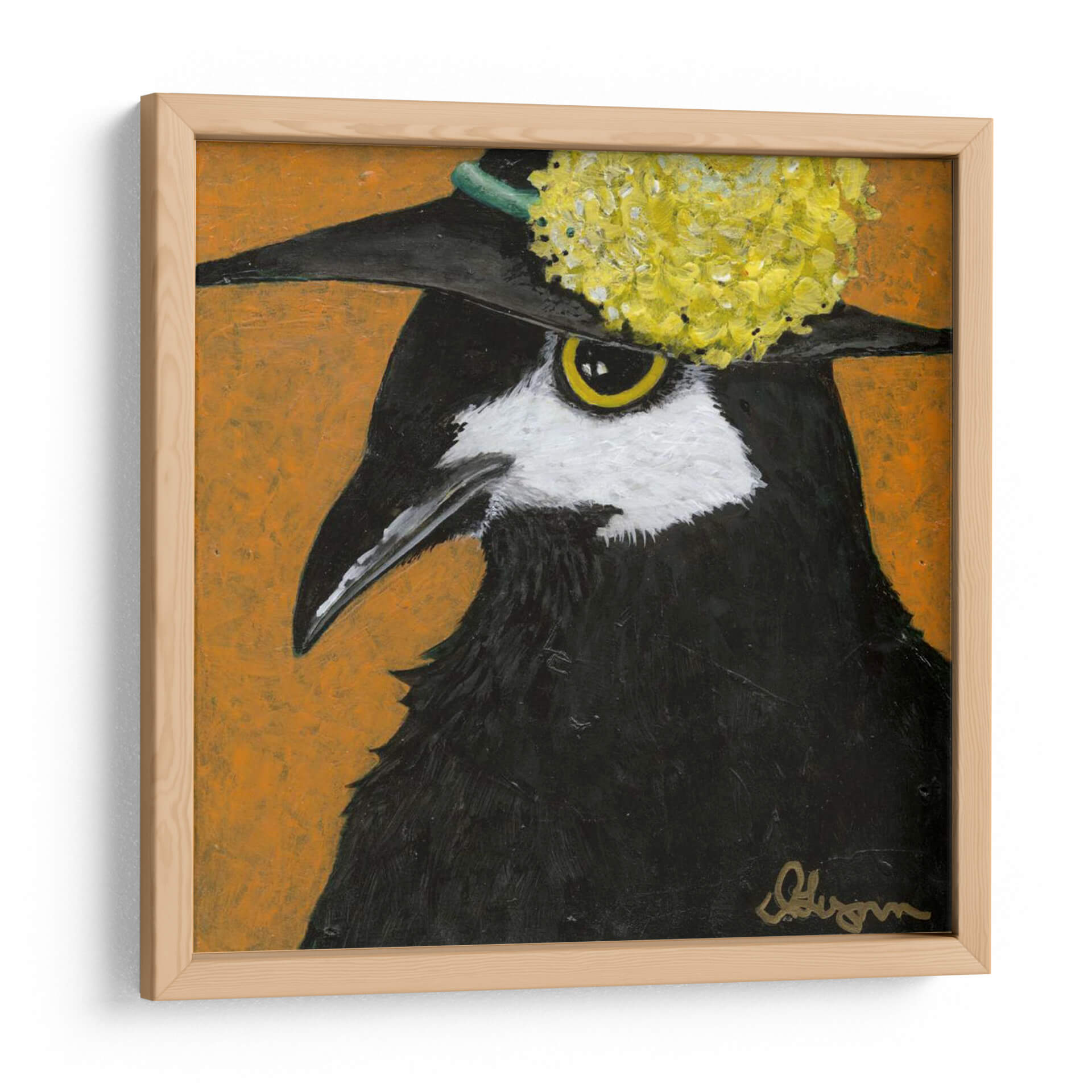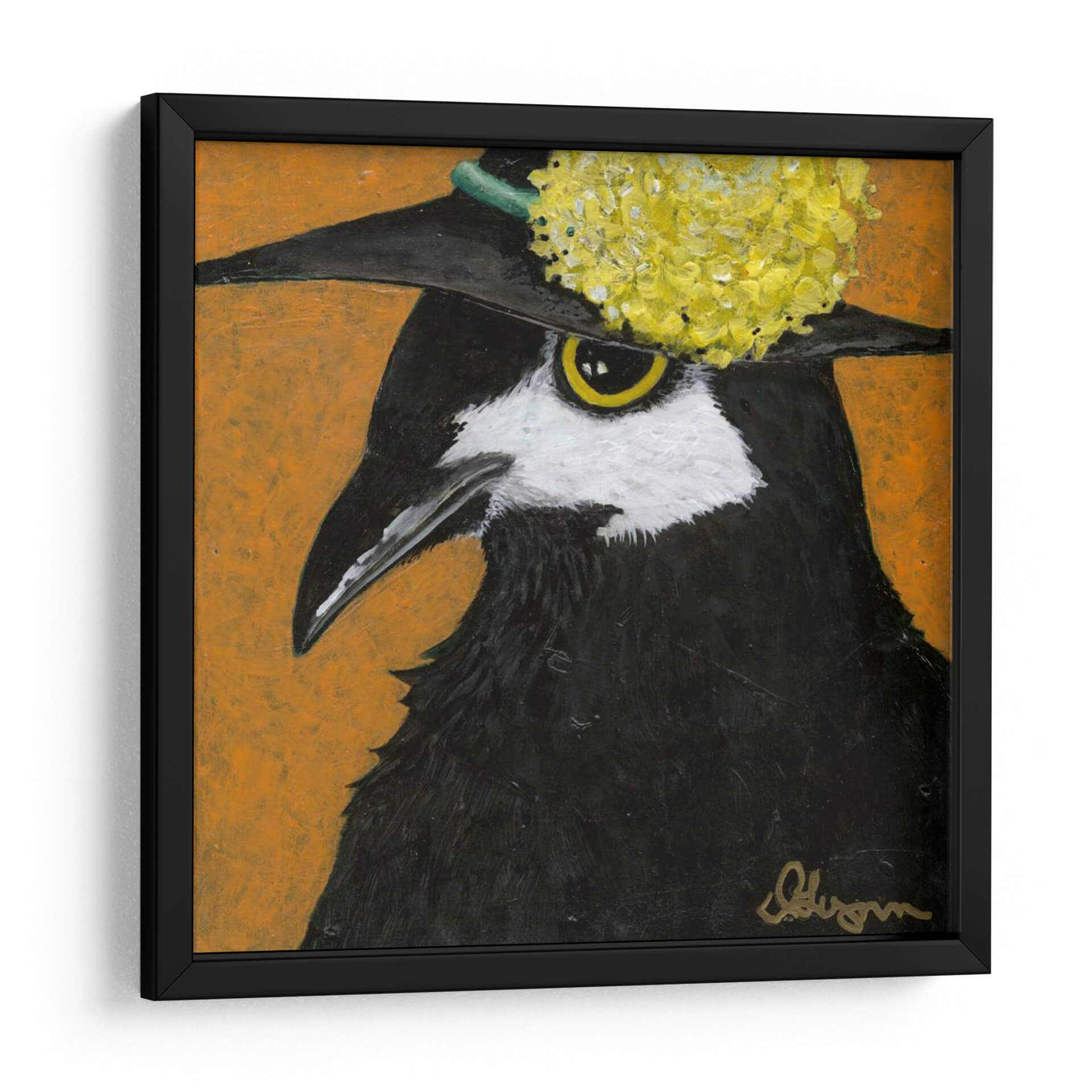 Sumérgete en la enigmática mirada de 'Tu Tonto Pájaro', una obra de arte que captura la imaginación con su vibrante paleta de colores y su intrigante sujeto. Este cuadro decorativo presenta un pájaro negro detallado con un plumaje texturizado, coronado por un sombrero negro adornado con una exuberante floración amarilla. El fondo, de un naranja intenso y texturizado, crea un contraste audaz que resalta la figura central. La expresión del pájaro, con su ojo amarillo penetrante y su pico agudo, añade un toque de carácter y misterio a la pieza. El estilo artístico, que combina elementos realistas con un toque expresionista, otorga a la obra una profundidad emocional y una presencia única. Ideal para quienes buscan añadir un acento de color y personalidad a su hogar u oficina, este cuadro decorativo funciona como un punto focal cautivador en cualquier sala de estar moderna, un estudio creativo o incluso un dormitorio con carácter. Su composición cercana y el enfoque en el rostro del pájaro invitan a la contemplación, ofreciendo una pieza de conversación que inspira alegría y curiosidad. Añade un toque de arte contemporáneo y audaz a tu decoración con esta pieza singular.