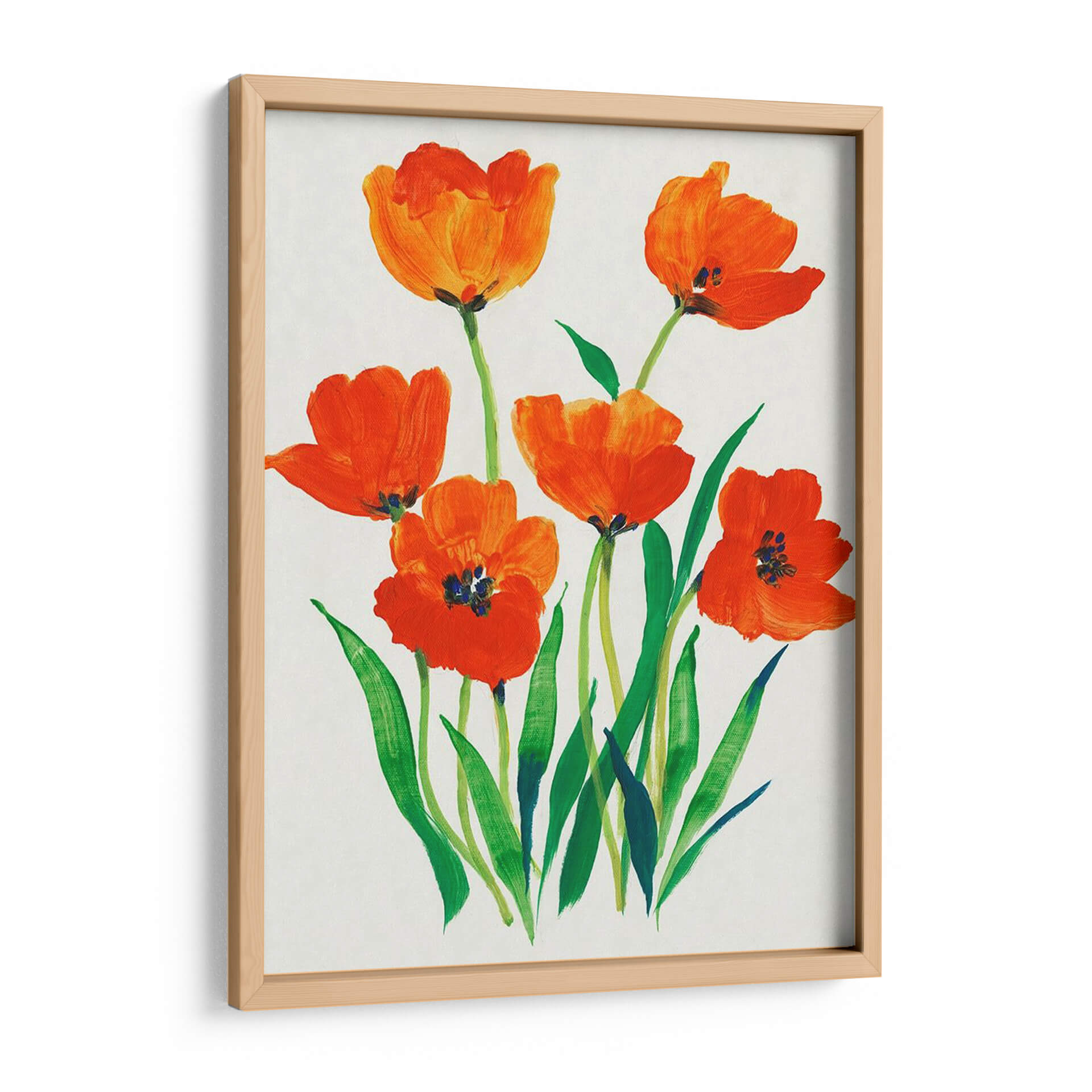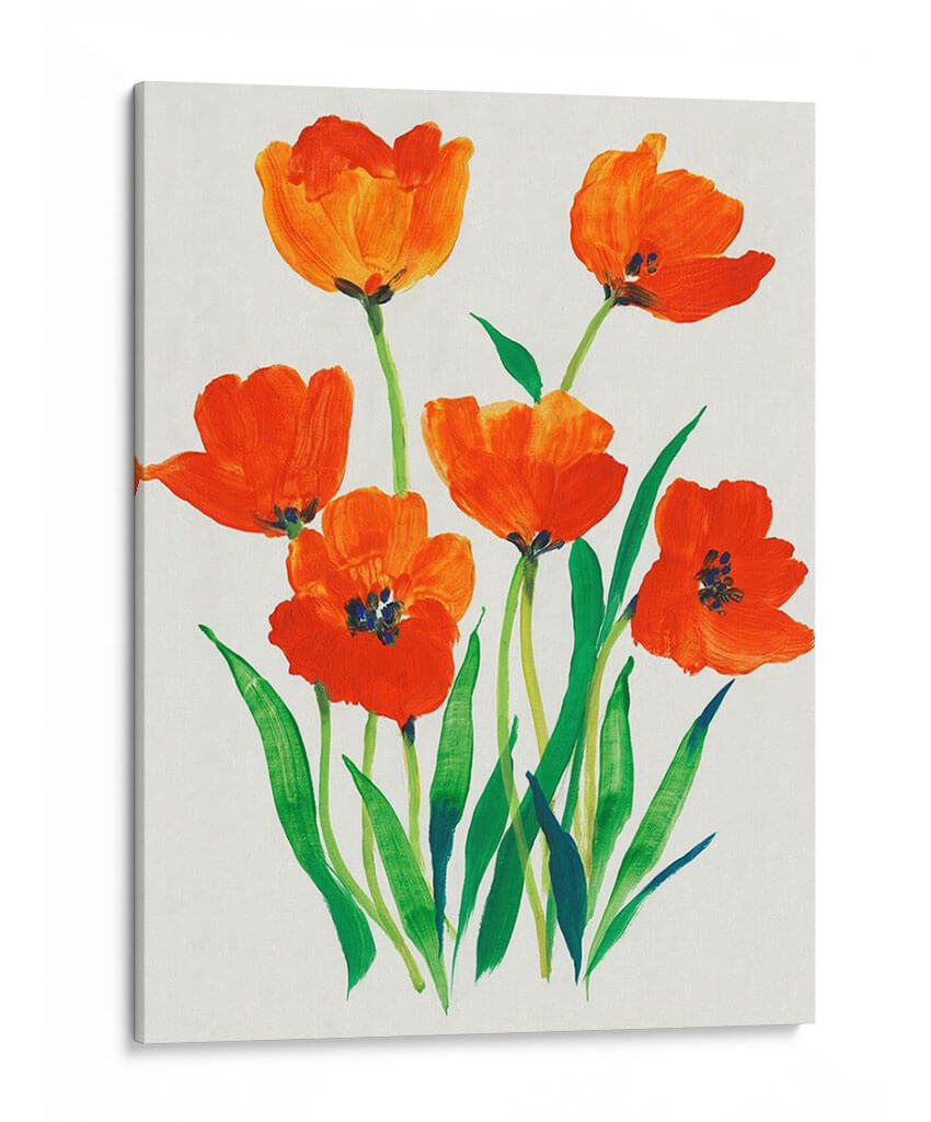 Captura la vitalidad y el encanto de la primavera con "Tulipanes Rojos en Flor I", una obra de arte vibrante que trae la belleza de la naturaleza a tu hogar. Este cuadro decorativo presenta un despliegue de tulipanes de un intenso color naranja rojizo, cuyas formas audaces y pinceladas expresivas evocan la frescura y la alegría de un jardín floreciente. Las hojas verdes, pintadas con trazos enérgicos y toques de azul oscuro, añaden profundidad y contraste, anclando la composición y realzando la luminosidad de las flores. El fondo neutro y limpio permite que cada detalle de la obra resalte, creando un punto focal cautivador en cualquier estancia. El estilo impresionista moderno, con su enfoque en la captura de la luz y el movimiento, dota a la pieza de una sensación de dinamismo y espontaneidad. "Tulipanes Rojos en Flor I" es ideal para infundir calidez y energía en salones, comedores o estudios, aportando un toque de color y optimismo. Es una elección perfecta para quienes buscan añadir un elemento de la naturaleza lleno de vida y elegancia a su decoración contemporánea, creando un ambiente acogedor y lleno de inspiración.