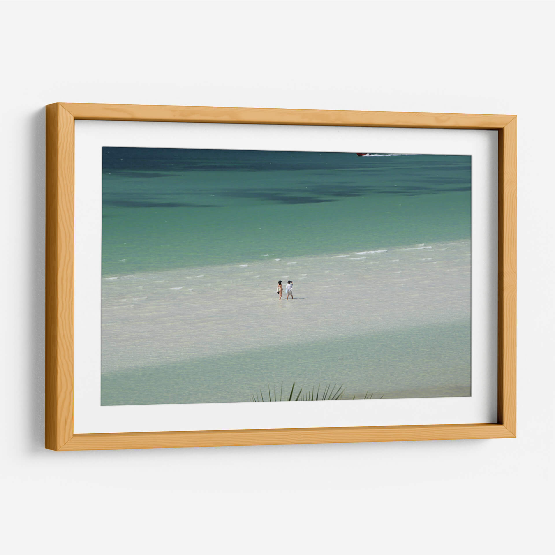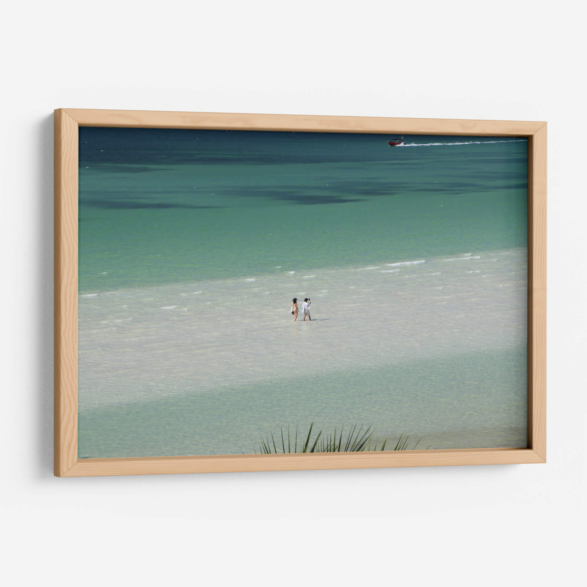 Transporta tu espacio a la serenidad de la costa con "Una Tarde en Holbox", una obra de arte que captura la esencia de un día de verano junto al mar. El cuadro presenta una paleta de colores inspirada en el Caribe, con tonos turquesa y aguamarina que evocan la transparencia del agua cristalina, contrastando con el blanco radiante de la arena mojada. En el centro de la composición, dos figuras humanas se bañan en la orilla, creando un punto focal íntimo y sereno, mientras que en la distancia, una lancha roja surca el océano, añadiendo un toque de dinamismo a la escena. La perspectiva aérea ofrece una vista expansiva que invita a la contemplación y a la evasión. Este cuadro decorativo es ideal para añadir un toque de tranquilidad y sofisticación a cualquier habitación, desde una sala de estar moderna hasta un dormitorio que busca un refugio de paz. Su estilo realista con toques atmosféricos permite que encaje en diversas decoraciones, desde la bohemia hasta la contemporánea. Permite que la brisa marina y la calidez del sol inunden tu hogar con esta evocadora pieza de arte de pared.