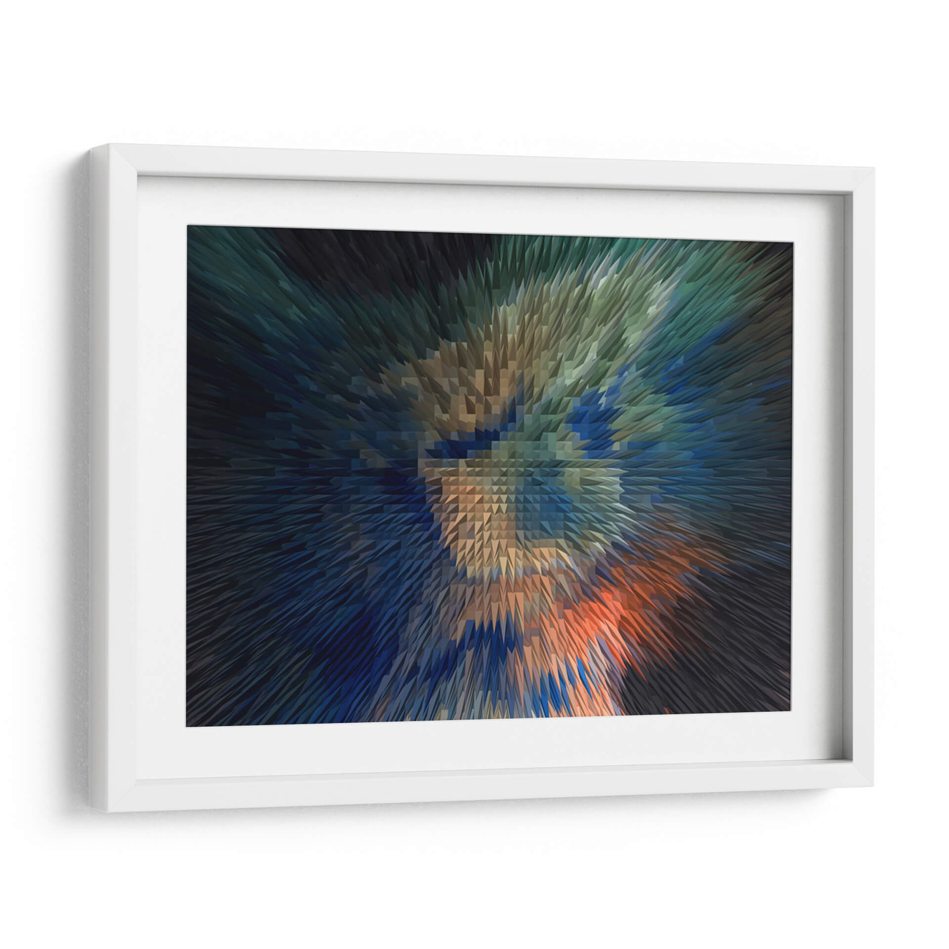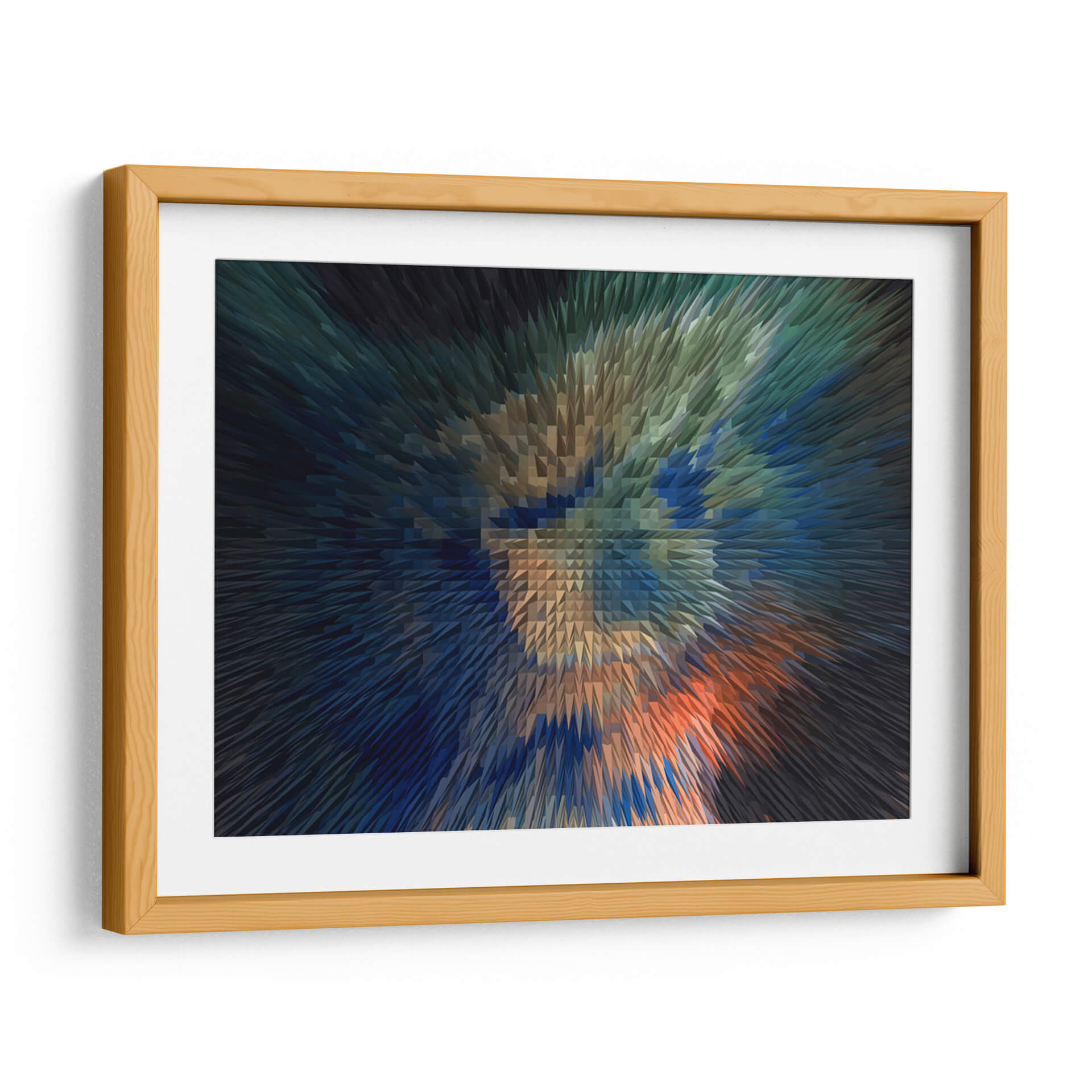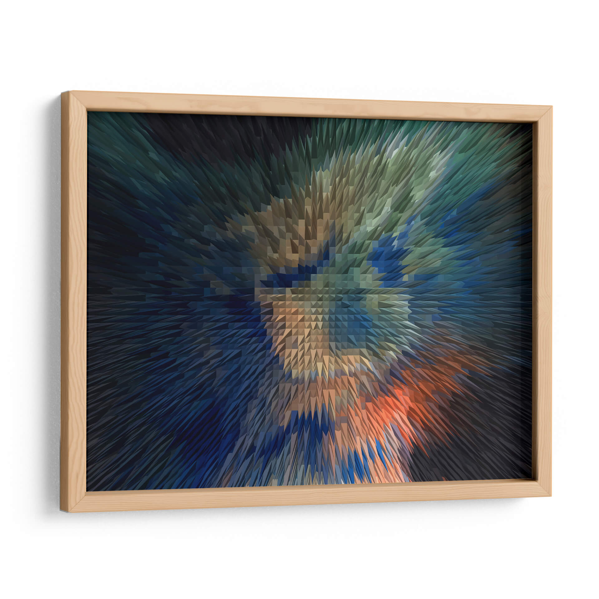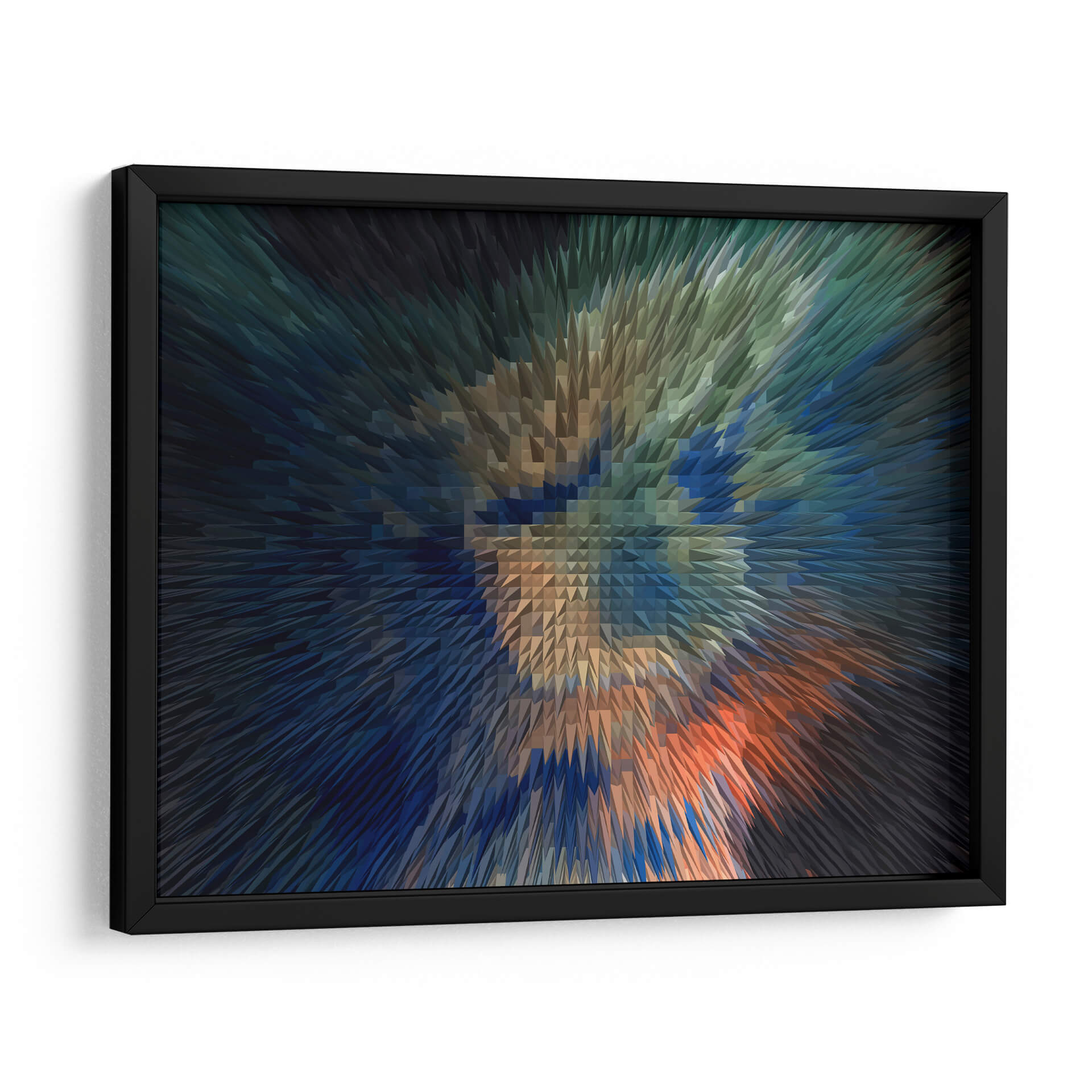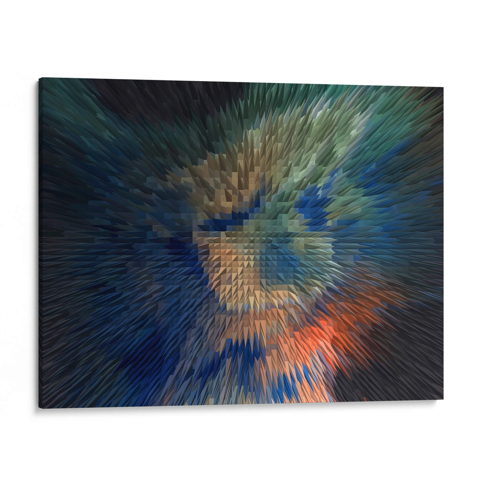 Sumérgete en la enigmática obra "Urano" de Rodrigo Barrera, una pieza que desafía la percepción y transporta al espectador a través de un cosmos de texturas y colores. Este cuadro decorativo abstracto se caracteriza por su profunda paleta de azules intensos, verdes musgo y toques vibrantes de naranja y ocre, creando un contraste dinámico que captura la mirada. La composición se despliega a través de una técnica que genera una sensación de tridimensionalidad, con formas geométricas piramidales que emanan de un punto central, evocando explosiones cósmicas o el nacimiento de nuevas galaxias. "Urano" no es solo una adición estética a tu hogar u oficina, sino una invitación a la contemplación. Su atmósfera misteriosa y energética lo convierte en el punto focal perfecto para salas de estar modernas, estudios creativos o cualquier espacio que busque un toque de audacia y sofisticación contemporánea. Deja que esta obra abstracta impulse la conversación y añada profundidad a tu decoración mural.