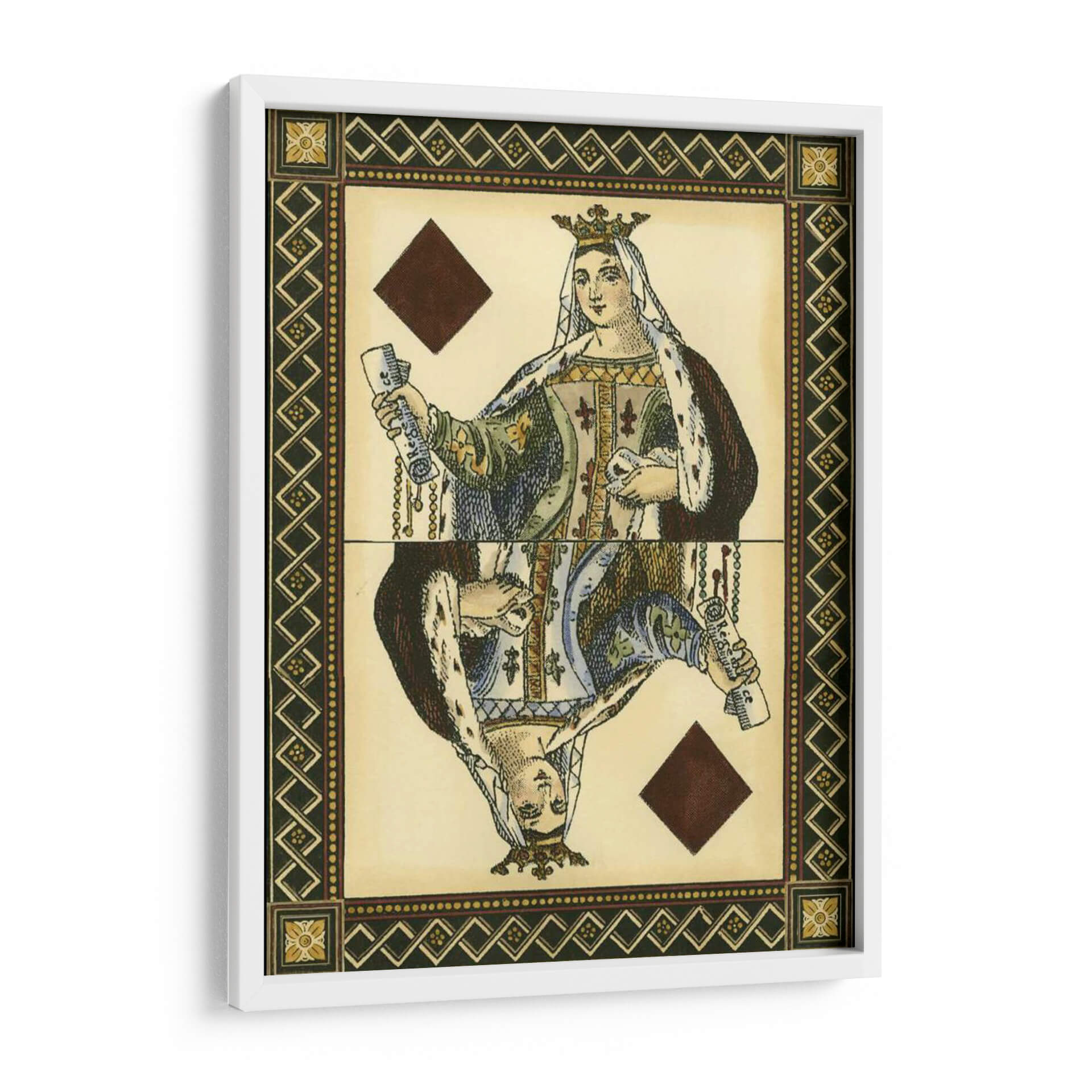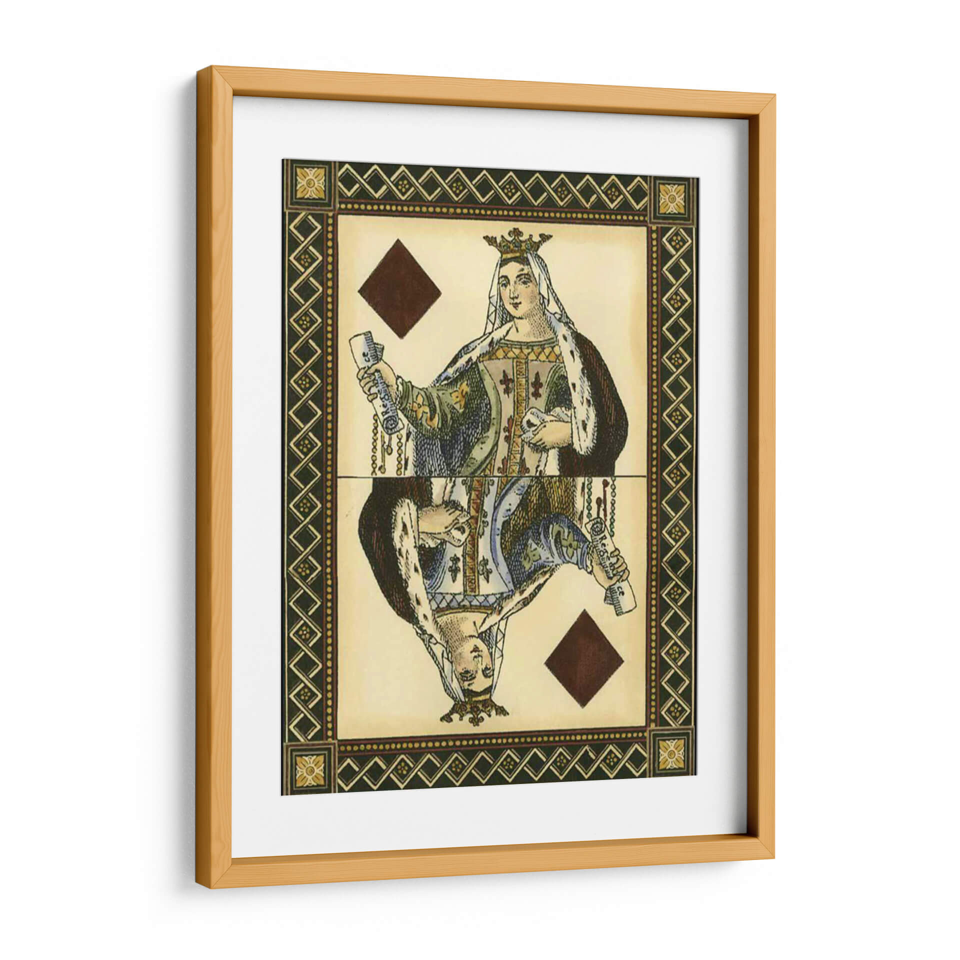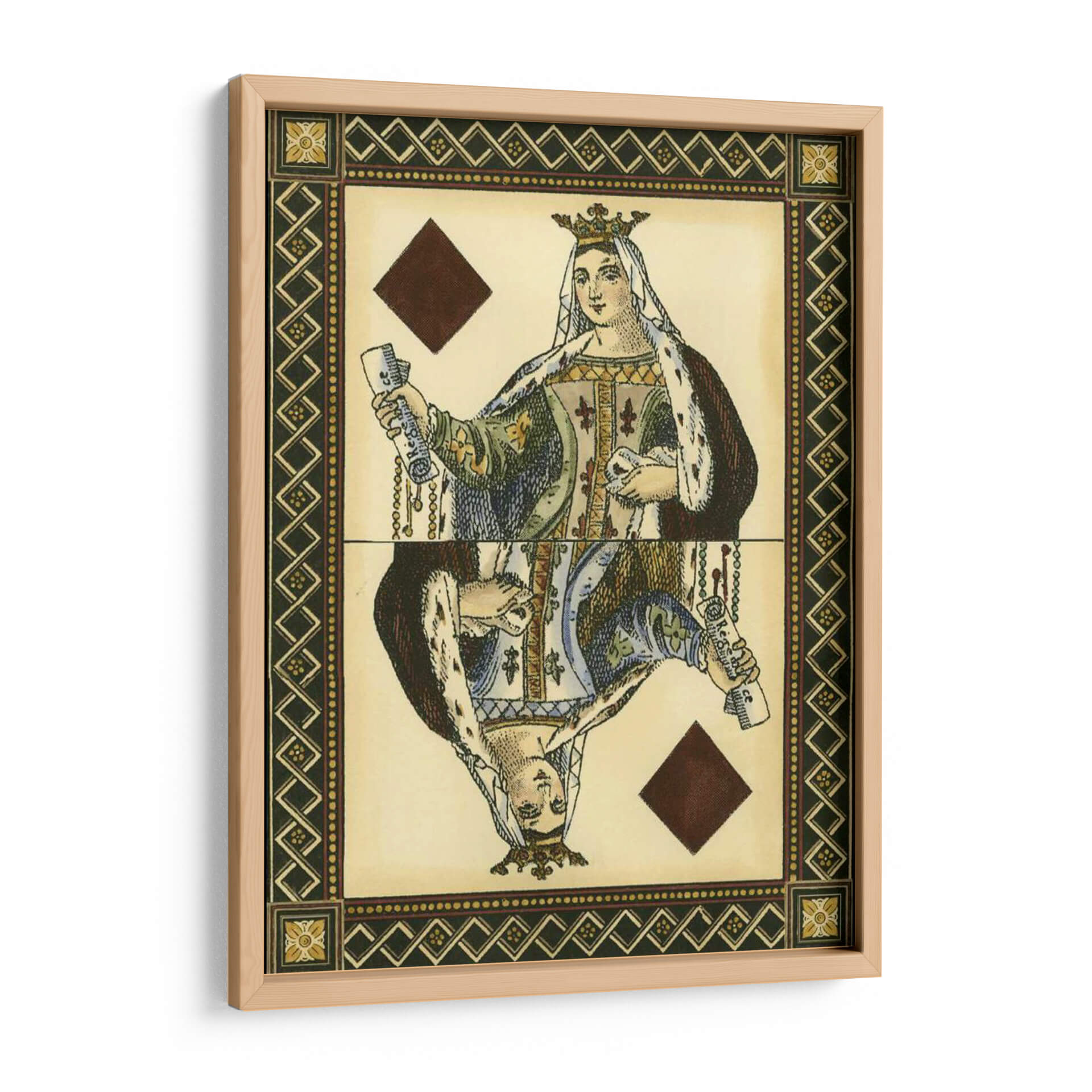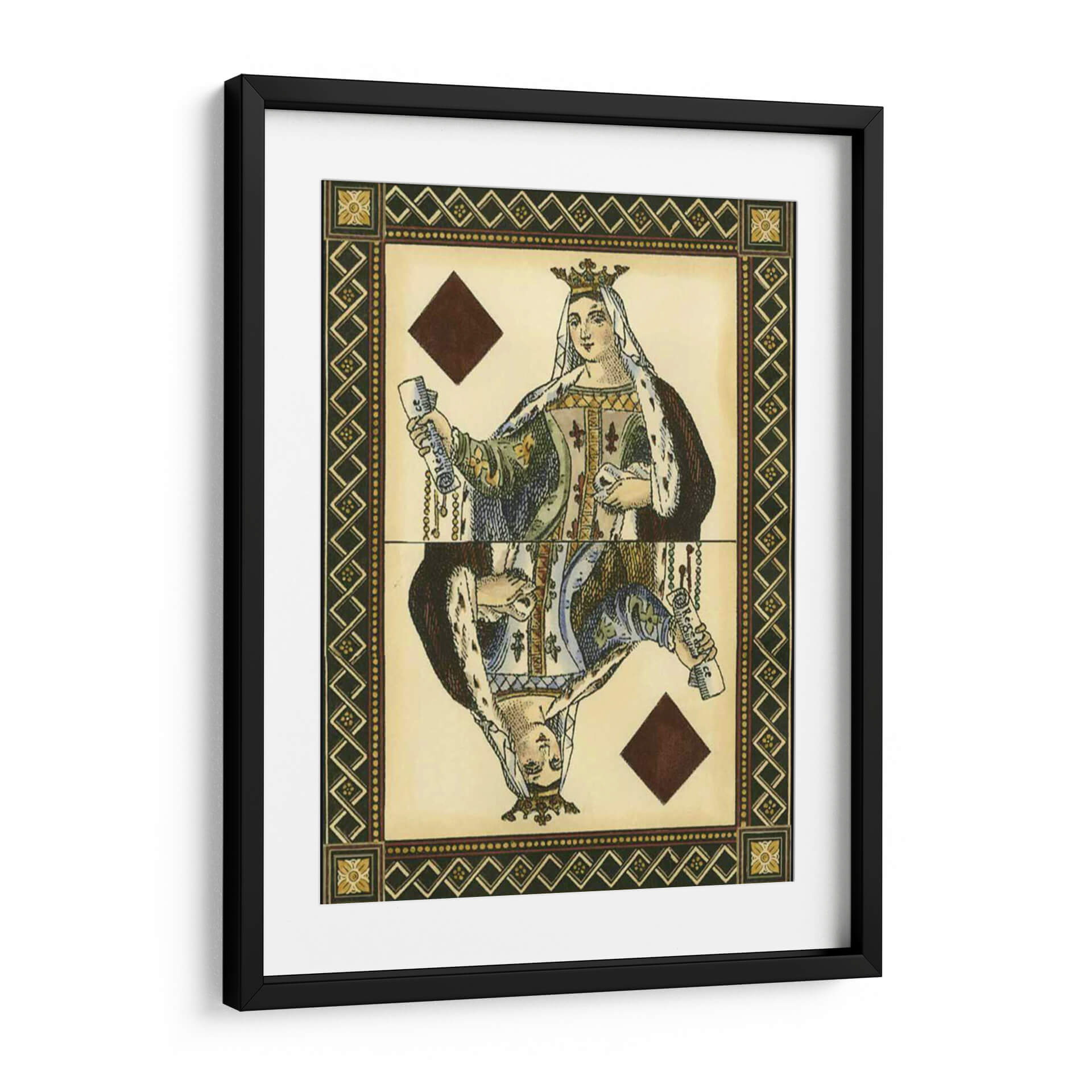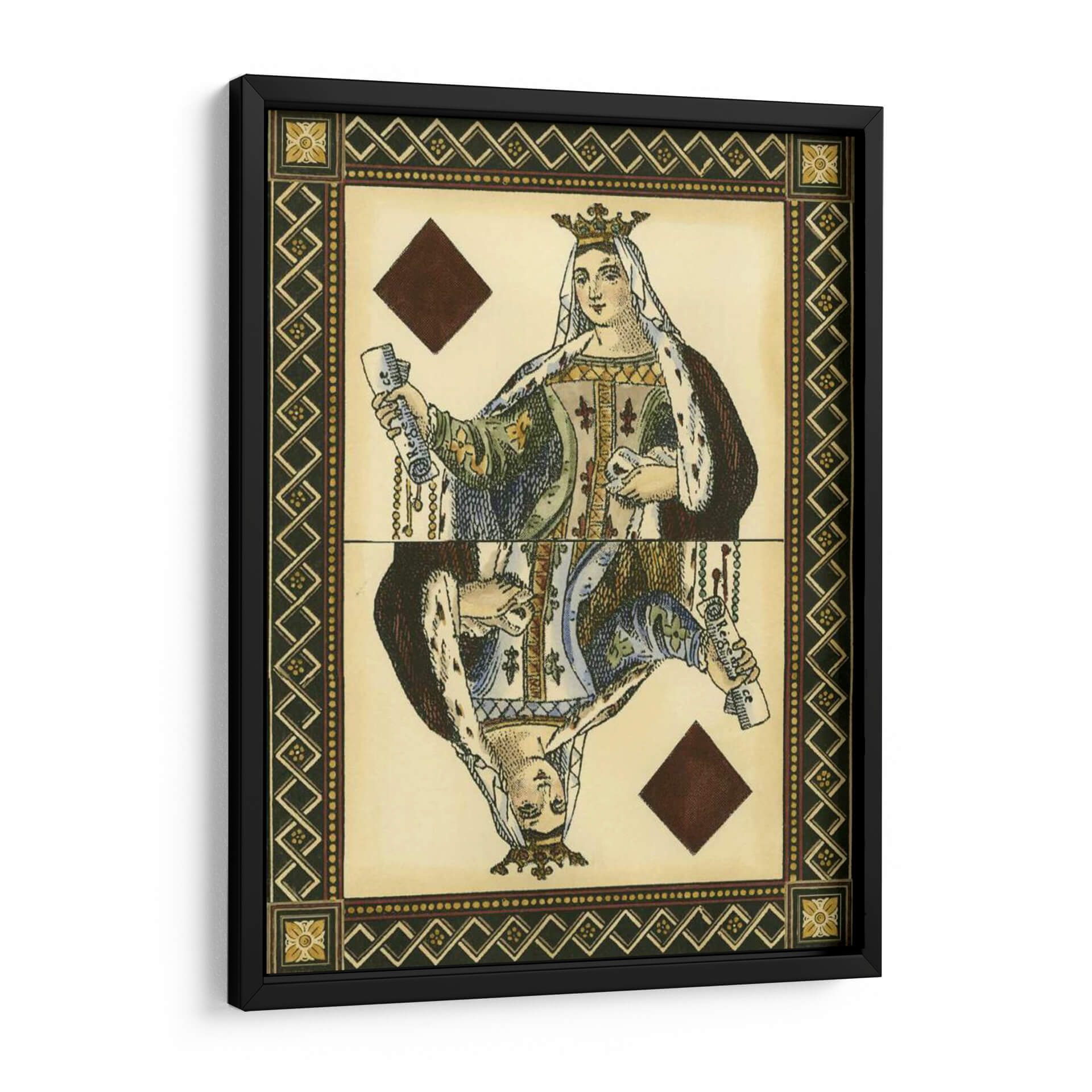 Adéntrate en el fascinante mundo del juego y la realeza con "Vamos A Jugar Cartas IV", una obra de arte que captura la esencia de la Reina de Diamantes con un toque histórico y elegante. Este cuadro decorativo presenta una interpretación detallada de la figura real, coronada y ataviada con ropajes suntuosos que evocan una época de esplendor. Los colores predominantes, como los tonos tierra, verdes y azules sutiles, crean una atmósfera sofisticada y atemporal. La composición, dividida para mostrar a la reina en dos orientaciones, añade un dinamismo visual intrigante, mientras que el diamante de la suerte se presenta como un símbolo central de poder y fortuna. La intrincada ornamentación del marco, con patrones geométricos y florales, enmarca la figura principal, aportando profundidad y detalle. Esta pieza es ideal para quienes buscan infundir un aire de distinción y carácter en sus espacios, ya sea en una sala de estar, un estudio o una biblioteca. Su estilo clásico con un toque de fantasía la convierte en un punto focal perfecto para añadir personalidad a cualquier ambiente, invitando a la contemplación y a la conversación. Un cuadro decorativo que evoca estrategia, elegancia y la intriga de un juego bien jugado.