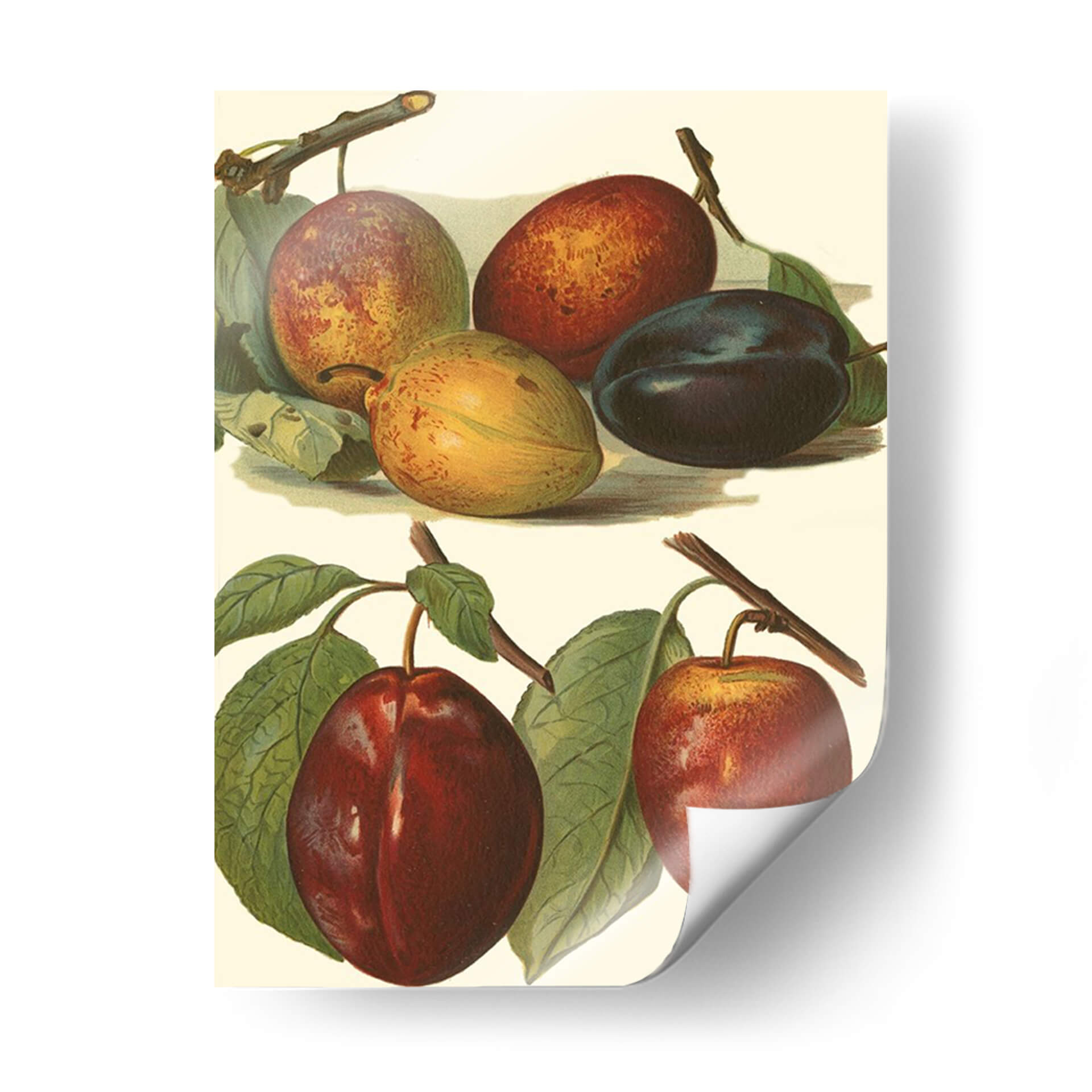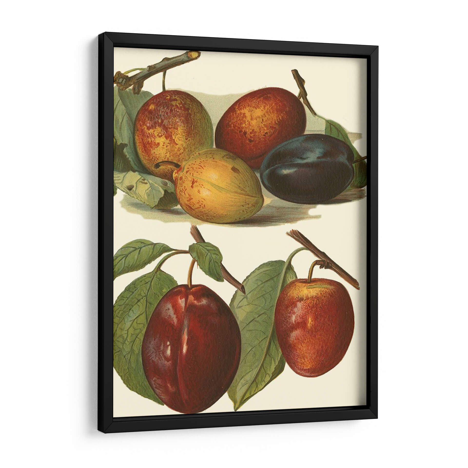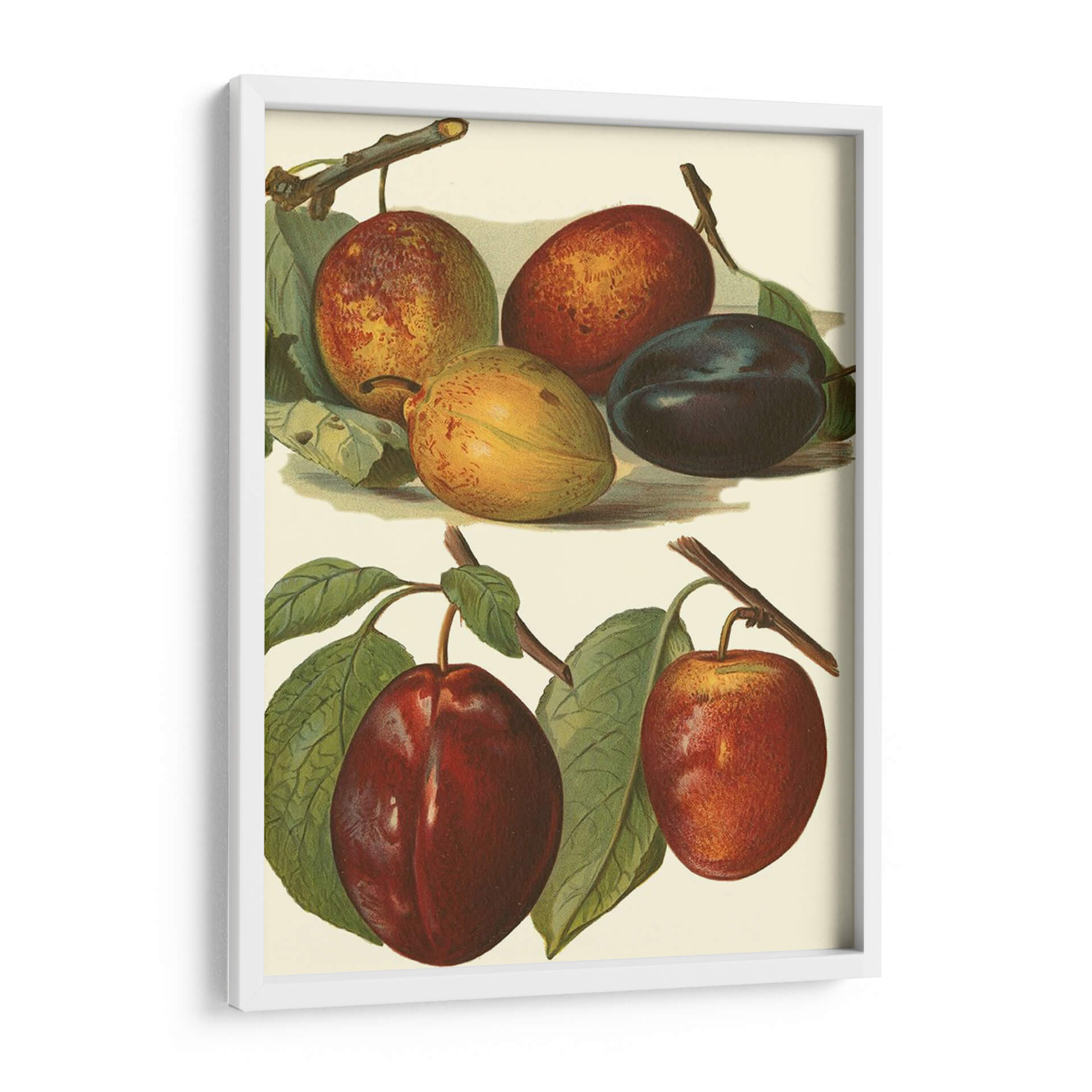 Este exquisito cuadro decorativo, titulado 'Variedades De Ciruela I' y creado por el artista John Wright, captura la belleza botánica de las ciruelas en diversas etapas de madurez y color. La obra presenta una composición detallada y delicada, donde destacan las diferentes tonalidades de las ciruelas: desde el verde amarillento de las inmaduras hasta los ricos rojos y púrpuras profundos de las maduras. Las hojas verdes vibrantes y las ramas sutiles añaden un toque de realismo y frescura a la escena. La paleta de colores, centrada en tonos tierra, rojos intensos y púrpuras, crea una atmósfera cálida y natural, evocando la abundancia y la riqueza de la naturaleza. Con un estilo que recuerda a las ilustraciones botánicas clásicas, este cuadro es perfecto para añadir un toque de elegancia rústica y sofisticación a cocinas, comedores o cualquier espacio que busque una conexión con la naturaleza. Su detallada representación lo convierte en un punto focal intrigante y una pieza que invita a la contemplación, ideal para quienes aprecian el arte con motivos frutales y un acabado de alta calidad.