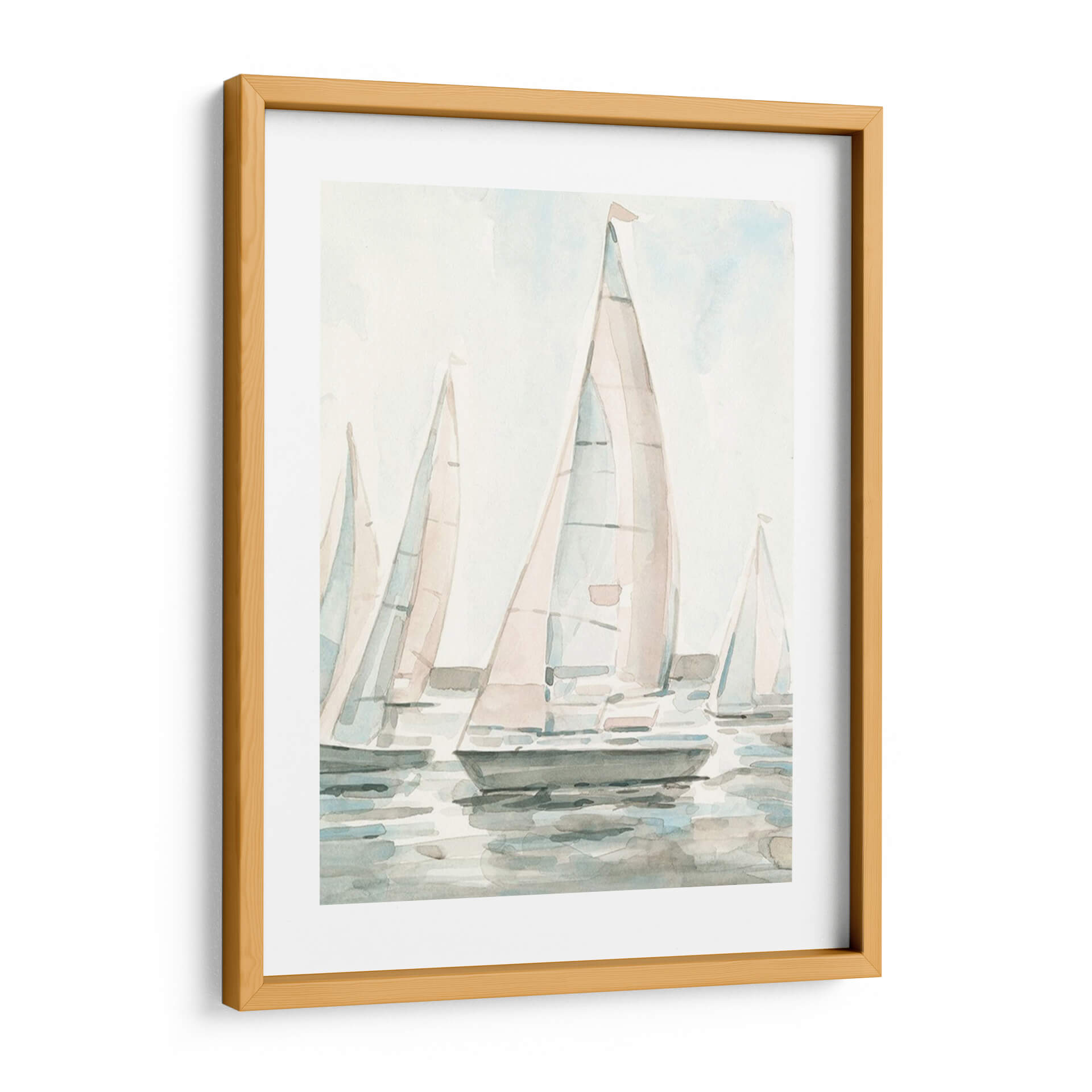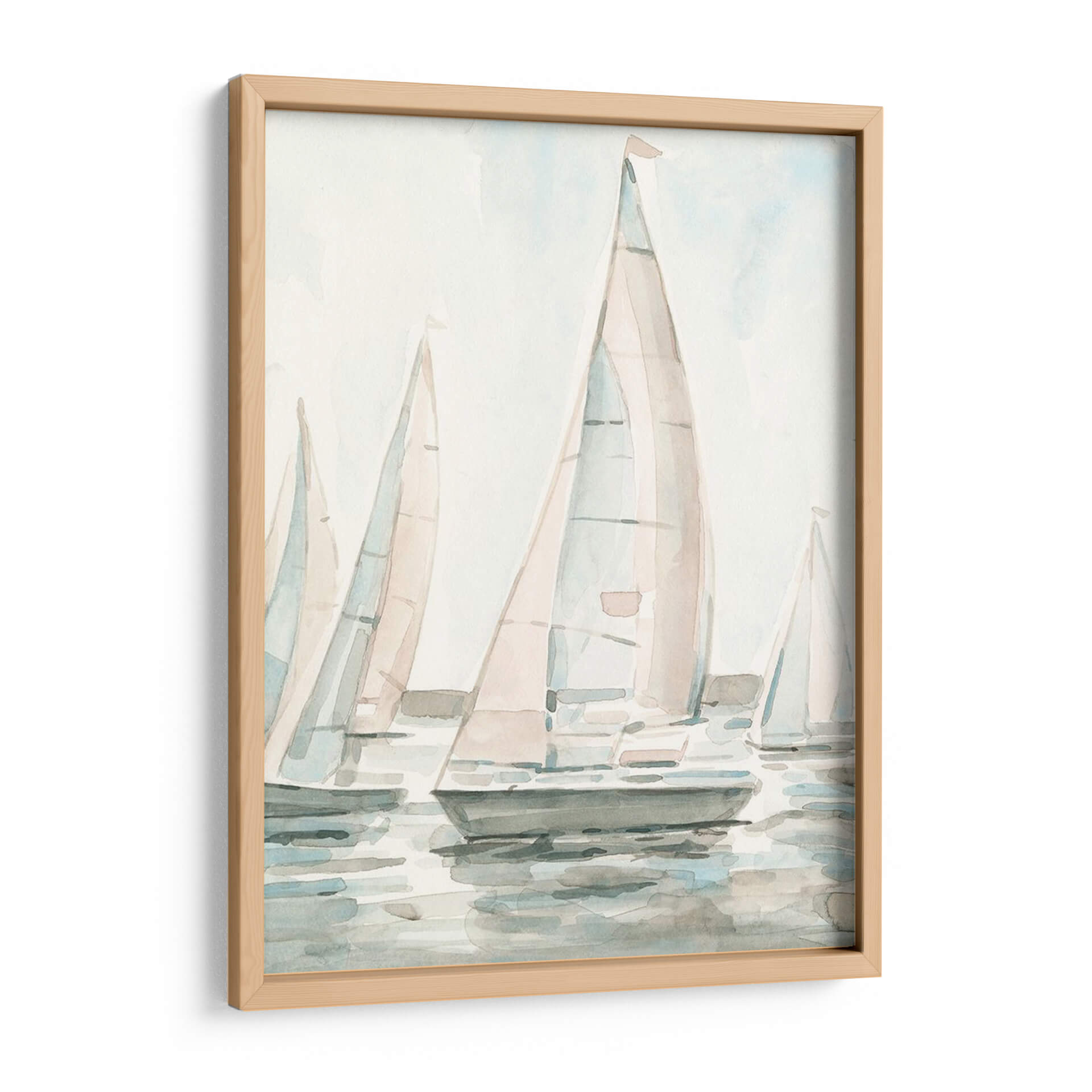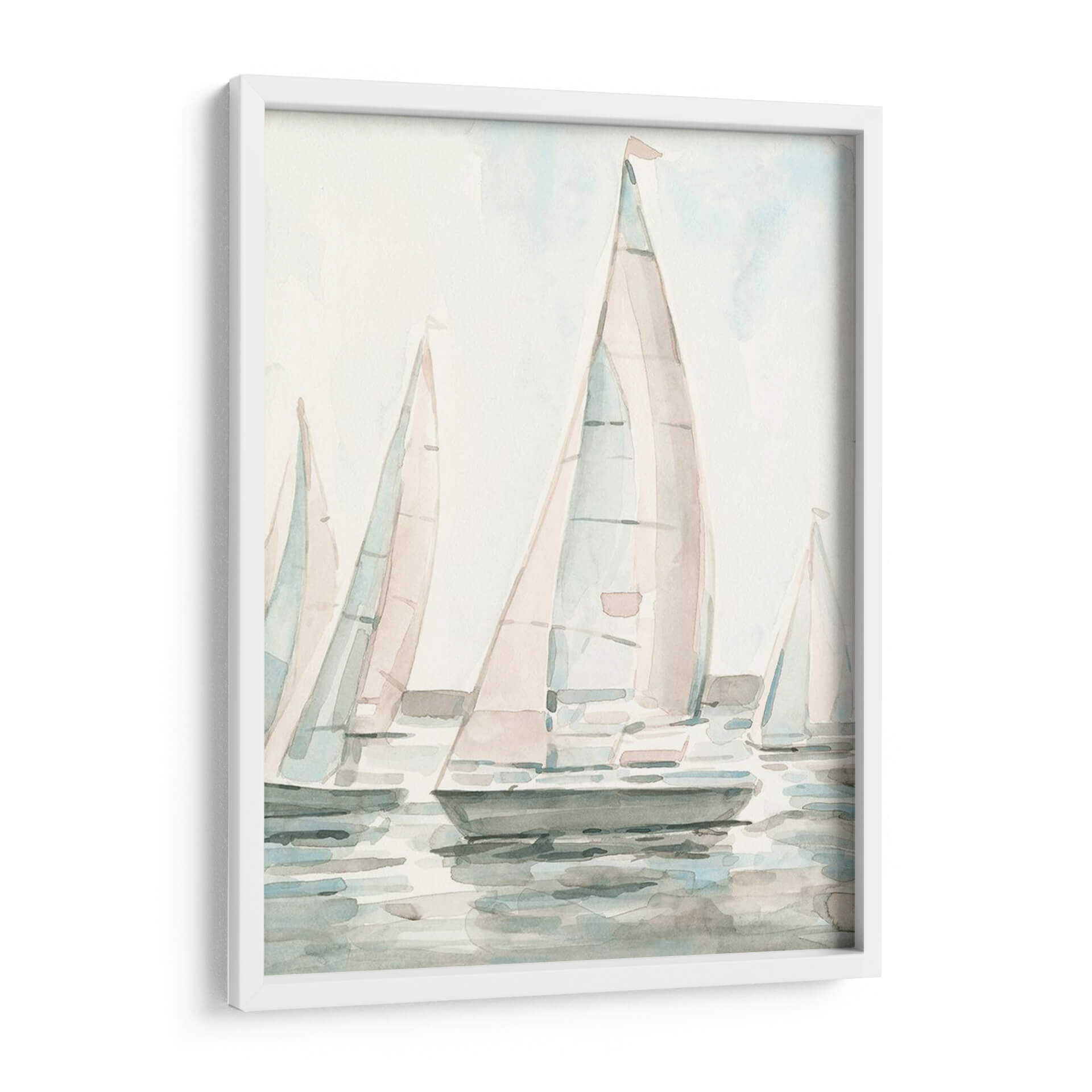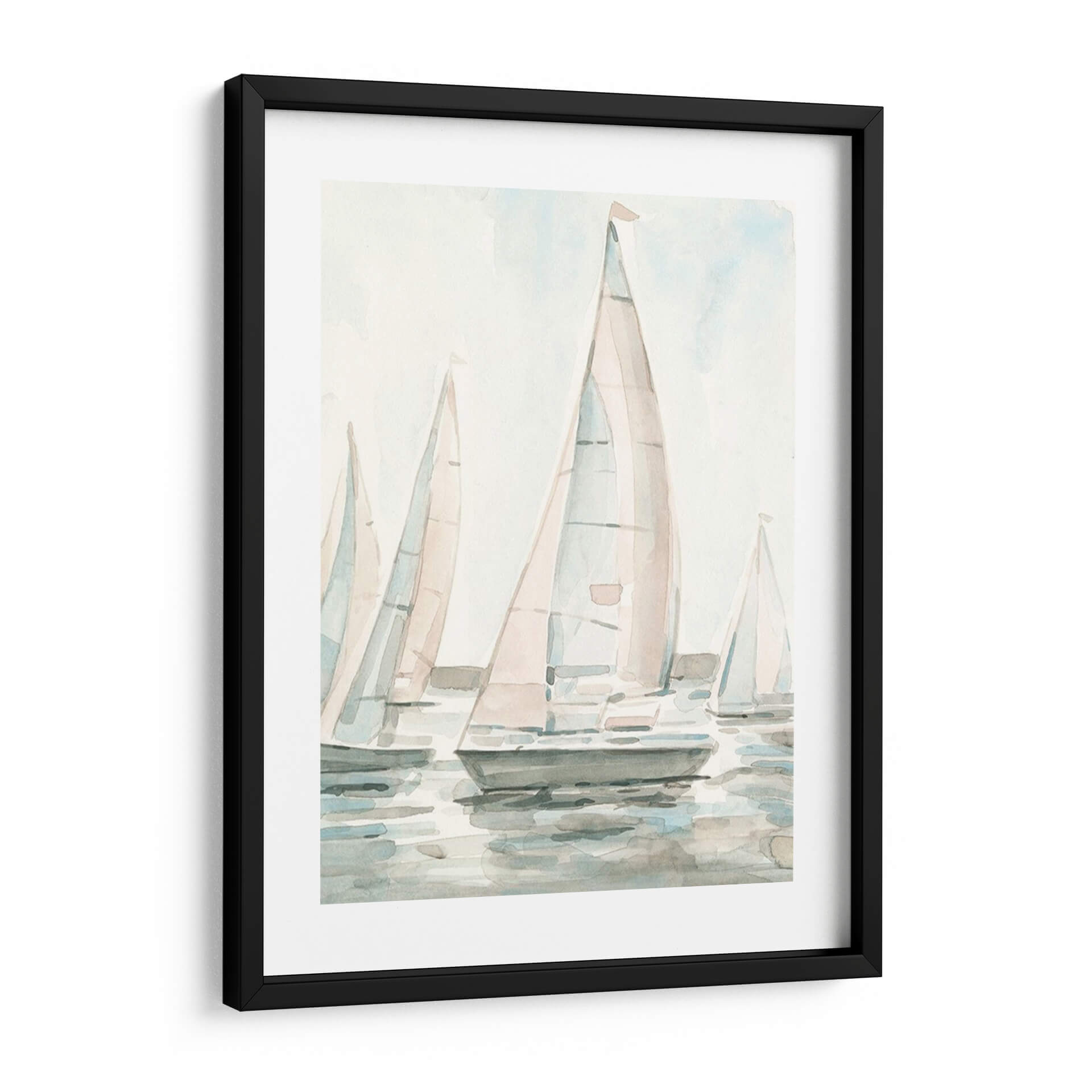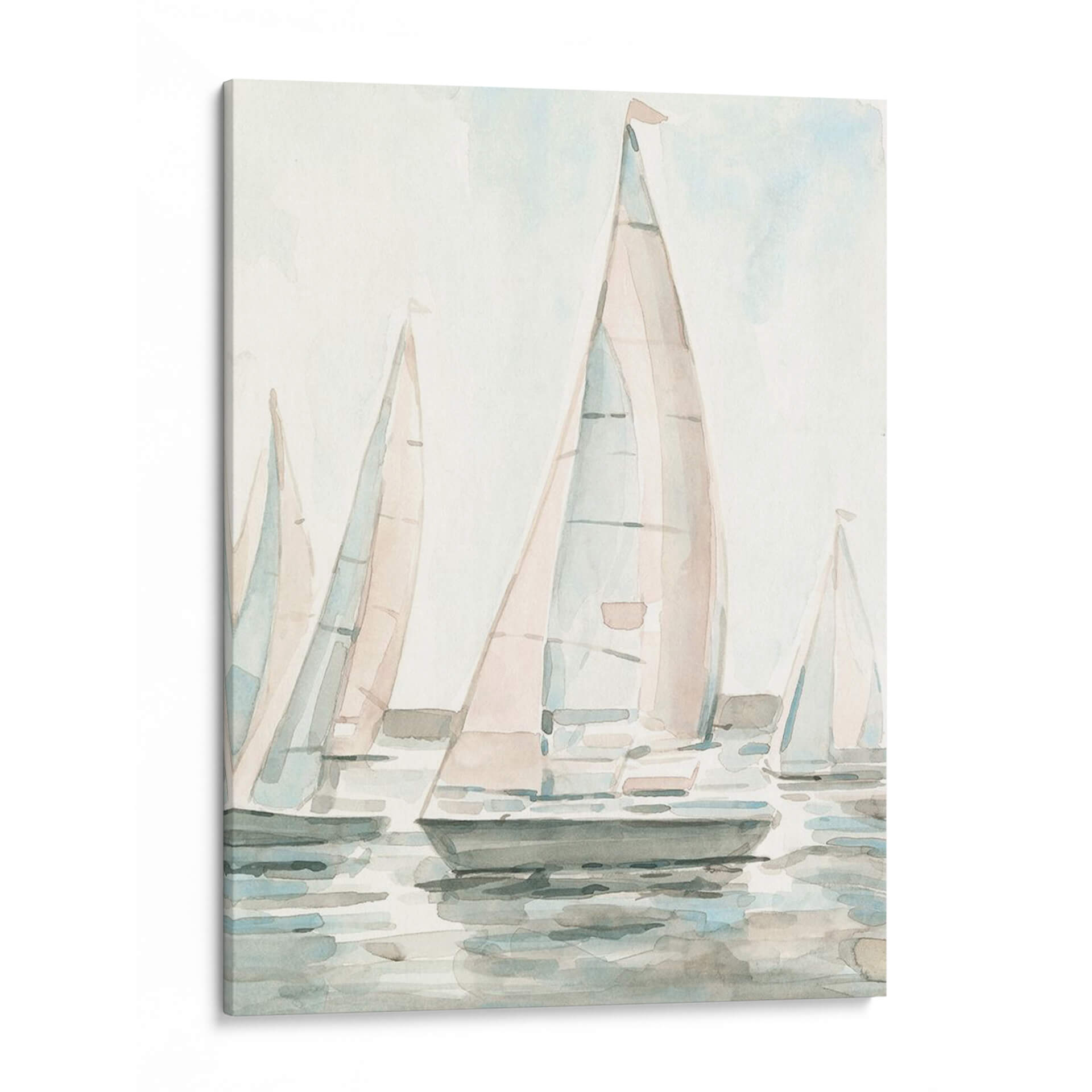 Sumérgete en la serenidad del mar con "Vela Suave I", una obra de arte de Emma Scarvey que captura la delicadeza de las velas hinchándose al viento. Esta pieza, ejecutada con una técnica que evoca la ligereza y fluidez de la acuarela, presenta un conjunto de veleros navegando en aguas tranquilas. La paleta de colores es suave y armoniosa, dominada por tonos pastel de rosa pálido, azul cielo y grises sutiles, creando una atmósfera de paz y relajación. La composición, con las velas como protagonistas, genera un ritmo visual que invita a la contemplación. "Vela Suave I" es ideal para añadir un toque de calma y elegancia costera a cualquier espacio, ya sea en un dormitorio, sala de estar o incluso una oficina, aportando una sensación de escape y tranquilidad. Este cuadro decorativo contemporáneo es perfecto para quienes buscan infundir serenidad en su hogar, conectando con la belleza simple y efímera de un día de navegación. Descubre la magia de las velas y la paz del océano en tu pared.