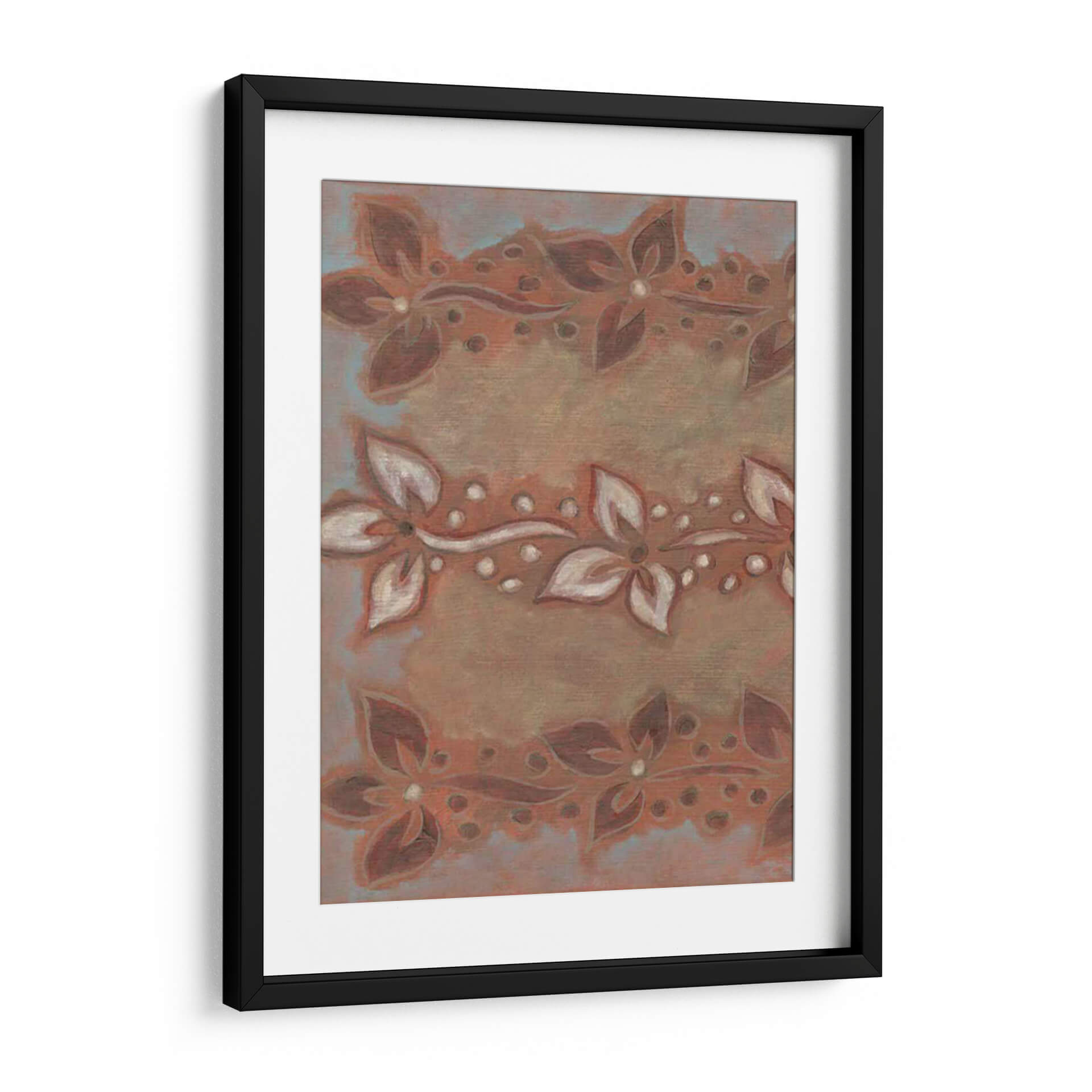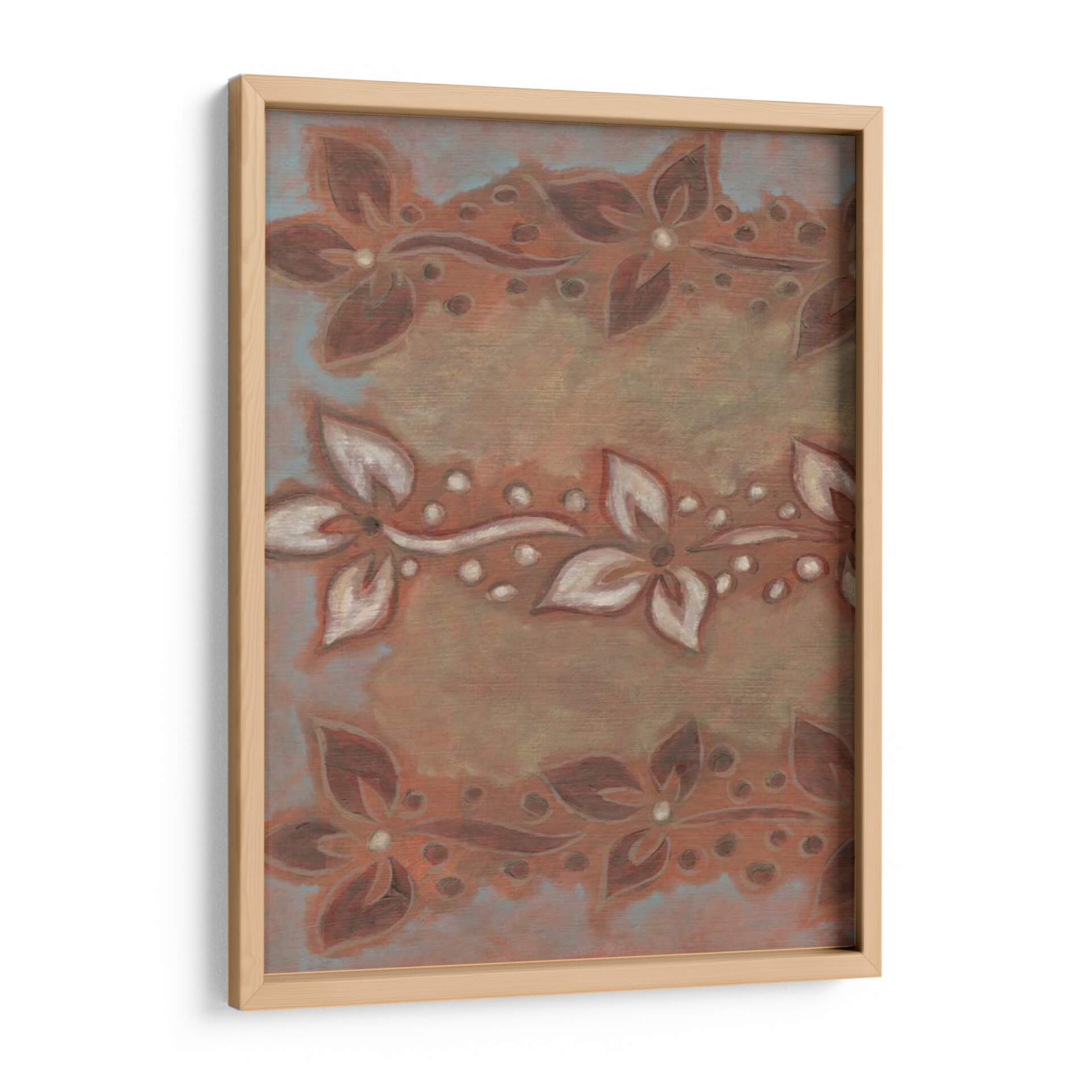 Sumérgete en la delicadeza de "Vides Florales I", una obra de arte contemporáneo que evoca la belleza sutil de la naturaleza. El artista Karen Deans nos presenta un diseño floral estilizado, donde las vides se entrelazan con delicadeza sobre un fondo texturizado en tonos tierra y azulados. La paleta de colores, dominada por marrones cálidos, terracotas y toques de blanco y gris pálido, crea una atmósfera serena y acogedora, perfecta para añadir un toque de elegancia natural a tu hogar u oficina. La composición, organizada en bandas horizontales, presenta patrones florales repetitivos que transmiten una sensación de armonía y orden. Cada flor, dibujada con trazos suaves y un aire casi etéreo, parece florecer en un lienzo de tranquilidad. Este cuadro decorativo es ideal para espacios que buscan un equilibrio entre lo orgánico y lo moderno, aportando una dosis de calma y sofisticación. Imagina "Vides Florales I" en tu sala de estar, añadiendo un punto de interés visual sin abrumar, o en tu dormitorio, promoviendo un ambiente de paz y relajación. Su estilo versátil se adapta a diversas decoraciones, desde la bohemia hasta la minimalista, convirtiéndose en una pieza clave para quienes aprecian el arte sutil y evocador.
