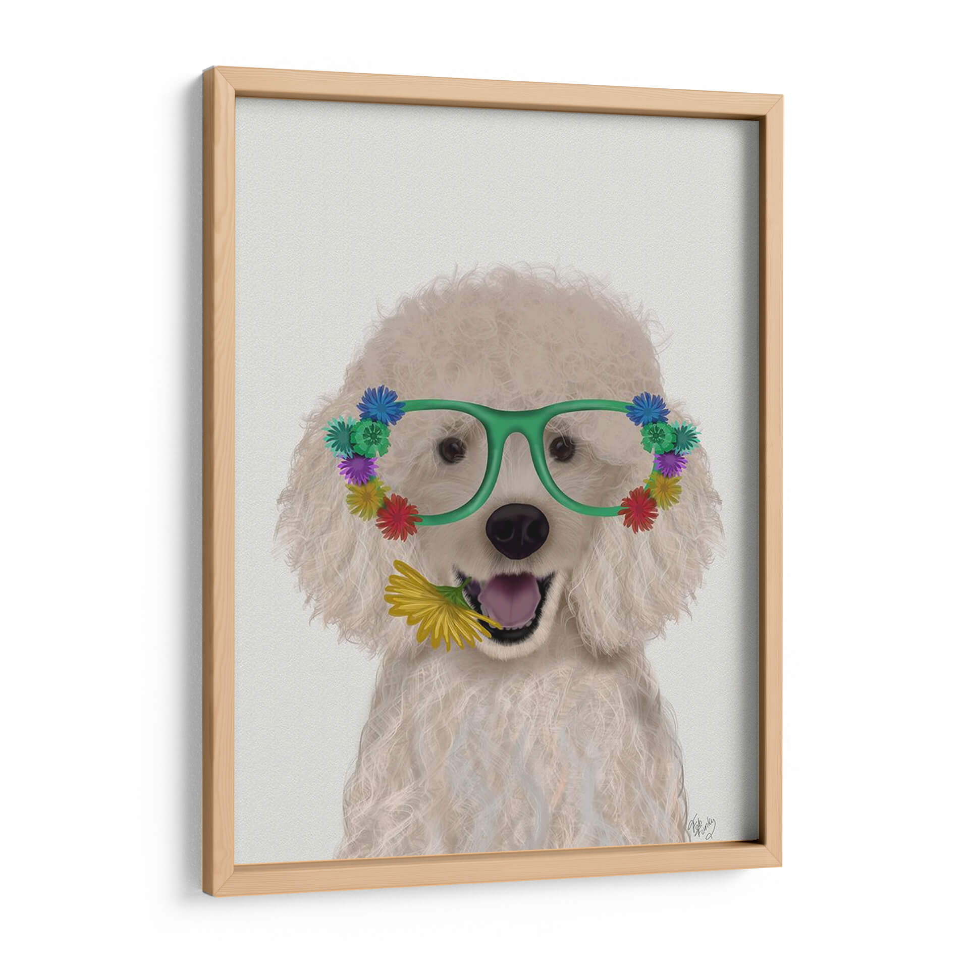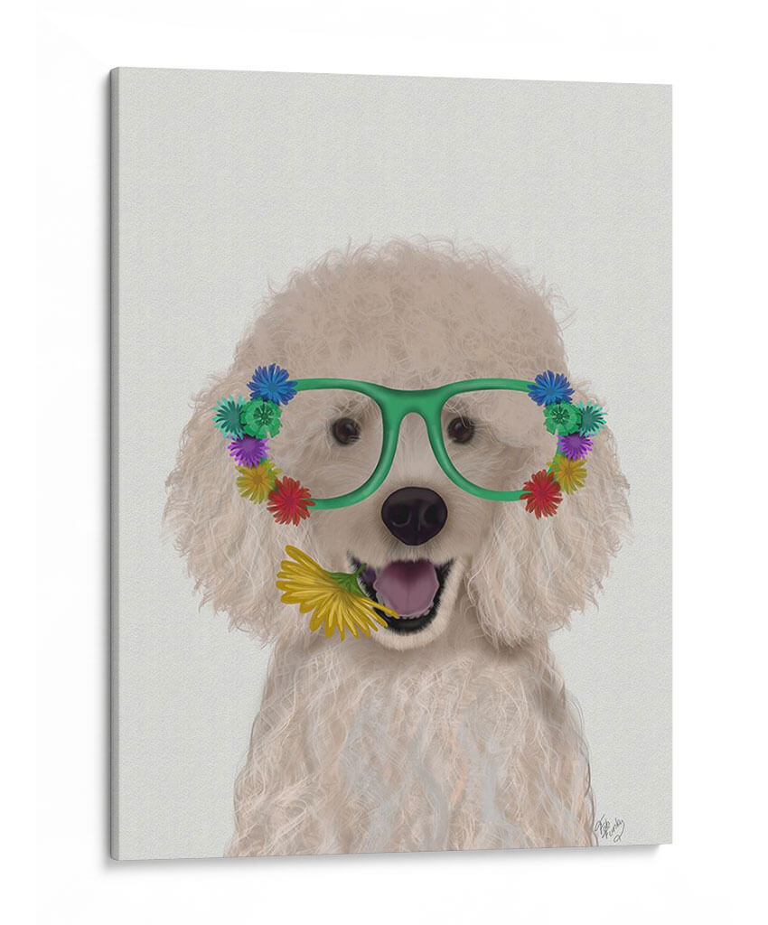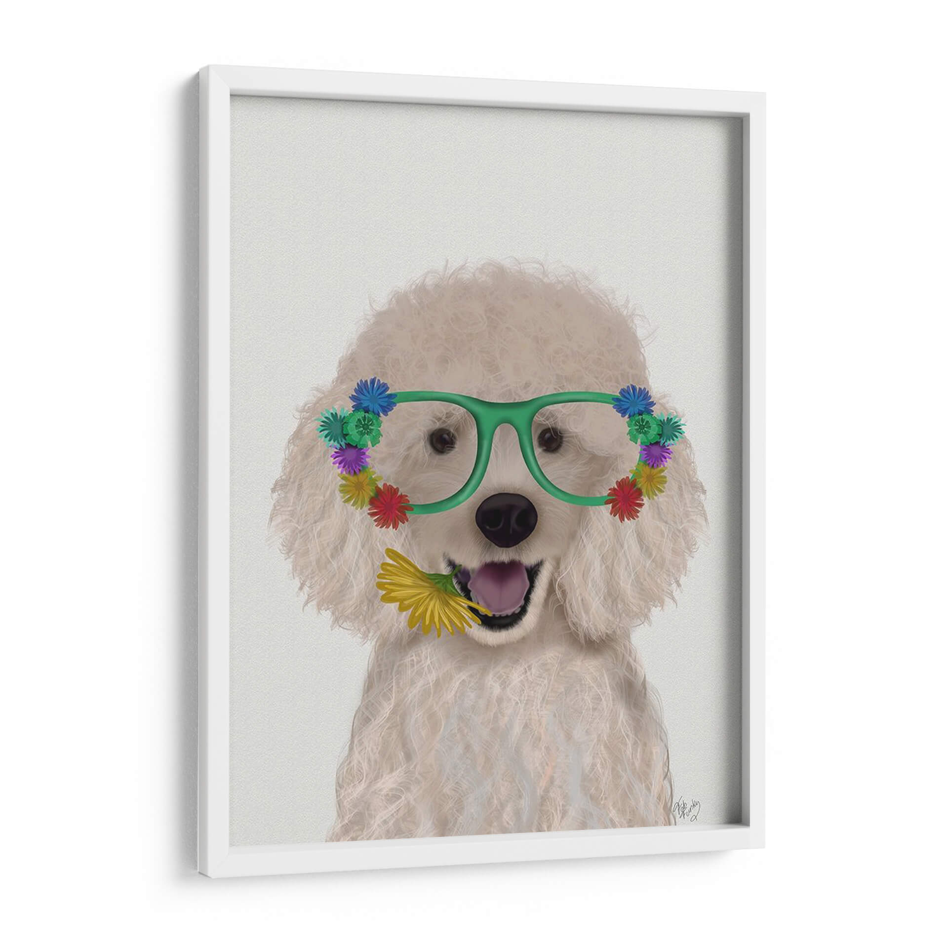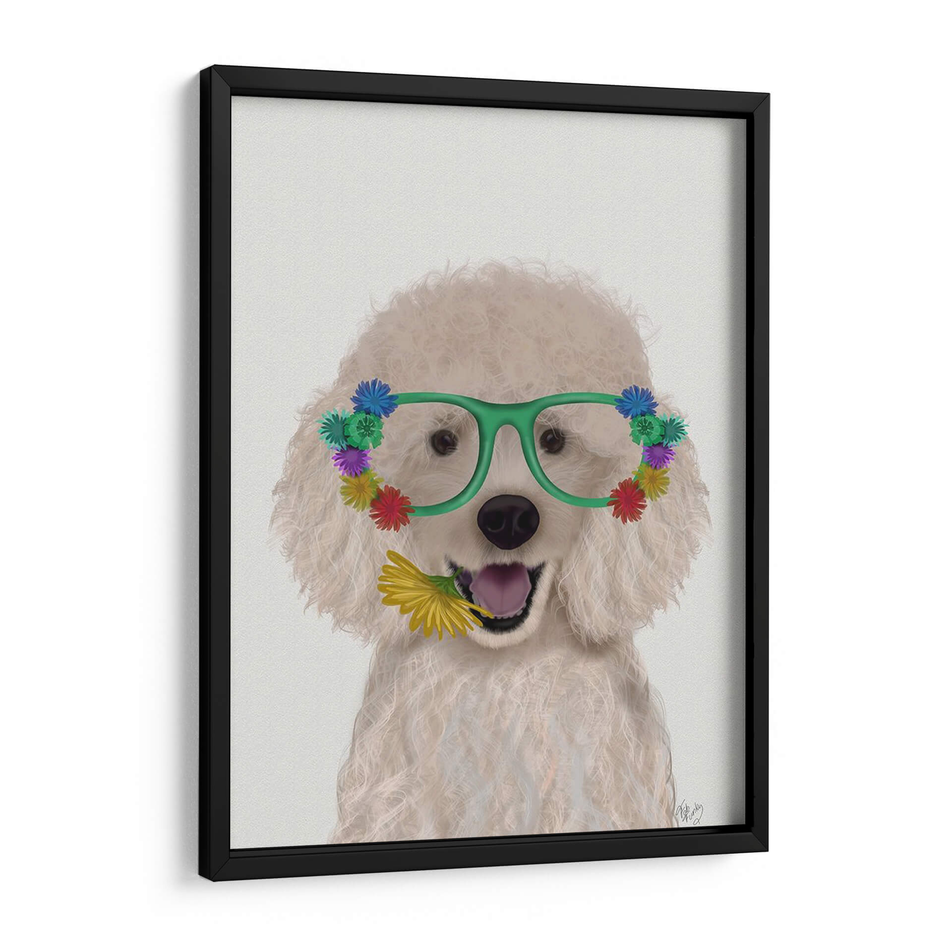 Captura la esencia juguetona y encantadora de "Vidrios De Caniche, Blanco Y Flor" de Fab Funky con este cuadro decorativo. La obra presenta un adorable caniche blanco, adornado con unas gafas de sol verdes y decoradas con pequeñas flores de múltiples colores que alegran la vista. Una flor amarilla cuelga delicadamente de su hocico, añadiendo un toque de picardía y vitalidad a la composición. Los colores suaves del fondo, un lienzo gris claro texturizado, realzan la figura central y la hacen destacar, creando una atmósfera de alegría y dulzura. El estilo detallado pero con un toque caricaturesco, propio del artista Fab Funky, lo convierte en una pieza única que aporta personalidad y un aire fresco a cualquier espacio. Ideal para amantes de los animales, este cuadro es perfecto para dar un toque de humor y color a salones, dormitorios infantiles, o incluso oficinas que busquen un ambiente más amigable y optimista. Su estética divertida y su ejecución cuidada lo posicionan como una excelente opción de arte decorativo contemporáneo, capaz de generar conversaciones y sonrisas. Añade un toque de fantasía y calidez a tu hogar con esta obra que celebra la inocencia y la belleza de nuestras mascotas.