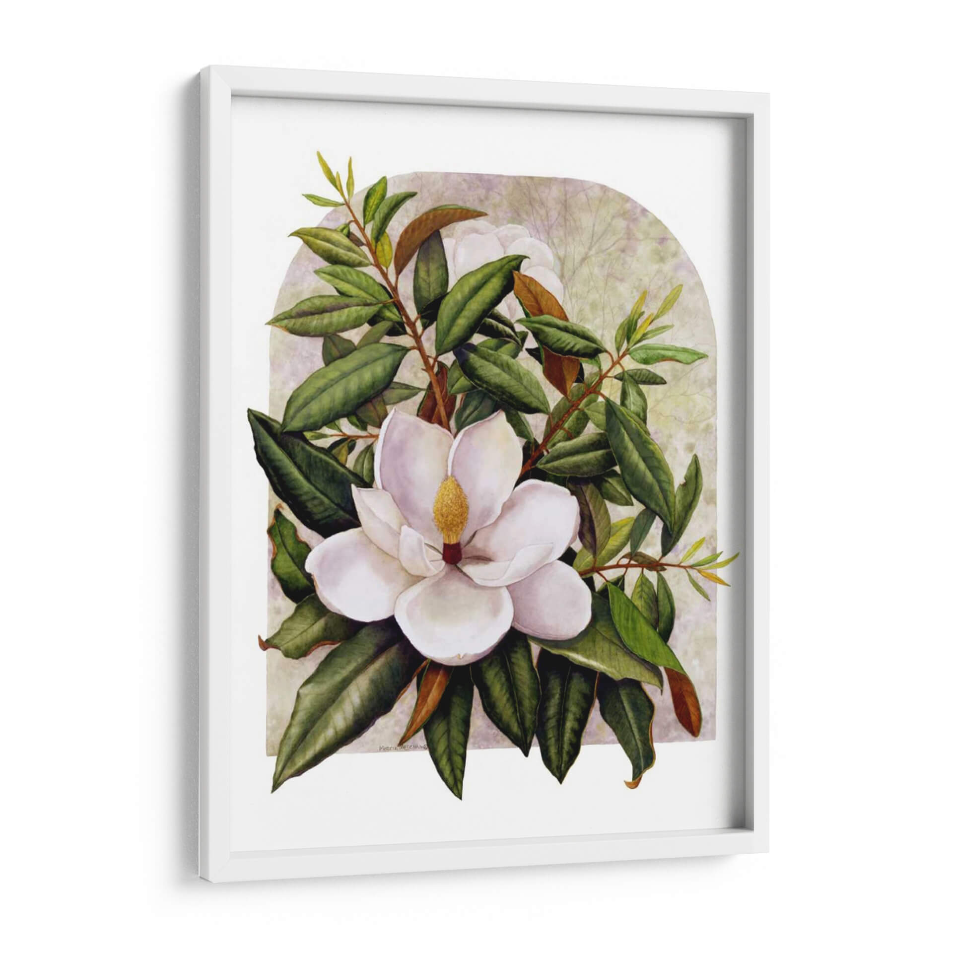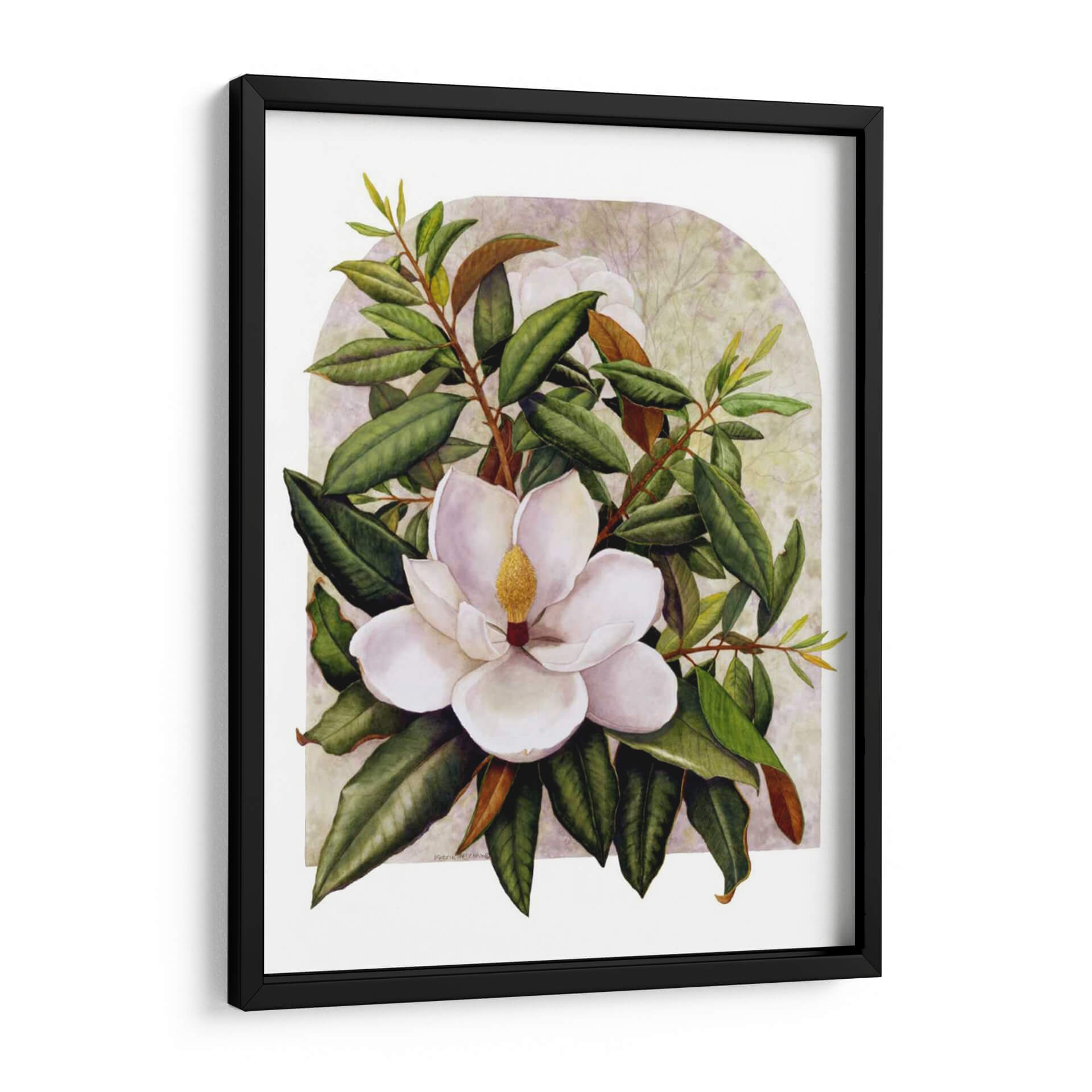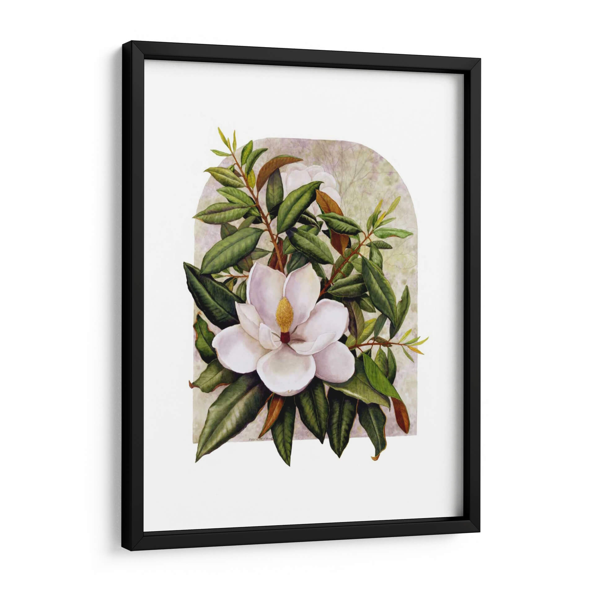 Embellece tu espacio con la delicadeza atemporal de "Viñeta Magnolia", una obra de arte que captura la esencia de una flor icónica con una técnica exquisita. La artista Marcia Matcham nos presenta un primer plano detallado de una magnolio en plena floración, rodeada de exuberantes hojas verdes y sutiles ramas. La paleta de colores se centra en blancos puros para el pétalo principal, contrastando elegantemente con los verdes profundos del follaje y toques de marrón terroso en algunas hojas, creando una atmósfera de serenidad y naturaleza pura. El estilo realista con un toque etéreo, realzado por un fondo texturizado en tonos pastel y un arco suave, aporta profundidad y sofisticación. Este cuadro decorativo es perfecto para añadir un toque de elegancia botánica a cualquier habitación, desde la sala de estar hasta un dormitorio o incluso una oficina, evocando calma y la belleza efímera de la naturaleza. Su composición centrada y detallada lo convierte en un punto focal exquisito, ideal para quienes buscan arte inspirador y tranquilizador que eleve su decoración. "Viñeta Magnolia" no es solo una imagen, es una ventana a la serenidad y la sofisticación natural, ideal para añadir un toque de la naturaleza a tu hogar.