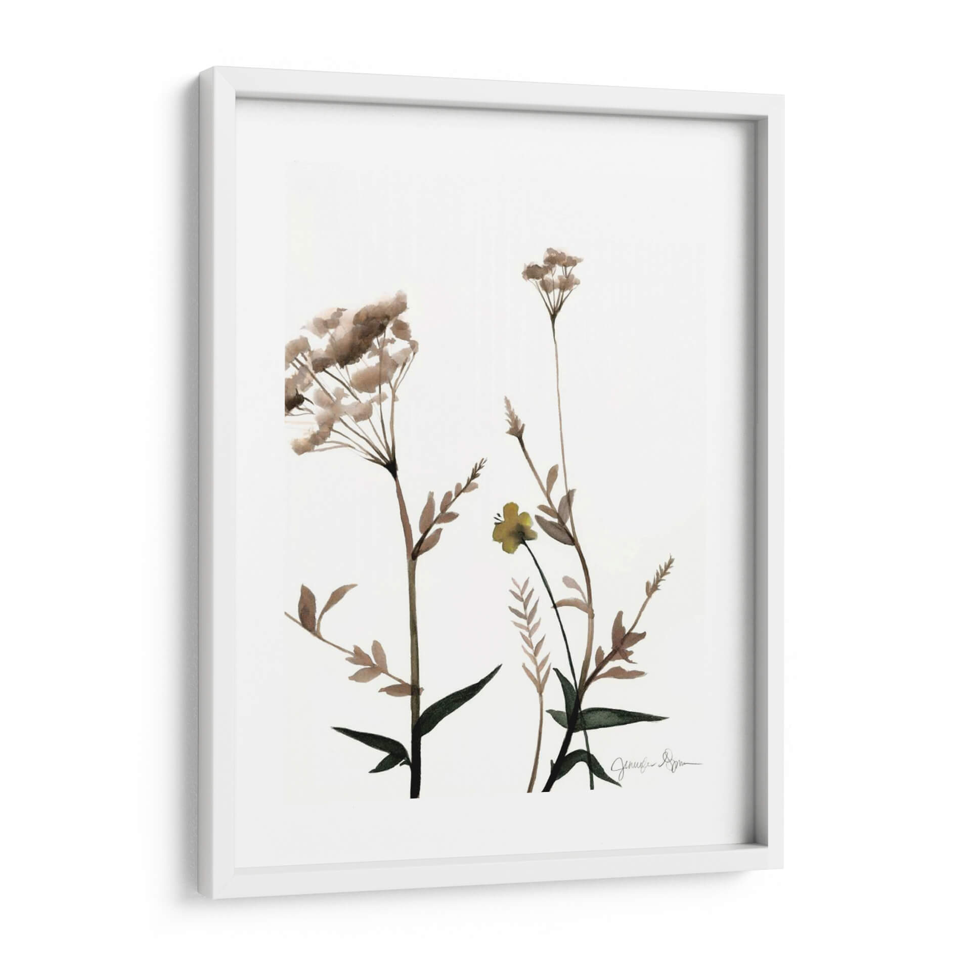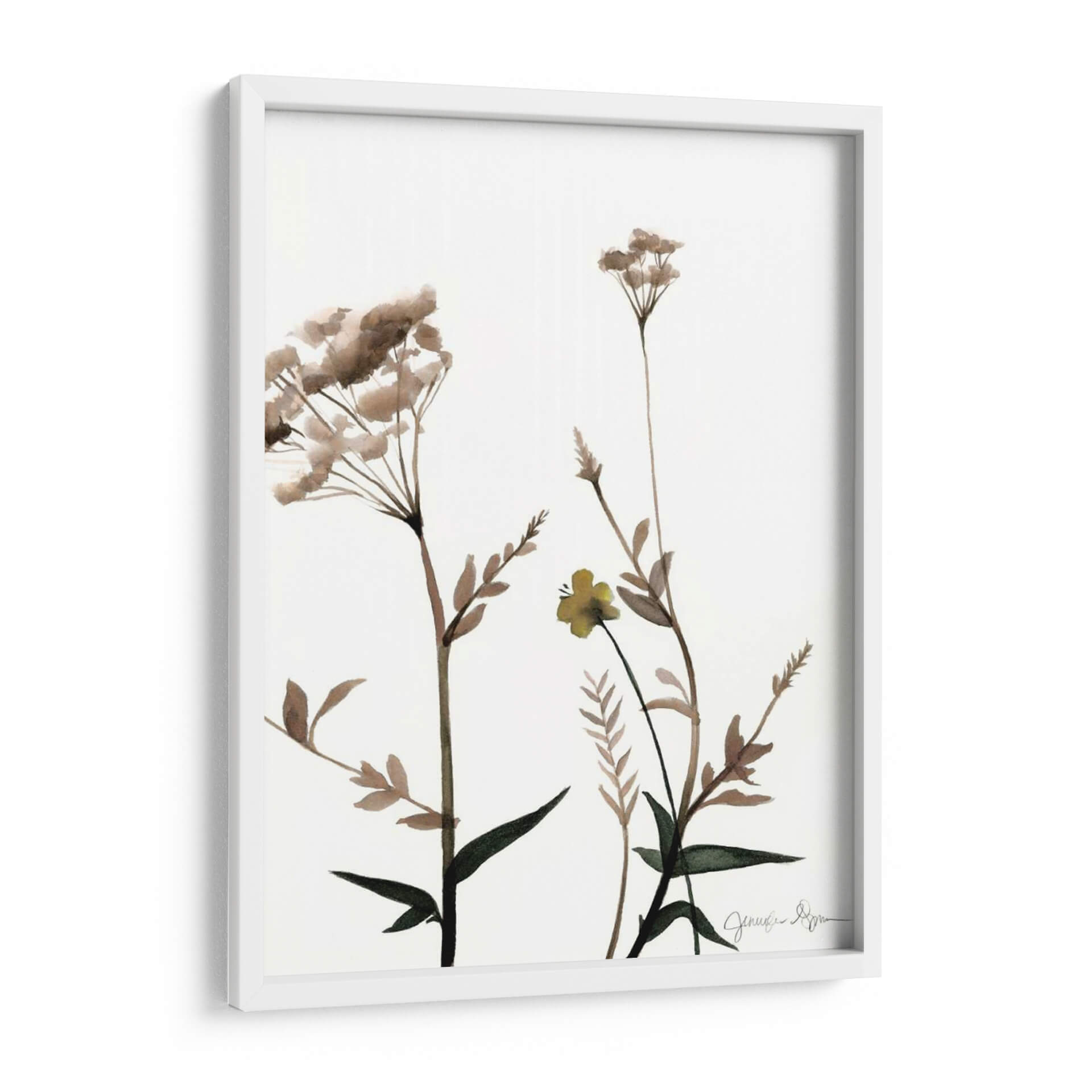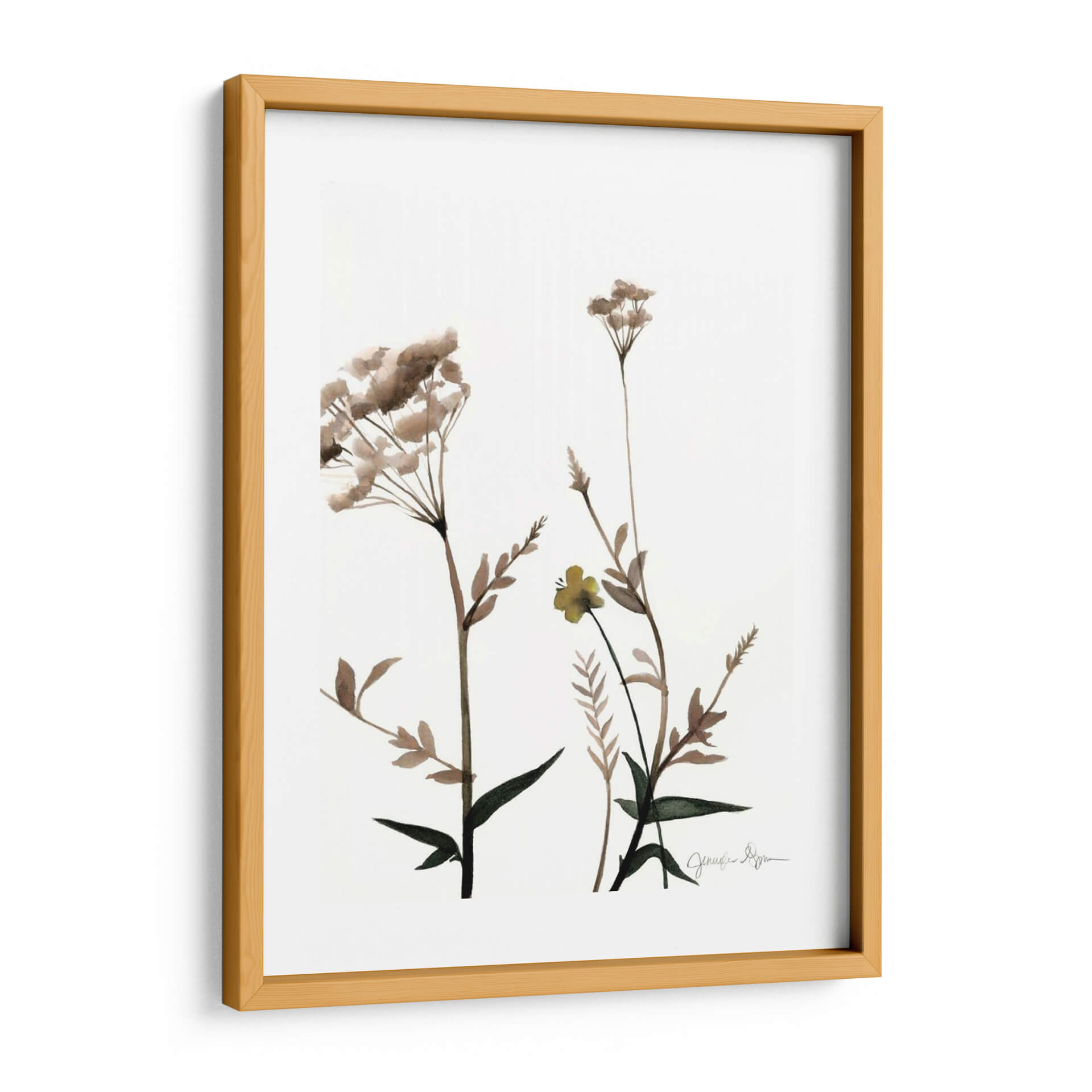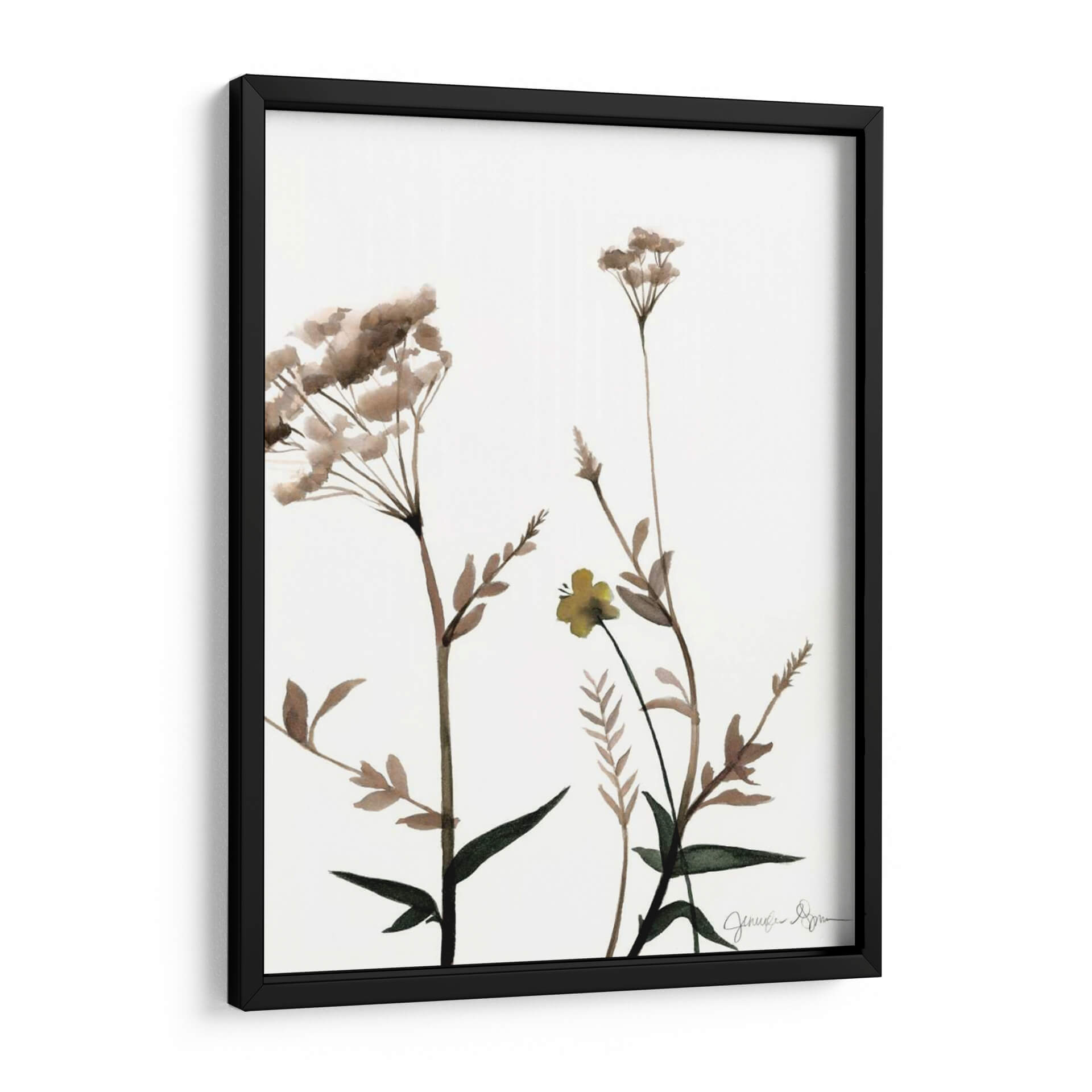 Sumérgete en la delicadeza natural con "Watermark Wildflowers I", una cautivadora obra de arte de Jennifer Goldberger. Este cuadro decorativo captura la esencia efímera de las flores silvestres con una técnica de acuarela sutil y etérea. La paleta de colores, dominada por tonos tierra, sepia y toques sutiles de verde oscuro, evoca una sensación de calma y conexión con la naturaleza. La composición minimalista, centrada en tallos delgados y delicadas flores, crea un equilibrio visual sereno que atrae la mirada sin abrumar. La acuarela difuminada y las texturas orgánicas aportan una profundidad sutil, invitando a la contemplación. Esta pieza es ideal para añadir un toque de elegancia orgánica a cualquier espacio, desde un sereno dormitorio hasta una oficina moderna que busque un acento de tranquilidad. "Watermark Wildflowers I" no es solo una decoración, es una invitación a apreciar la belleza simple y fugaz del mundo natural, aportando serenidad y sofisticación a tu hogar u oficina. Es la elección perfecta para quienes buscan arte botánico con un toque contemporáneo y emocionalmente resonante.