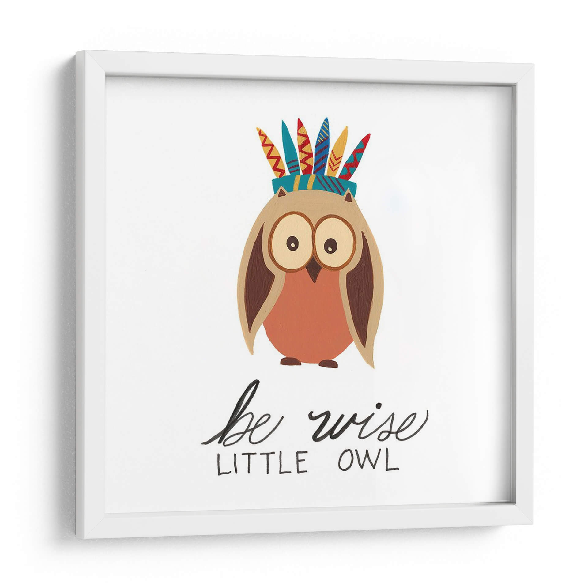 Descubre "Woodland Warriors I", una encantadora obra de arte de Regina Moore que da vida a un tierno búho adornado con una colorida diadema de plumas. Esta pieza, con su paleta de colores cálidos y terrosos, complementada por toques vibrantes de rojo, azul y amarillo en las plumas, irradia una atmósfera de dulzura y sabiduría. El estilo artístico, una mezcla de ilustración infantil y un toque tribal, lo convierte en un cuadro decorativo perfecto para espacios que buscan un aire de inocencia y encanto. La composición simple pero efectiva del búho, con sus grandes ojos expresivos, invita a la conexión emocional. Ideal para decorar habitaciones infantiles, guarderías, o como un acento juguetón en una sala de estar o estudio, este cuadro decorativo "Be Wise Little Owl" aporta una dosis de carácter y positividad. Su diseño versátil se integra fácilmente en diversos estilos de decoración, desde el bohemio hasta el moderno escandinavo, añadiendo un toque único y memorable. Es una pieza que celebra la naturaleza y la sabiduría de una manera lúdica y accesible, capturando la imaginación y añadiendo calidez a cualquier pared.