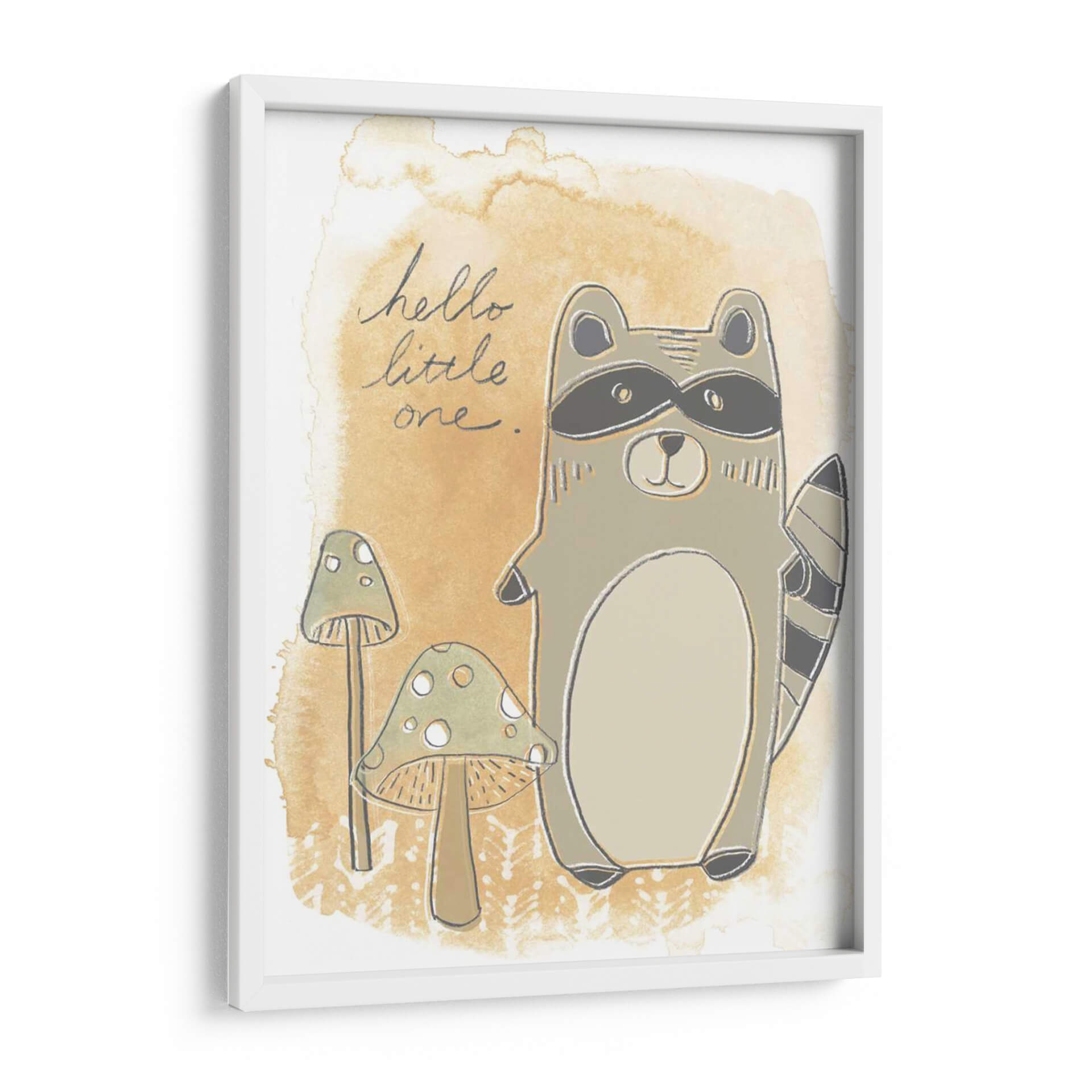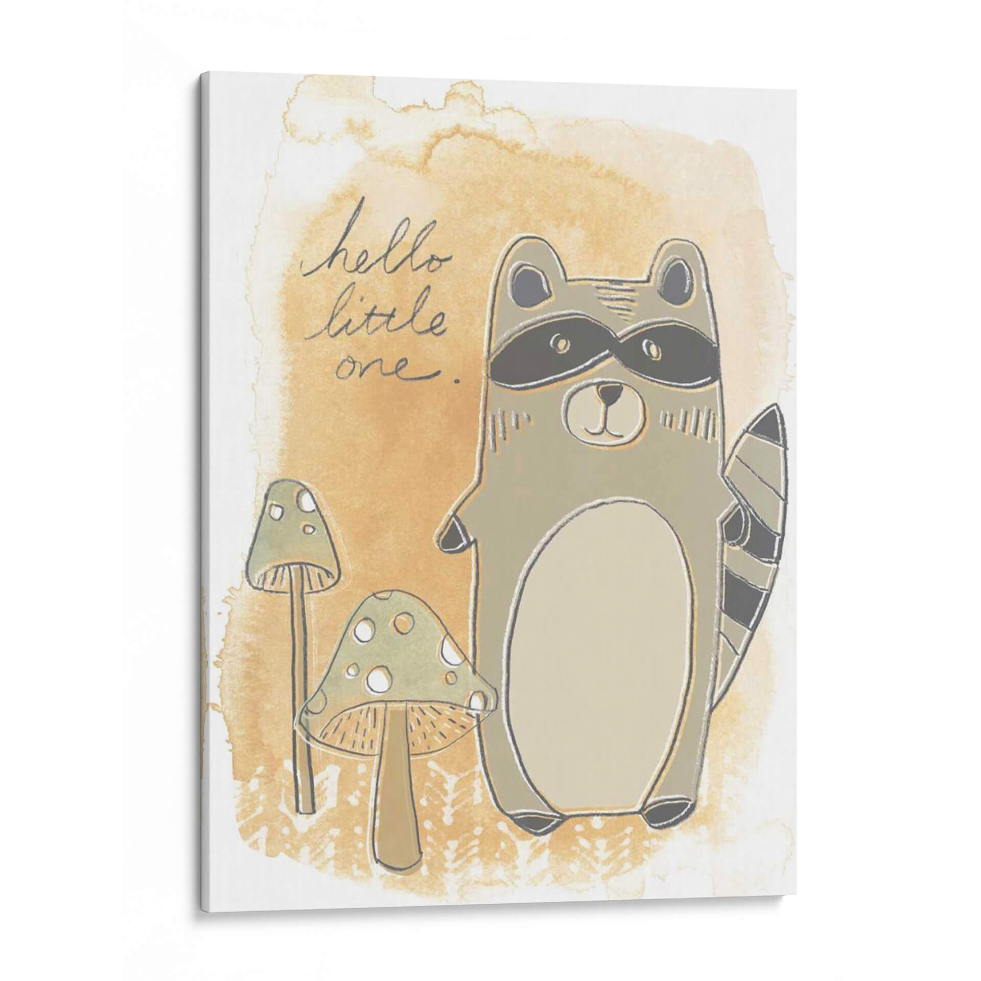 Sumérgete en la ternura y el encanto de 'Woodland Whimsy Iv', una obra de arte que captura la inocencia de la naturaleza con un estilo encantador. Esta pieza presenta a un adorable mapache de trazos sencillos y amigables, flanqueado por dos setas de cuento de hadas con un diseño peculiar. La paleta de colores se centra en tonos tierra suaves y cálidos, con acuarelas sutiles en beige y ocre que crean un fondo orgánico y etéreo. La frase "hello little one" escrita a mano añade un toque personal y acogedor, perfecta para celebrar la llegada de un nuevo miembro a la familia o para infundir dulzura en cualquier espacio. El estilo ilustrativo y caricaturesco, con líneas definidas y un toque lúdico, la convierte en una adición ideal para habitaciones infantiles, guarderías o cualquier rincón del hogar que necesite un toque de alegría y fantasía. Este cuadro decorativo es una invitación a la imaginación, evocando la serenidad de un bosque mágico y la calidez de un abrazo. Su simplicidad y dulzura la hacen versátil para complementar una decoración moderna, escandinava o bohemia, aportando una dosis de optimismo y encanto natural a tu ambiente.