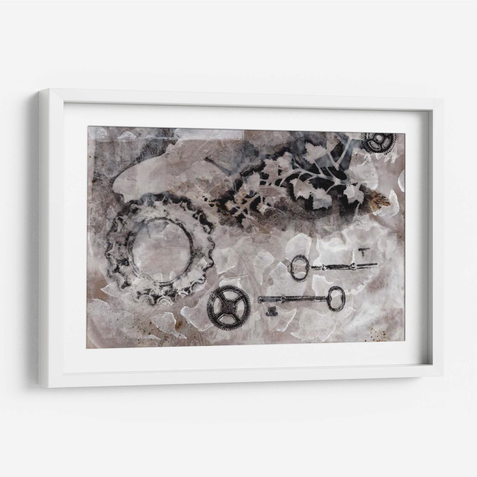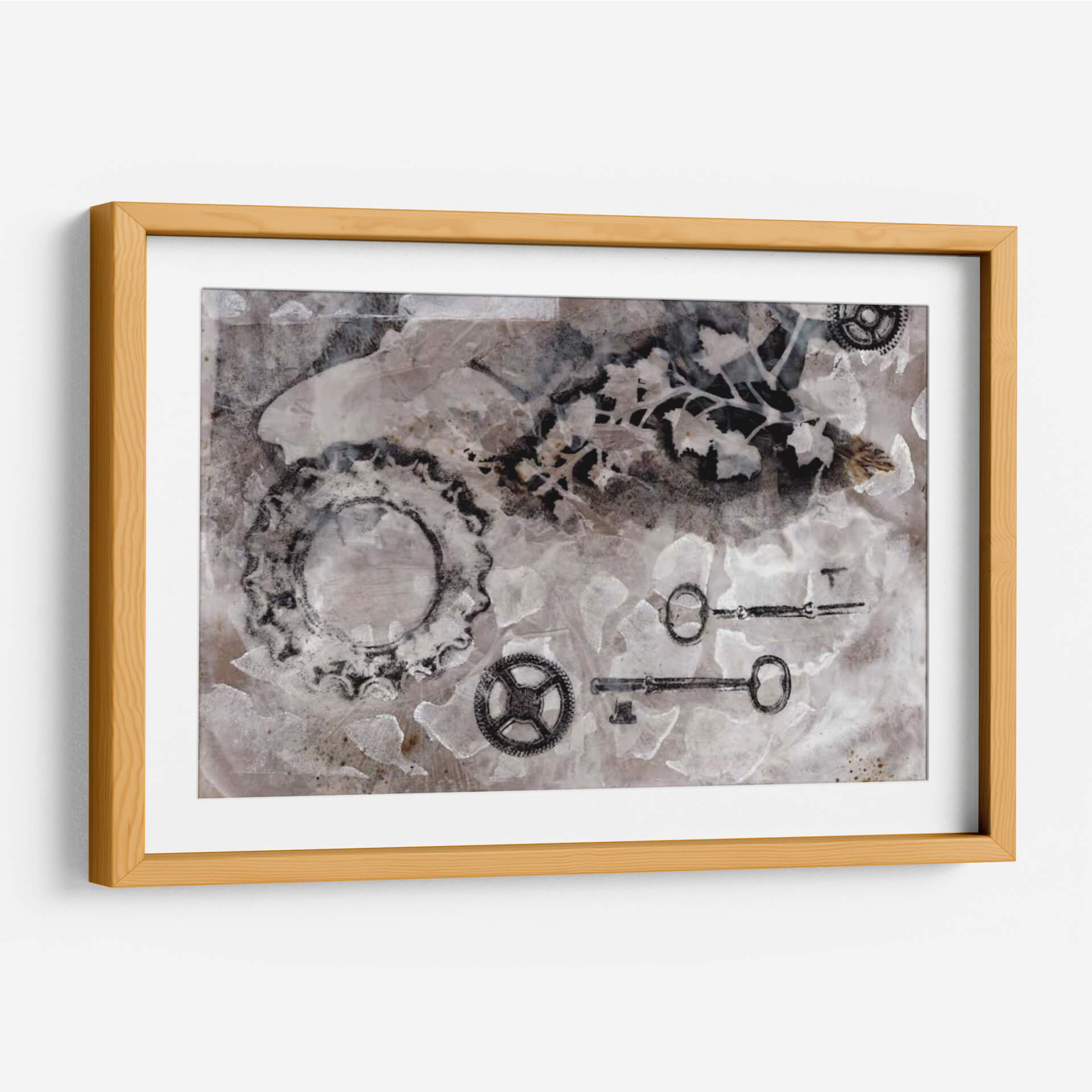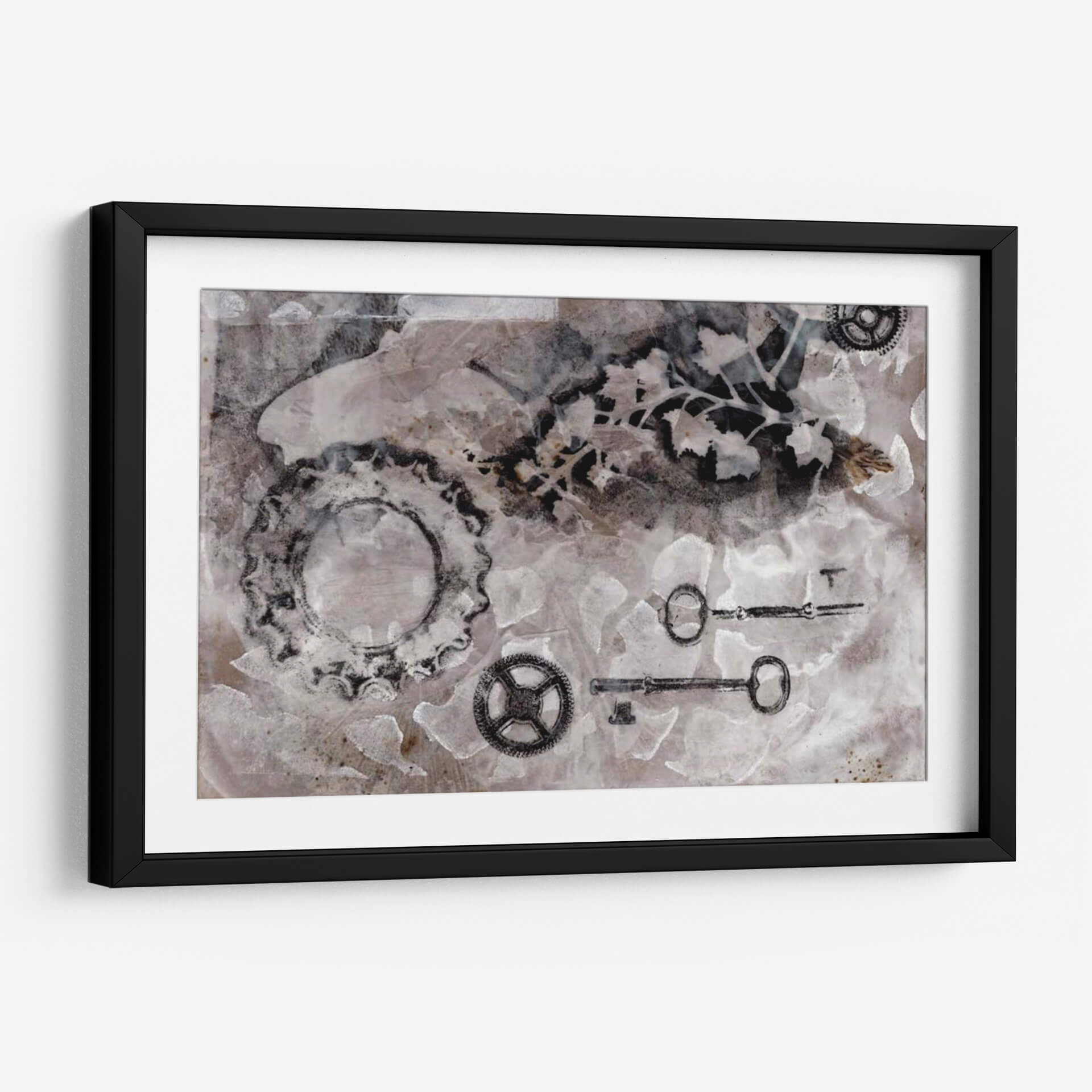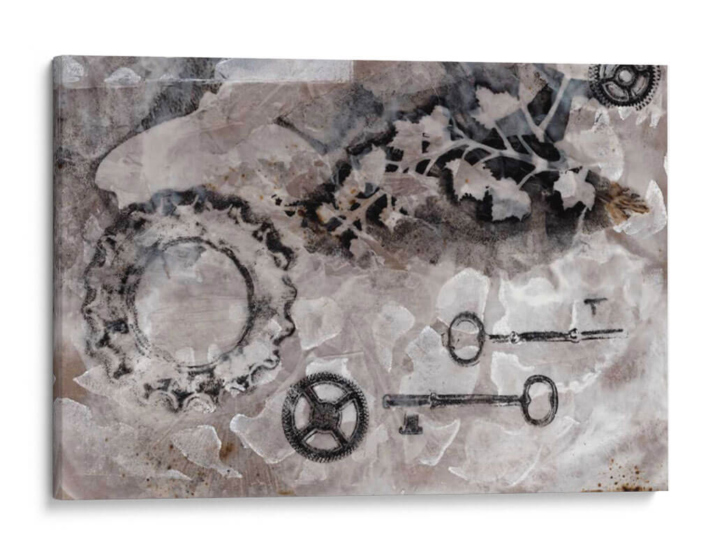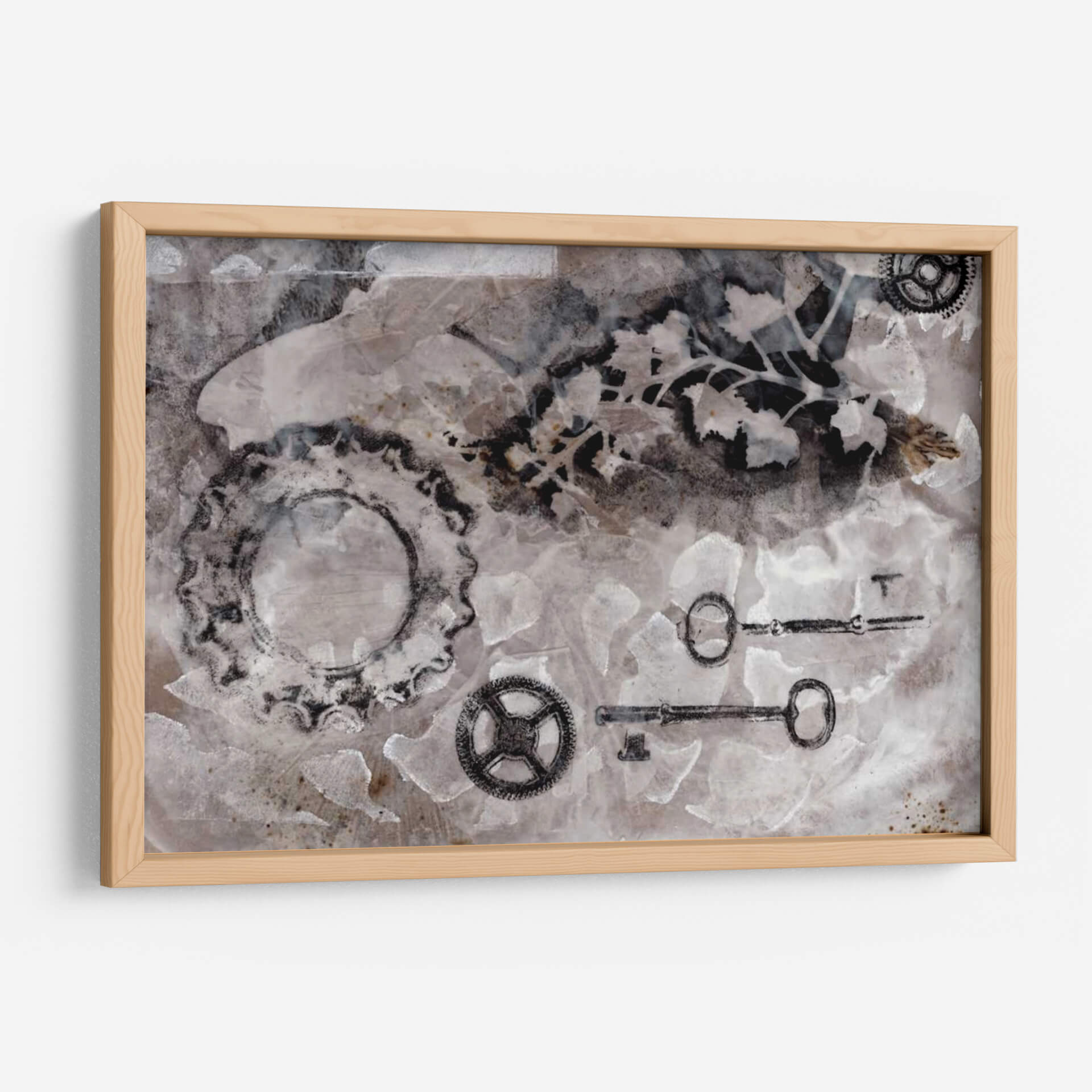 Sumérgete en el misterio y la intriga con "Yuxtaposición II", una cautivadora obra de arte de Jennifer Goldberger que evoca una sensación de tiempo y memoria. Esta pieza abstracta presenta una delicada fusión de engranajes mecánicos y llaves antiguas, superpuestas sobre un fondo texturizado en tonos grises, blancos y negros. La composición juega con la yuxtaposición de elementos industriales y orgánicos, creando una atmósfera evocadora y reflexiva. Los sutiles toques de color tierra y el contraste entre las formas nítidas y las texturas suaves invitan a la contemplación. Ideal para añadir un toque de sofisticación y un aire de descubrimiento a cualquier sala de estar, estudio u oficina, este cuadro decorativo es perfecto para quienes aprecian el arte que cuenta una historia sin palabras. "Yuxtaposición II" es una invitación a explorar las conexiones ocultas y la belleza en los detalles, convirtiéndose en un punto focal único en tu decoración.