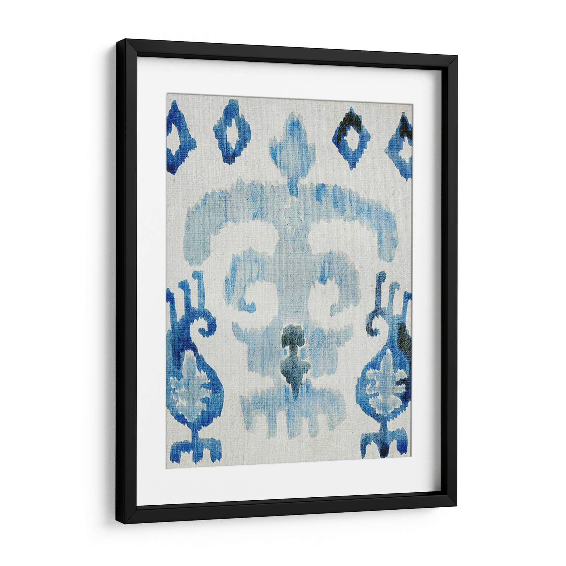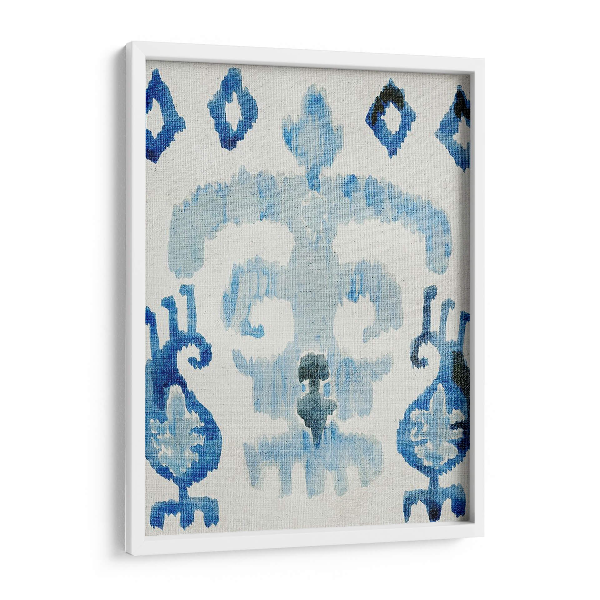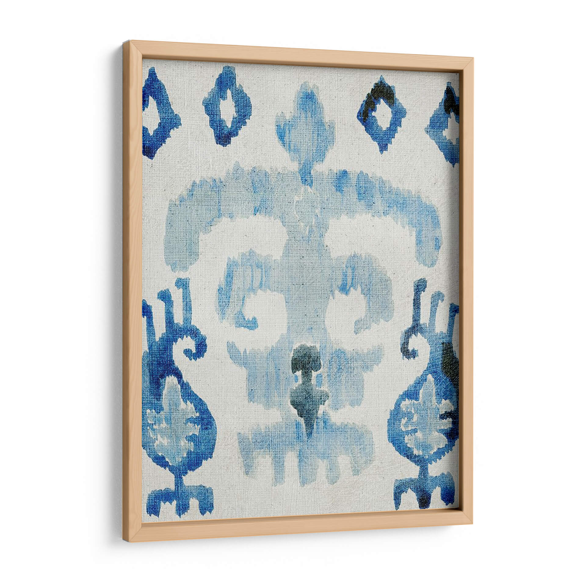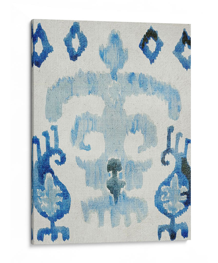 Sumérgete en la serenidad y el encanto de "Zafiro Ikat III", una obra de arte abstracto que captura la esencia de los patrones tradicionales con un toque contemporáneo. Esta pieza presenta una cautivadora paleta de azules profundos y claros, aplicados con una técnica que evoca la delicadeza de la acuarela o la impresión textil, creando un efecto etéreo y sofisticado. Las formas orgánicas y fluidas se entrelazan sobre un fondo neutro, invitando a la contemplación y aportando una sensación de calma y equilibrio a cualquier espacio. Su diseño intrincado pero a la vez aireado la convierte en el complemento perfecto para salones modernos, dormitorios acogedores u oficinas que buscan un toque de inspiración artística y tranquilidad. "Zafiro Ikat III" no es solo una decoración de pared, es una ventana a la serenidad, una pieza que dialoga con tu estilo y transforma tu hogar en un refugio de paz y buen gusto. Añade un toque de elegancia atemporal a tu decoración con este cuadro decorativo único, diseñado para inspirar y relajar.