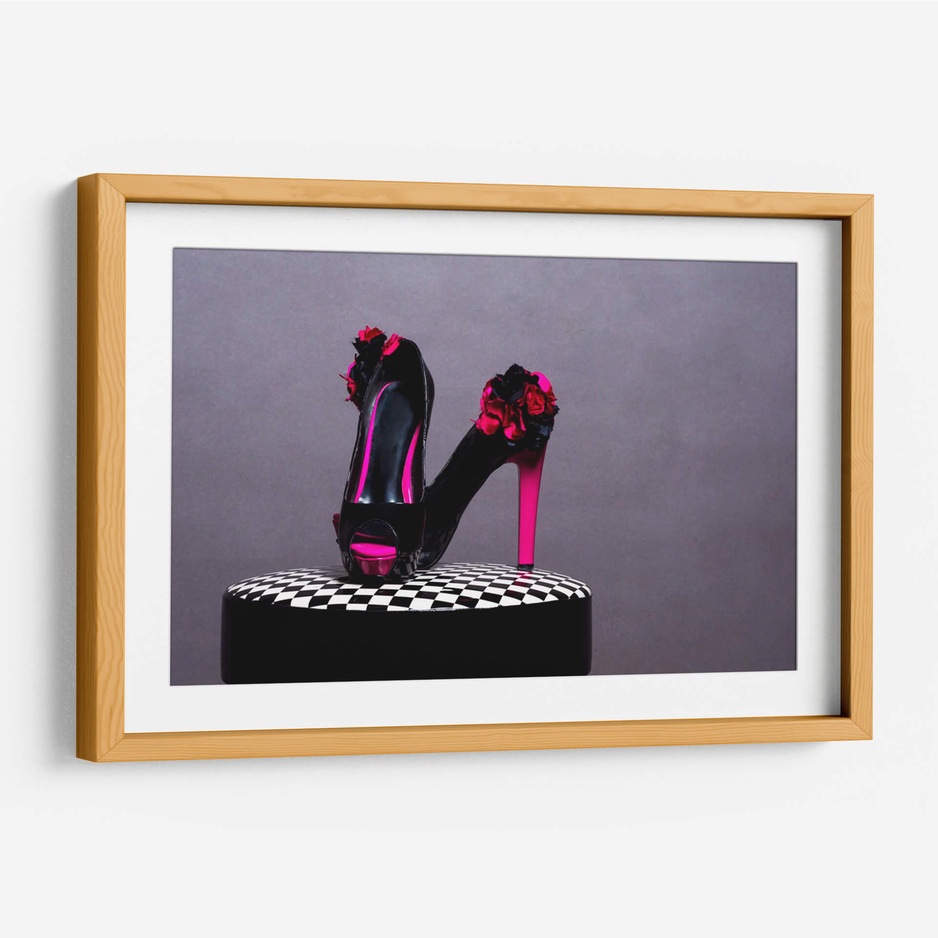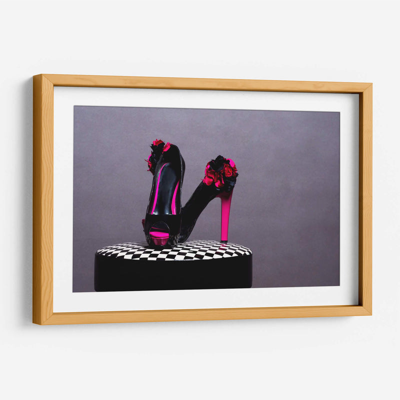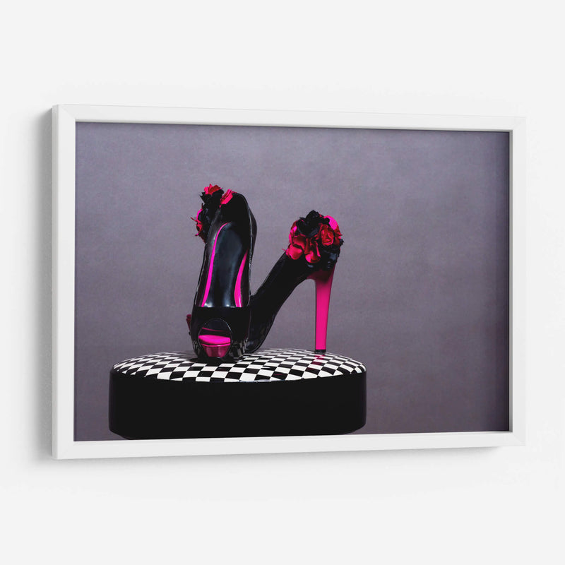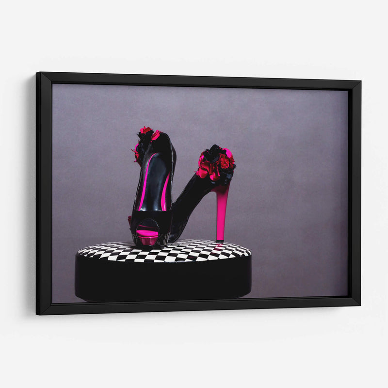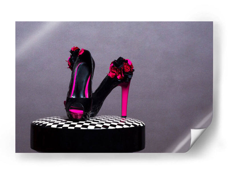 Sumérgete en el vibrante mundo de la moda y el diseño con esta cautivadora obra de arte titulada 'Zapatillas', del artista Alvaro Martinz. Este cuadro decorativo captura la esencia de un zapato de tacón alto, negro y audaz, con vibrantes detalles en fucsia que resaltan su silueta y audacia. El zapato se posa elegantemente sobre un pedestal con un patrón de tablero de ajedrez en blanco y negro, creando un contraste visual impactante y un toque de sofisticación pop. Las delicadas flores rojas y negras adornan la parte superior, añadiendo una dimensión de textura y romanticismo a la pieza. La composición, centrada y con un fondo liso en tono gris, permite que el zapato sea el protagonista indiscutible, invitando a la reflexión sobre la belleza en los objetos cotidianos y la audacia de la expresión personal. Esta obra es perfecta para quienes buscan añadir un acento de color y personalidad a sus espacios, ya sea una sala de estar moderna, un vestidor chic o un estudio de moda. Transforma cualquier habitación con este cuadro decorativo que irradia confianza, estilo y un toque de rebeldía artística, convirtiéndose en un punto focal que inspira y fascina. Ideal para amantes del diseño, la moda y el arte contemporáneo que aprecian la estética audaz y el contraste de colores.