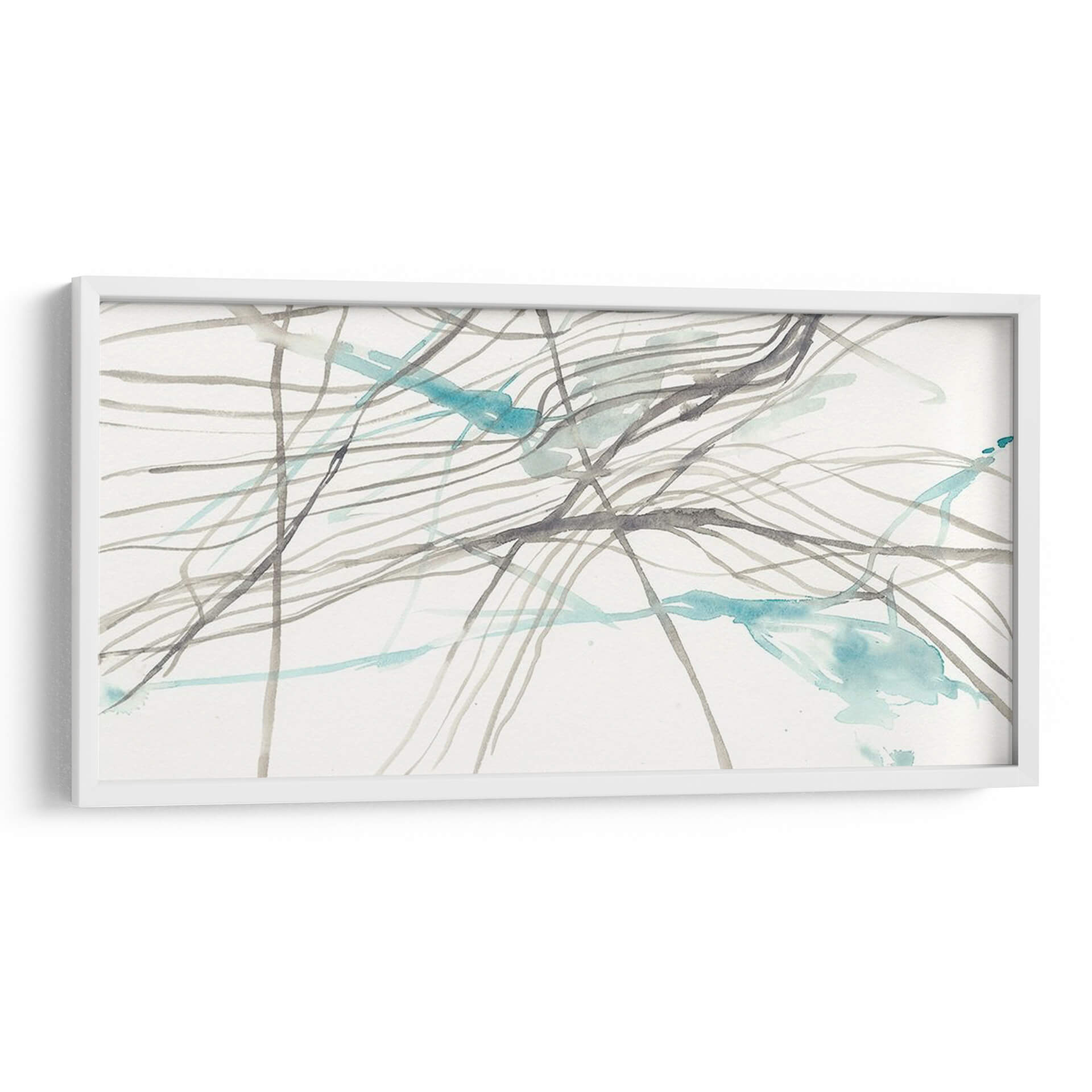 Sumérgete en la delicada danza de "Zarrillos I", una obra de arte abstracta de Jennifer Goldberger que evoca la serenidad de la naturaleza y la fluidez del movimiento. Las líneas finas y entrelazadas en tonos grises y marrones se cruzan y fluyen sobre un fondo blanco, creando una sensación de profundidad y dinamismo. Pinceladas salpicadas de un vibrante azul turquesa añaden toques de color y vitalidad, como gotas de agua o pétalos flotantes, que capturan la atención y añaden un elemento sorpresa. Esta pieza abstracta moderna, con su composición sutil y su paleta de colores armoniosa, es perfecta para añadir un toque de calma y sofisticación a cualquier espacio. Imagina este cuadro decorativo en tu sala de estar, aportando una atmósfera de tranquilidad y elegancia contemporánea, o en tu oficina, inspirando creatividad y concentración. "Zarrillos I" es más que una decoración de pared; es una invitación a la contemplación, una expresión de la belleza efímera y una pieza que seguramente se convertirá en el centro de atención, resonando con aquellos que aprecian el arte abstracto sutil y evocador.